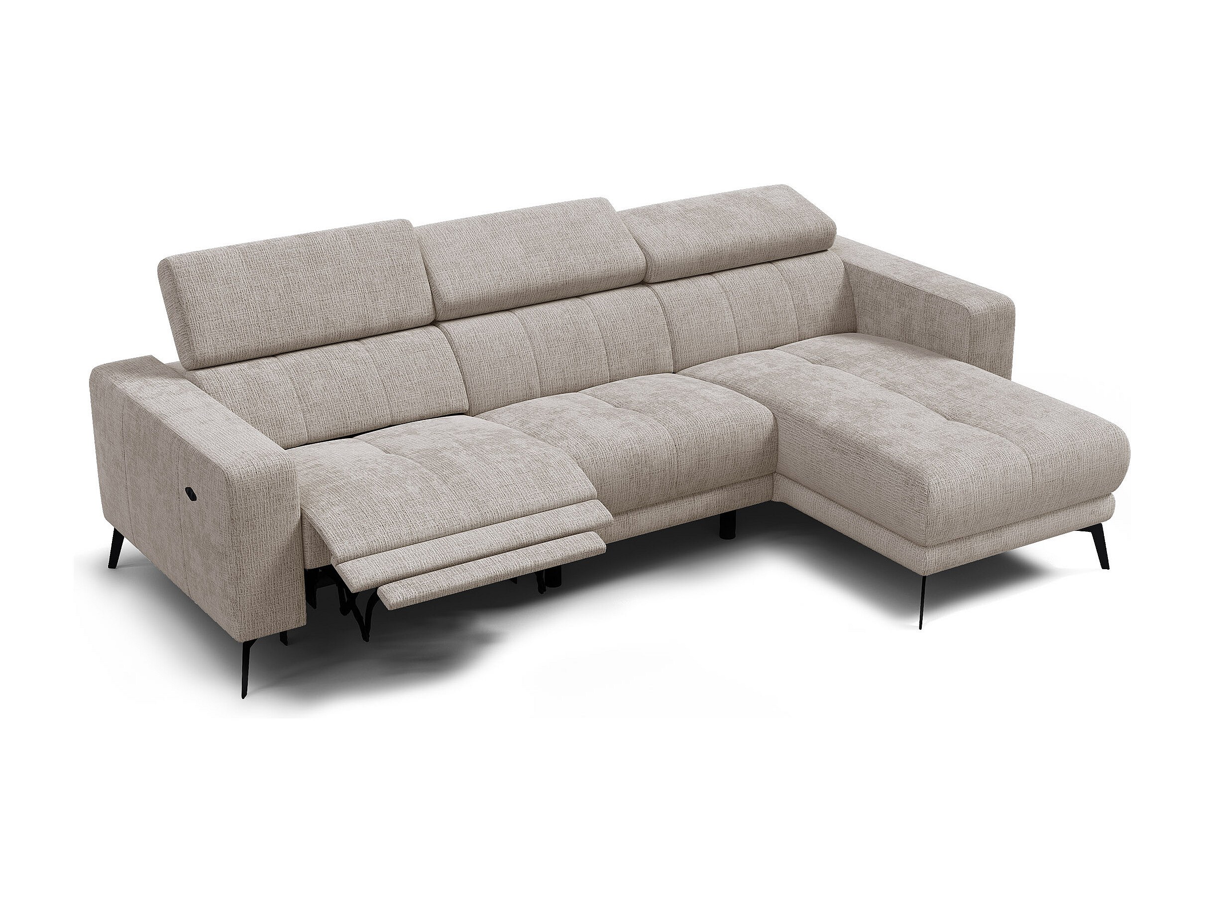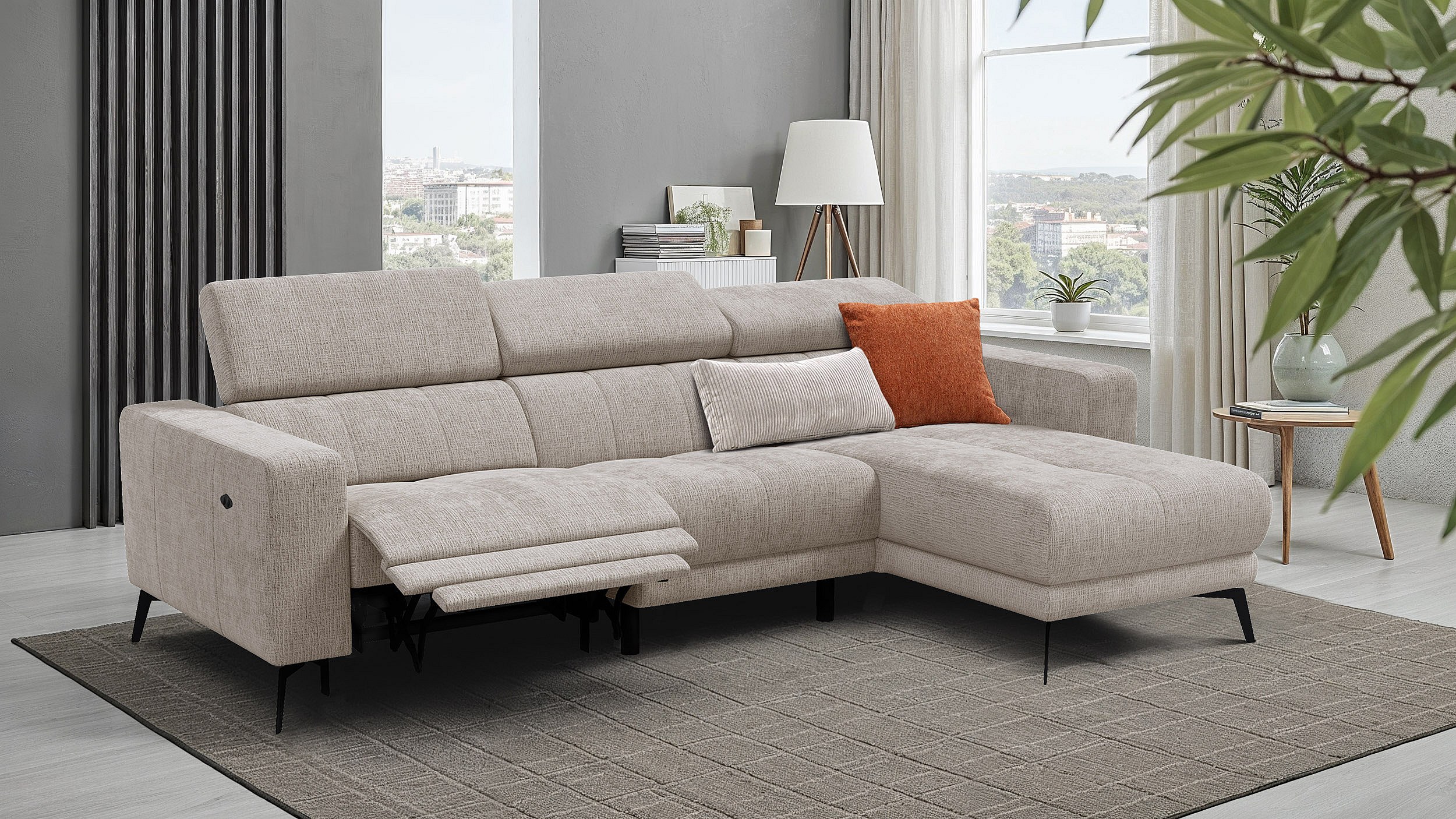 Canapé d'angle 4 places MORELLO avec 1 x Relax Zero Gravity, tissu beige