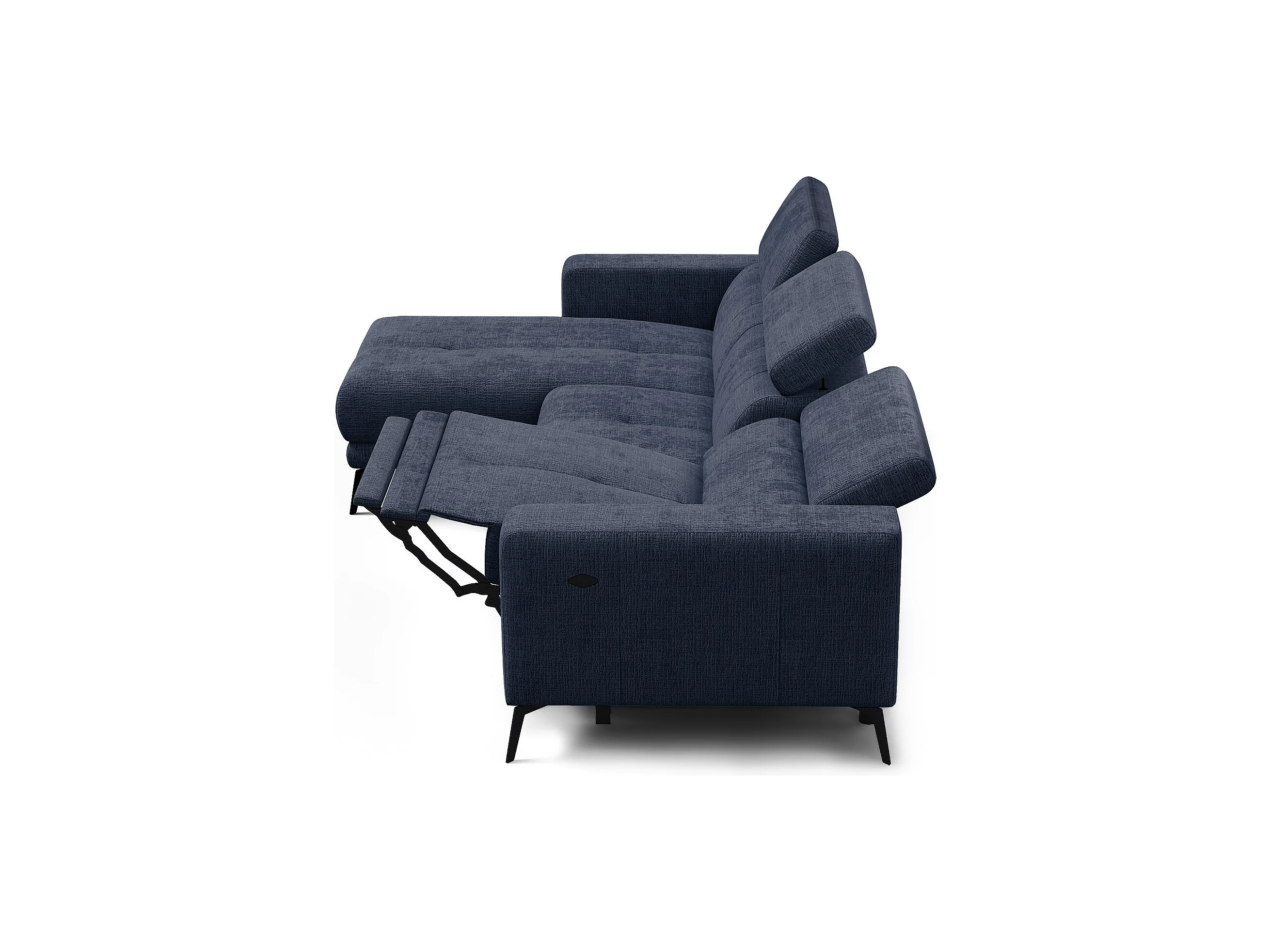 Canapé d'angle 4 places MORELLO avec 1 x Relax Zero Gravity, tissu bleu marine