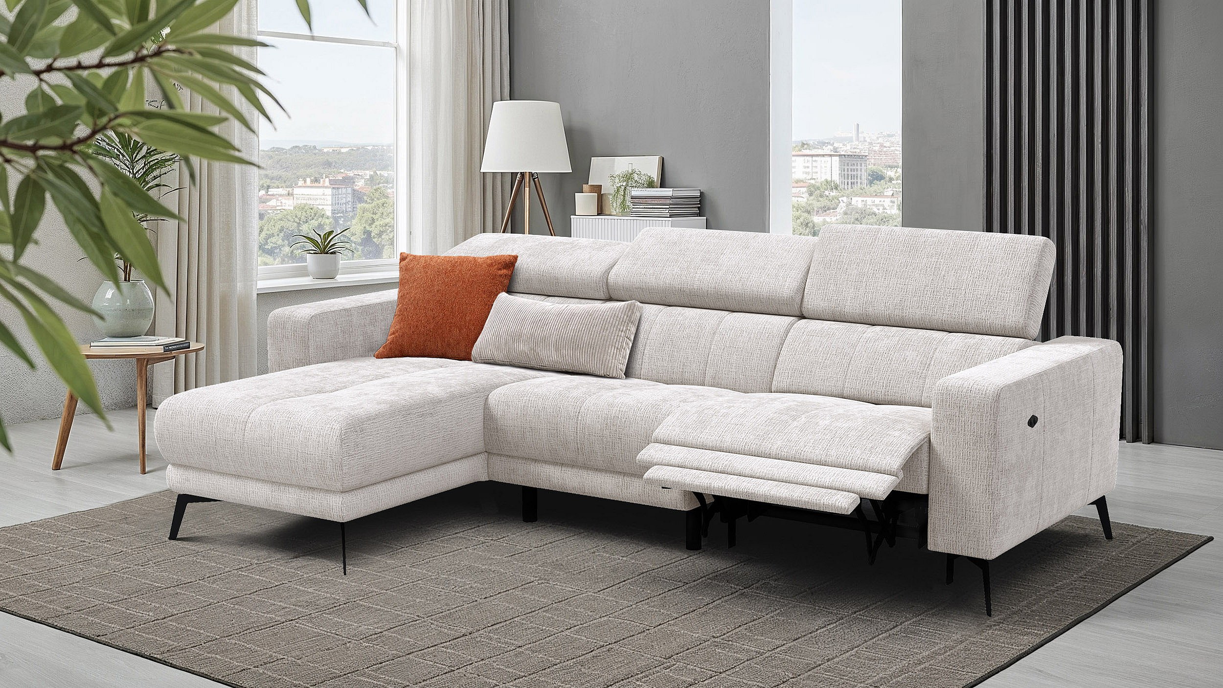 Canapé d'angle 4 places MORELLO avec 1 x Relax Zero Gravity, tissu crème