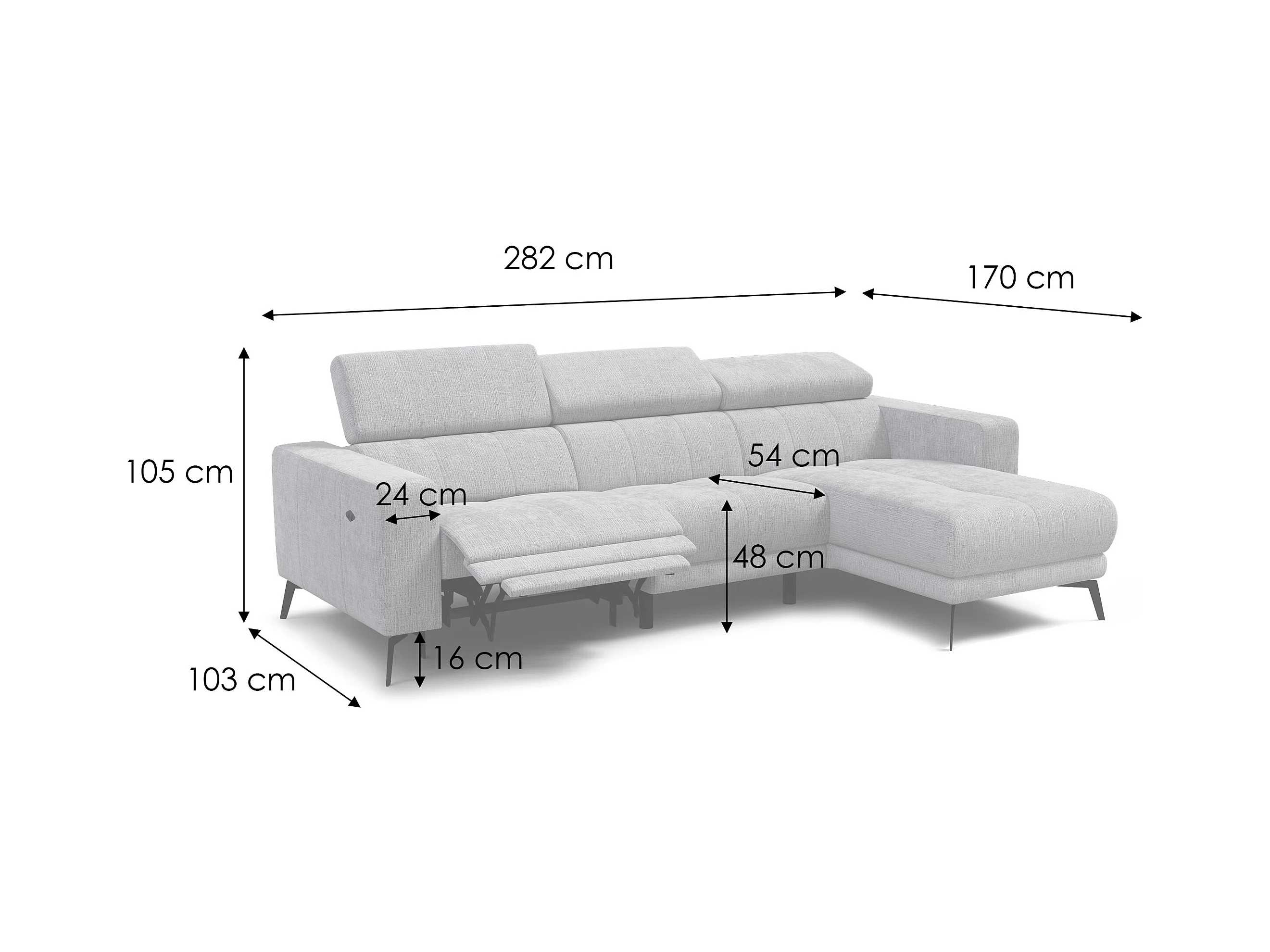 Canapé d'angle 4 places MORELLO avec 1 x Relax Zero Gravity, tissu gris foncé