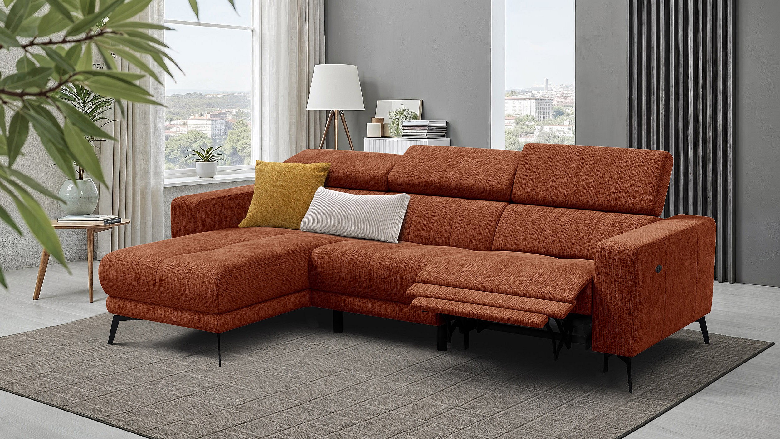 Canapé d'angle 4 places MORELLO avec 1 x Relax Zero Gravity, tissu orange foncé