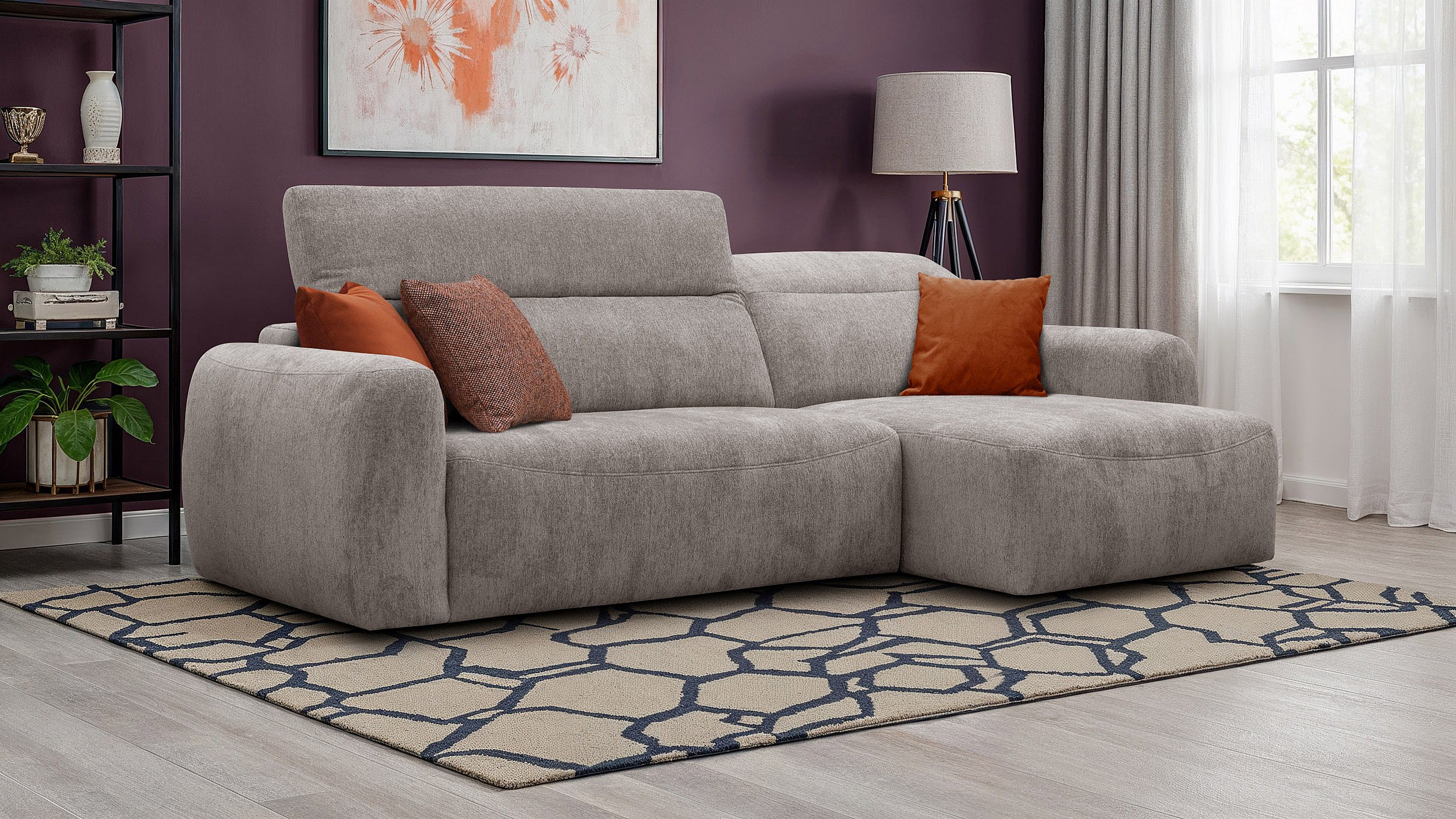 Canapé d'angle 4 places NERO, tissu beige