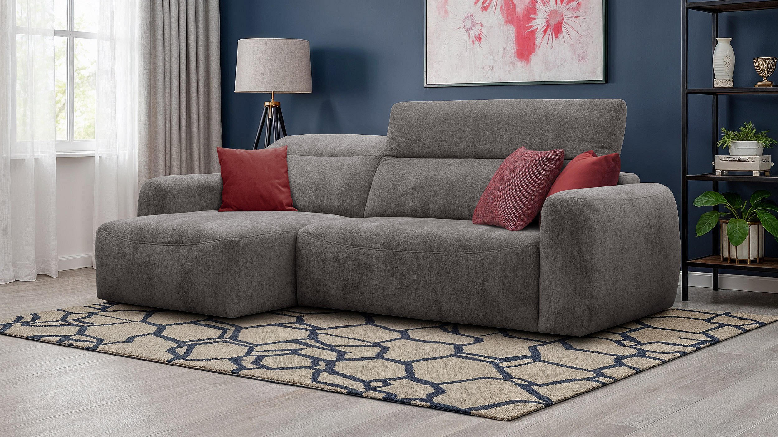 Canapé d'angle 4 places NERO, tissu gris foncé
