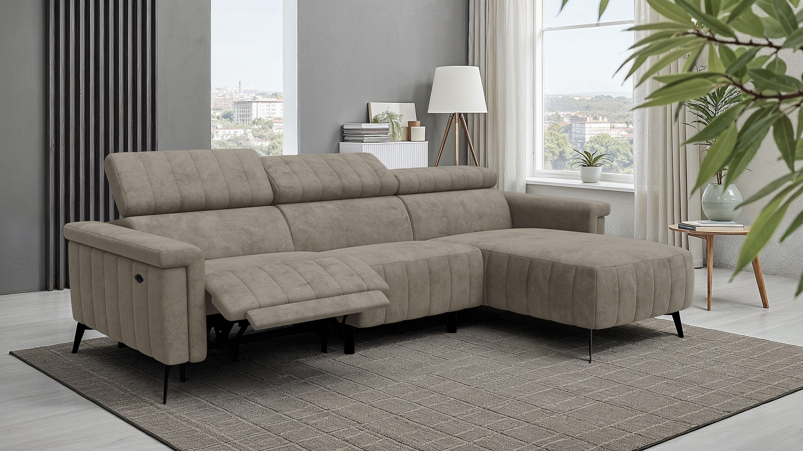 Canapé d'angle 4 places NORDEL, tissu beige foncé