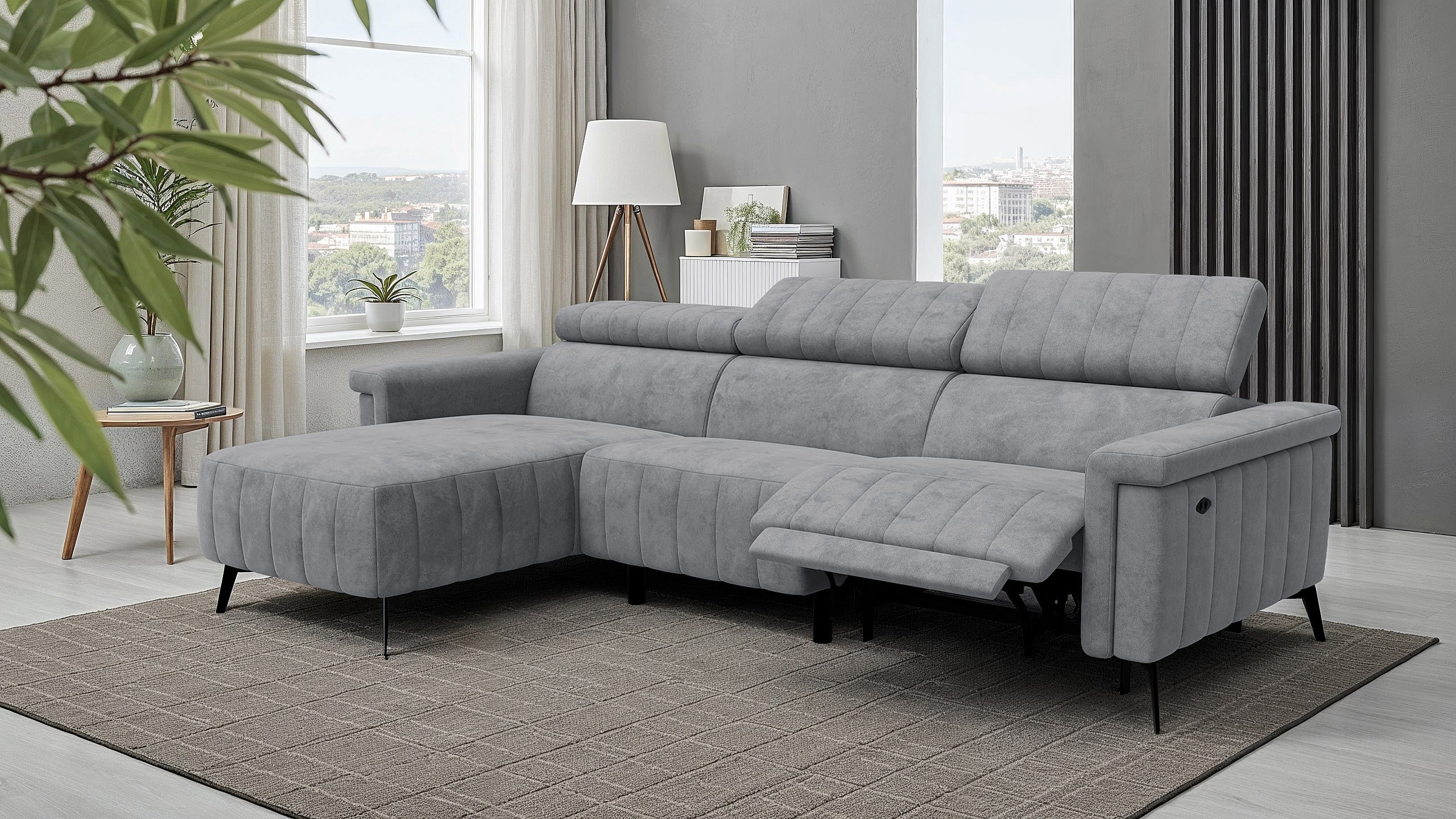 Canapé d'angle 4 places NORDEL, tissu gris