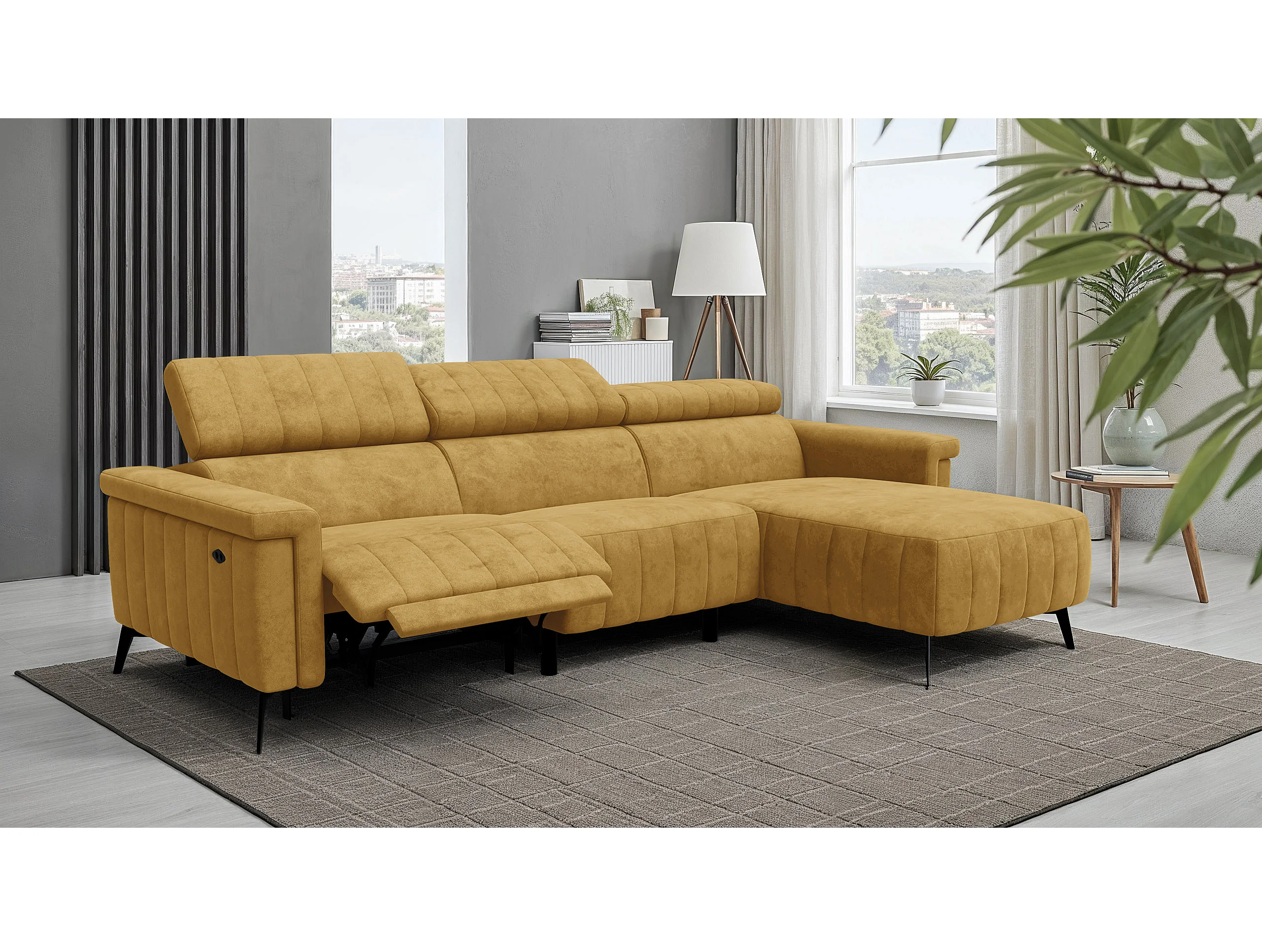 Canapé d'angle 4 places NORDEL, tissu moutarde