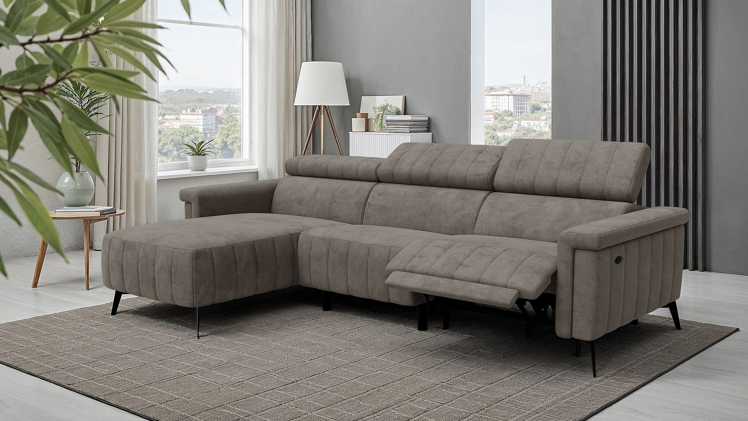 Canapé d'angle 4 places NORDEL, tissu taupe