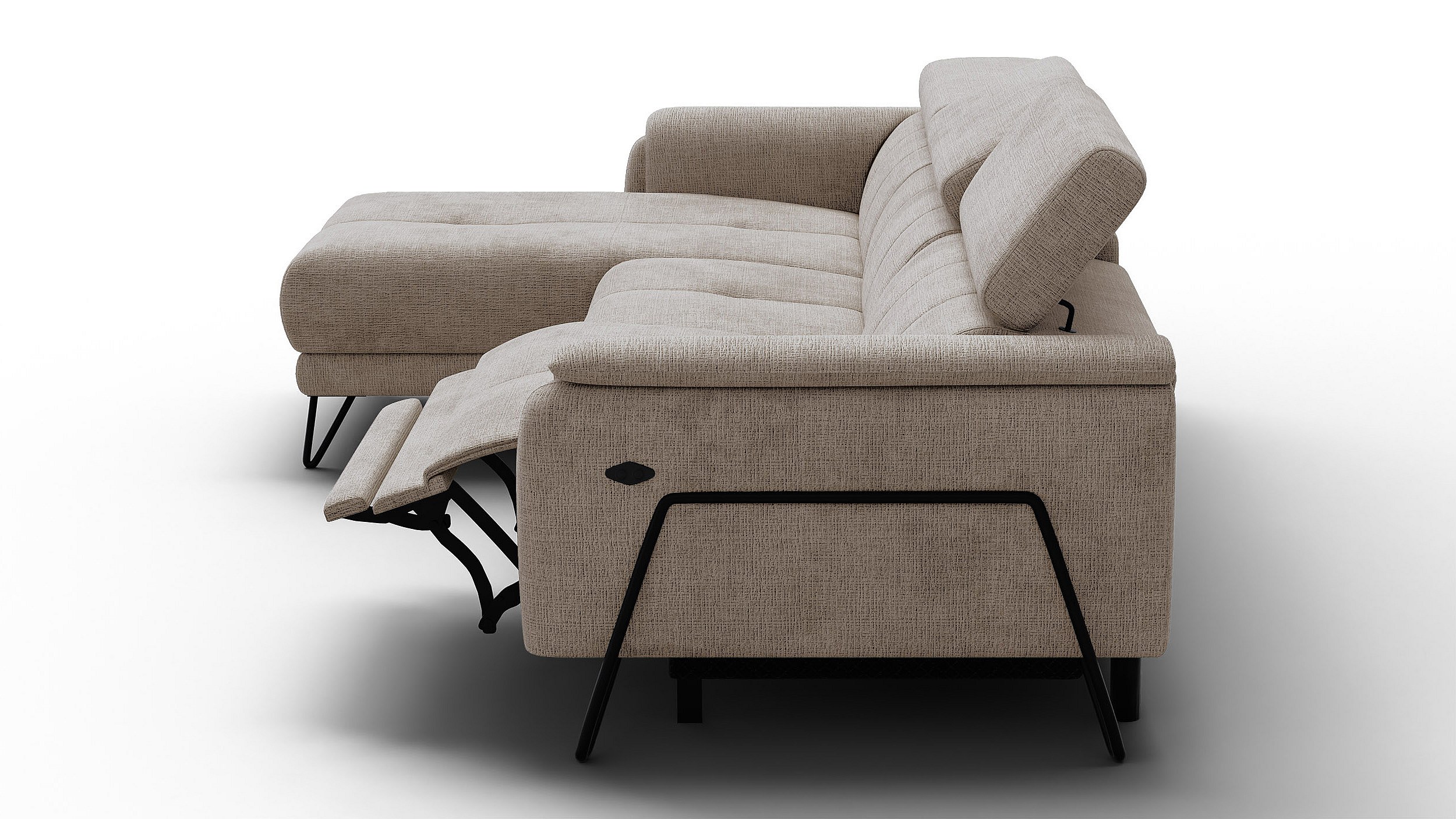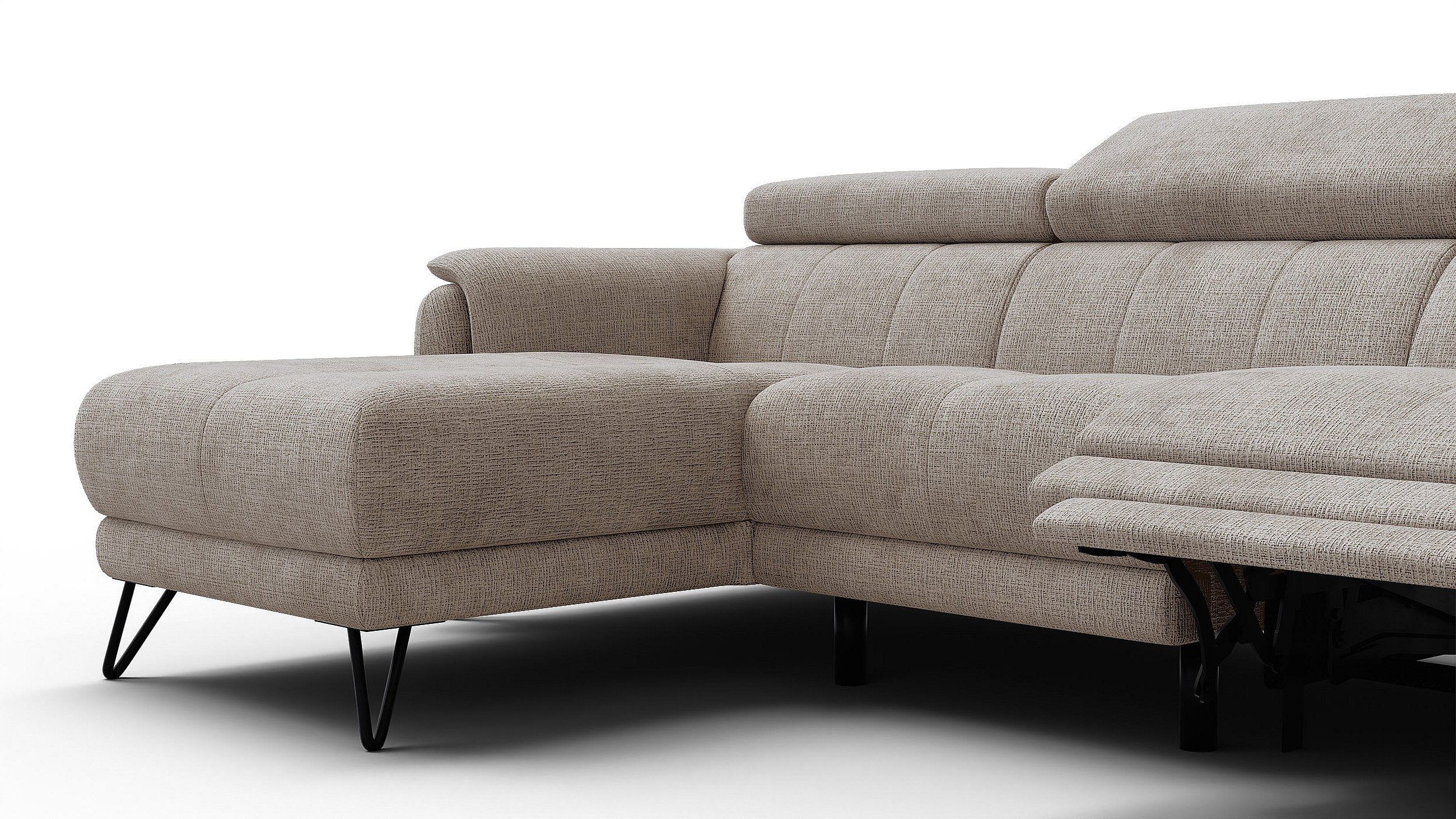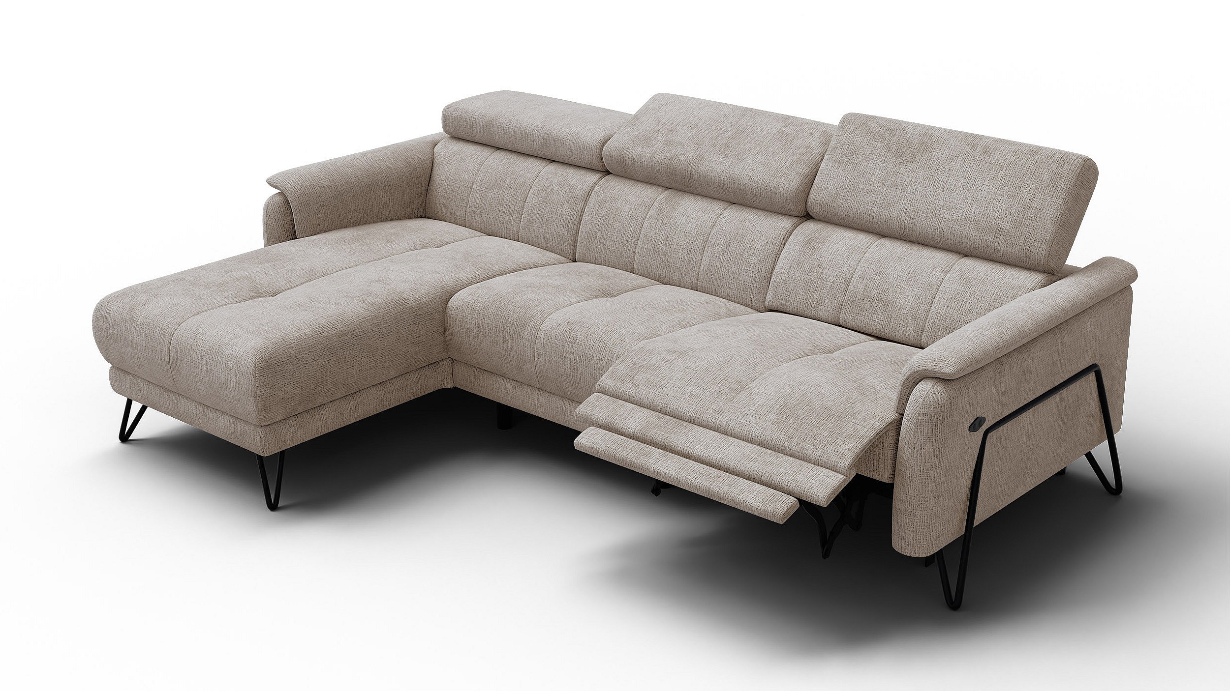 Canapé d'angle 4 places RODEN avec Relax, tissu beige