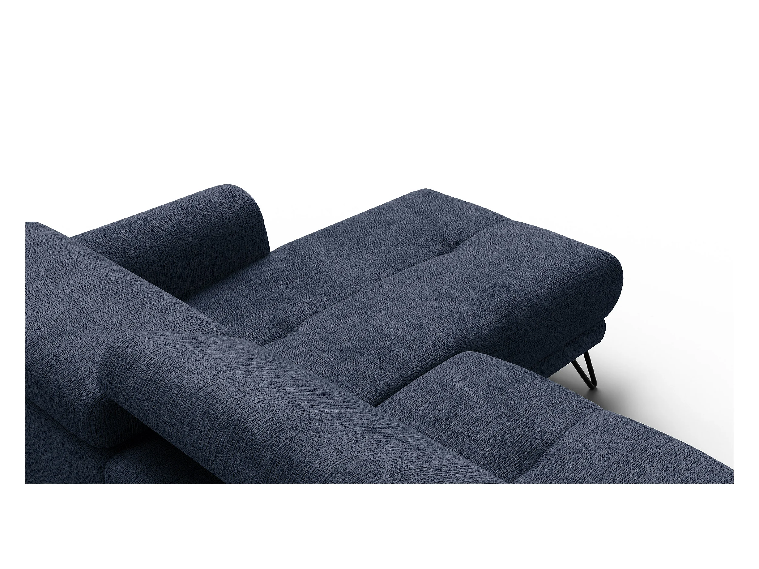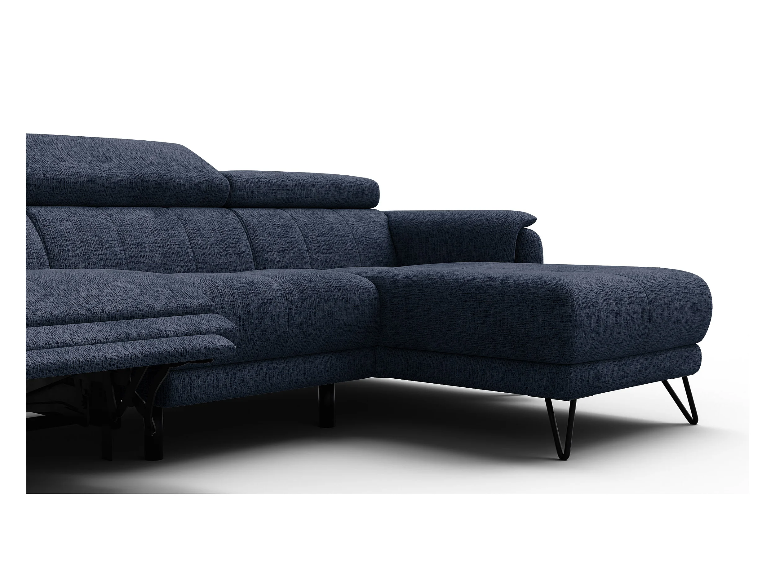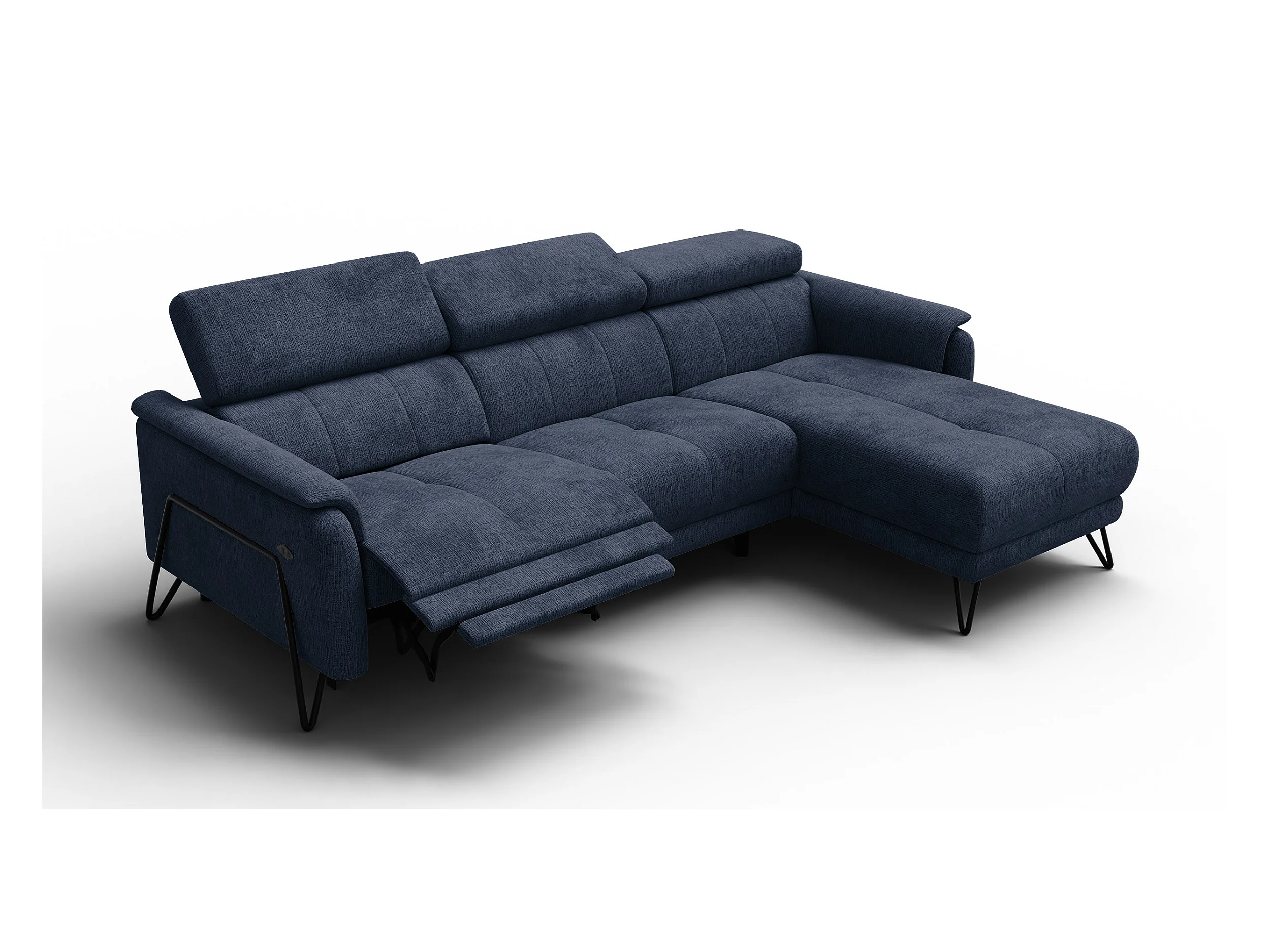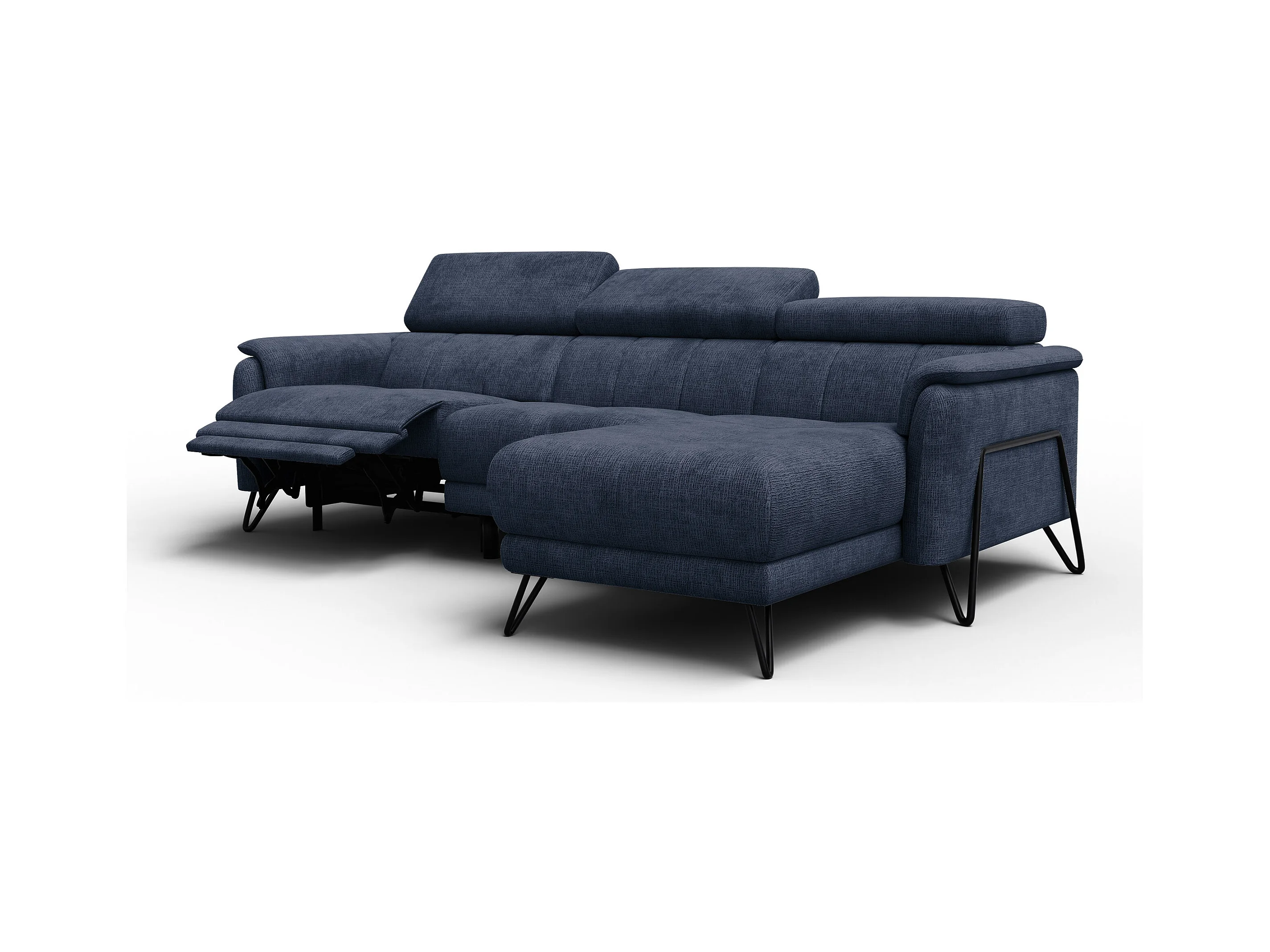 Canapé d'angle 4 places RODEN avec Relax, tissu bleu marine