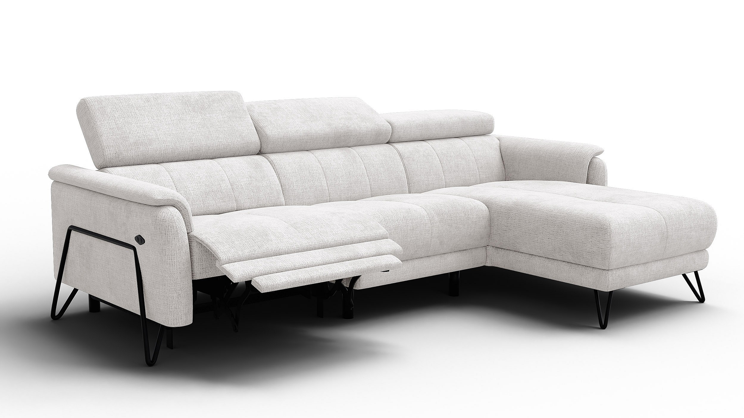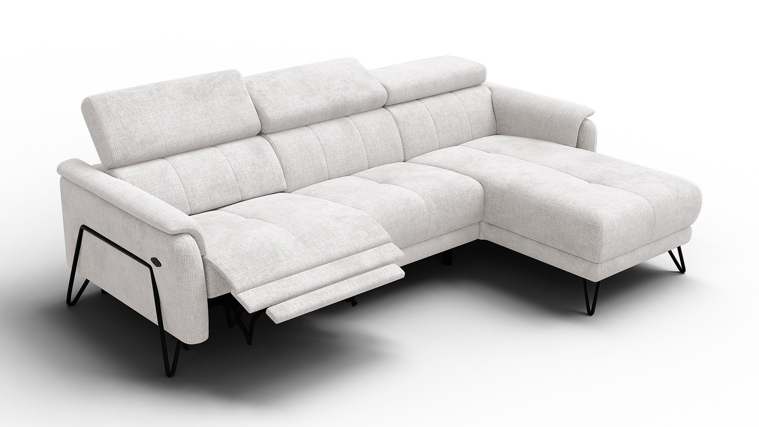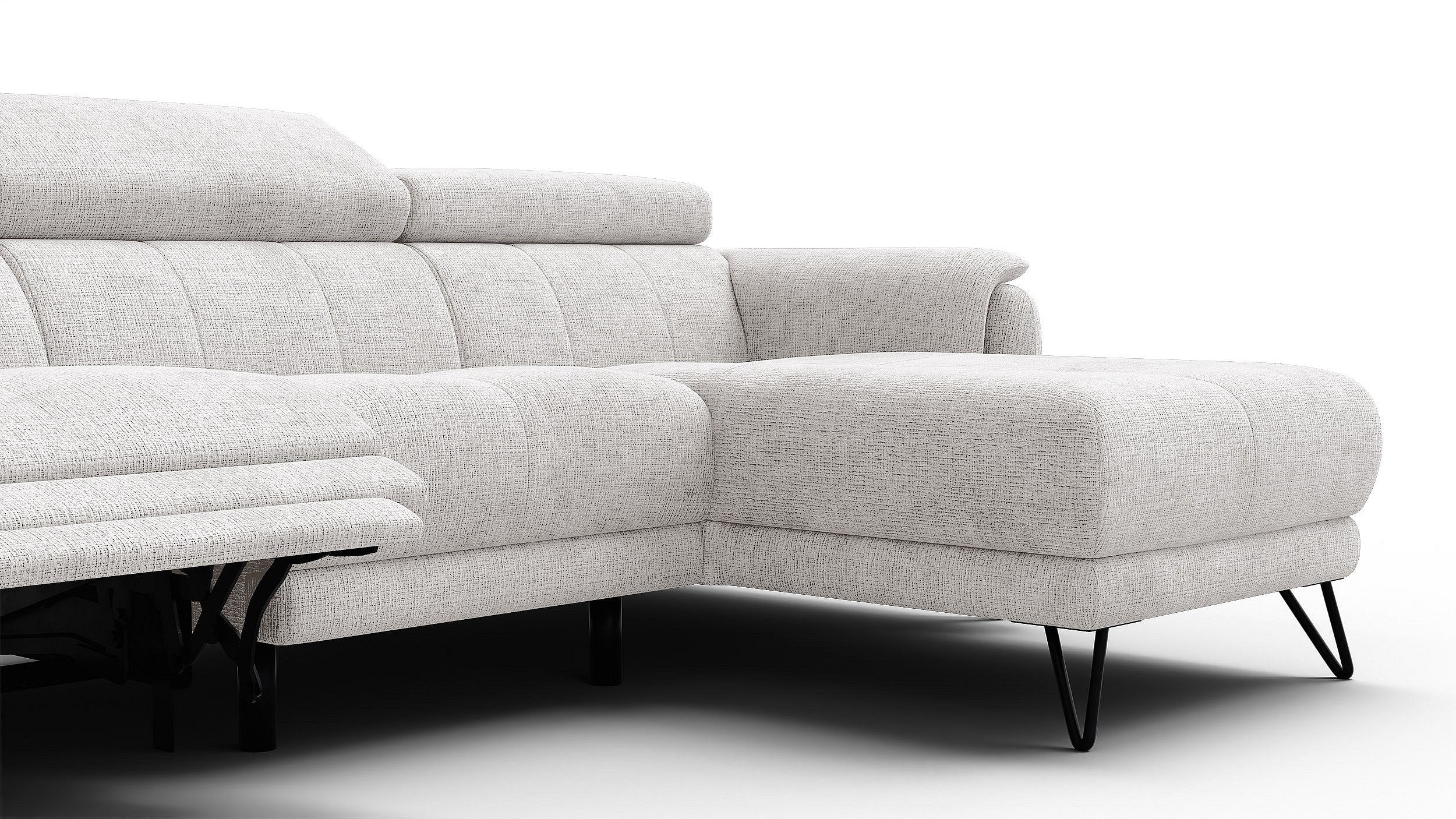 Canapé d'angle 4 places RODEN avec Relax, tissu crème