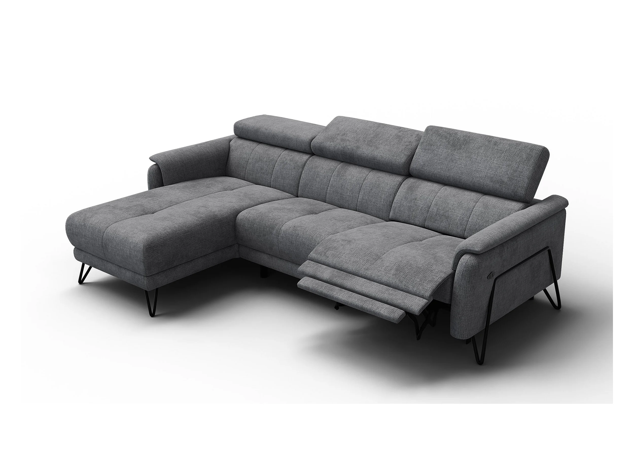 Canapé d'angle 4 places RODEN avec Relax, tissu gris foncé