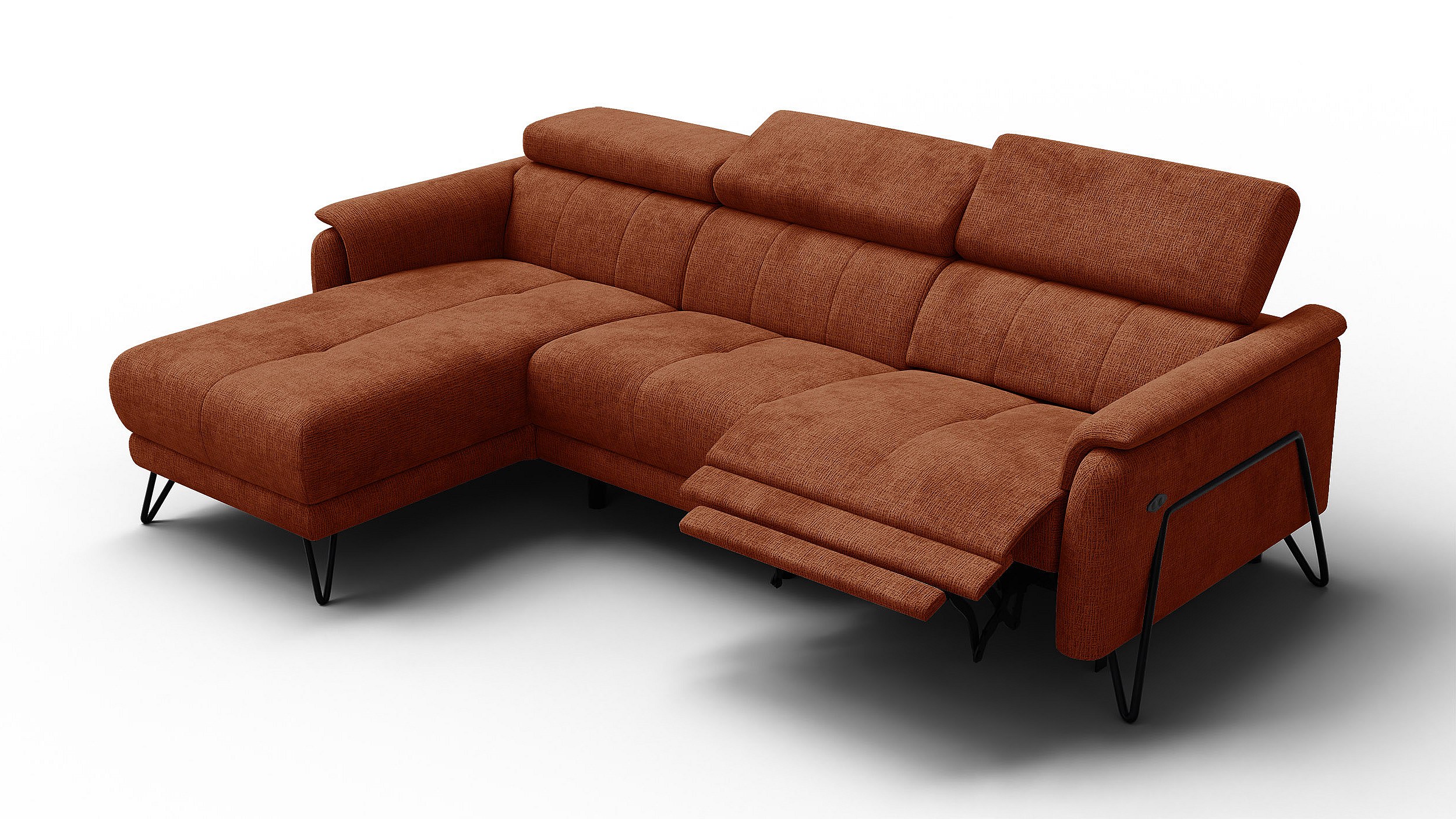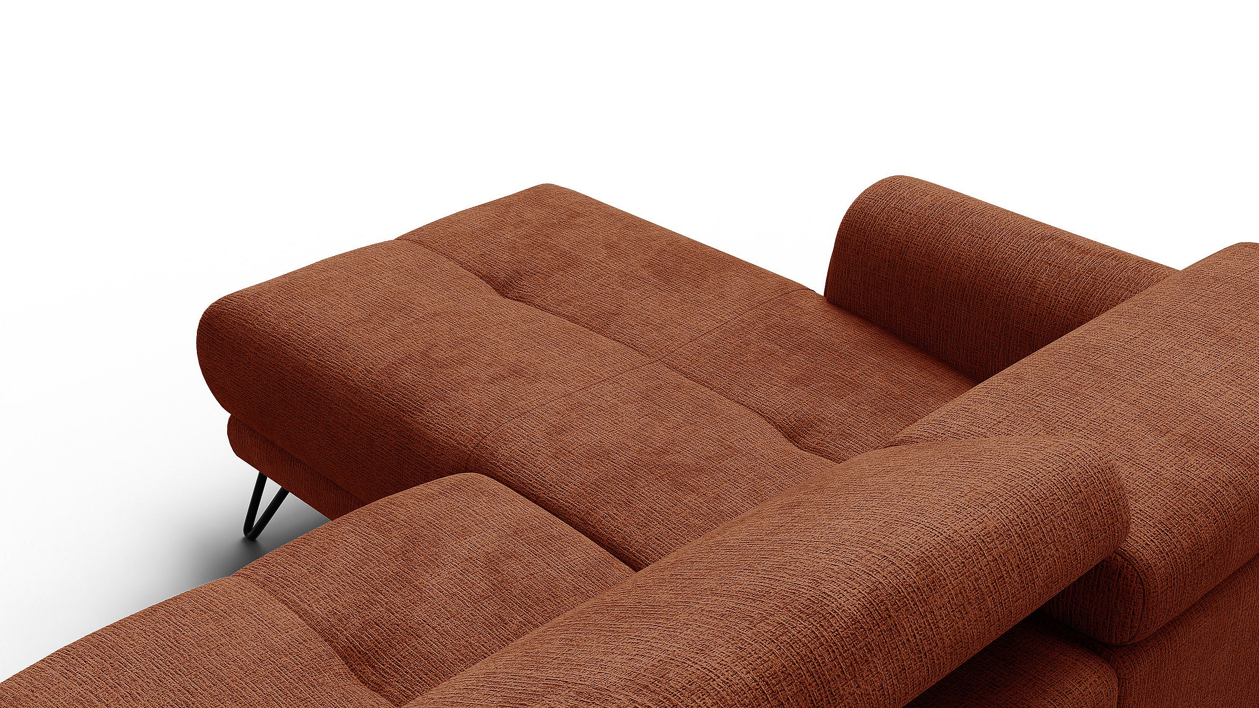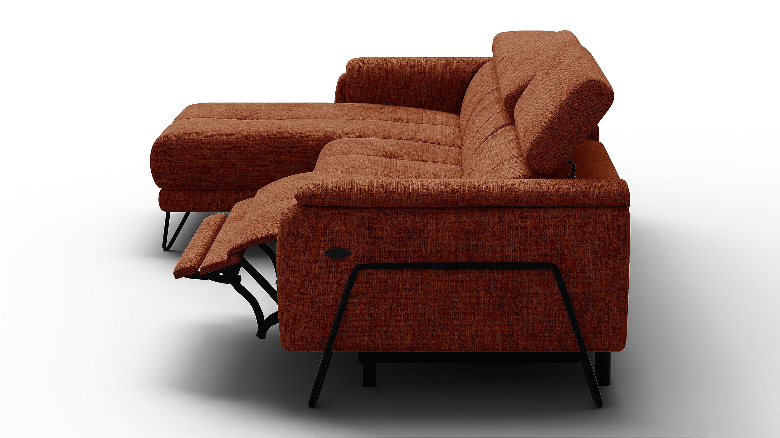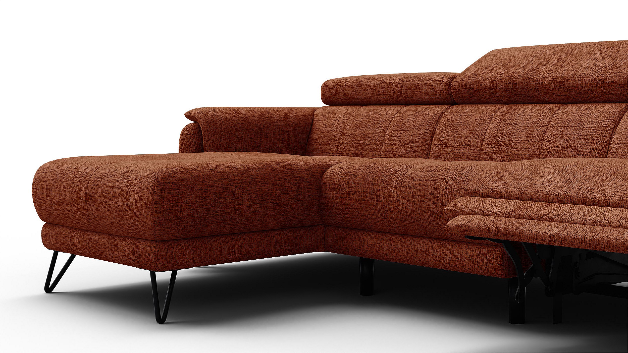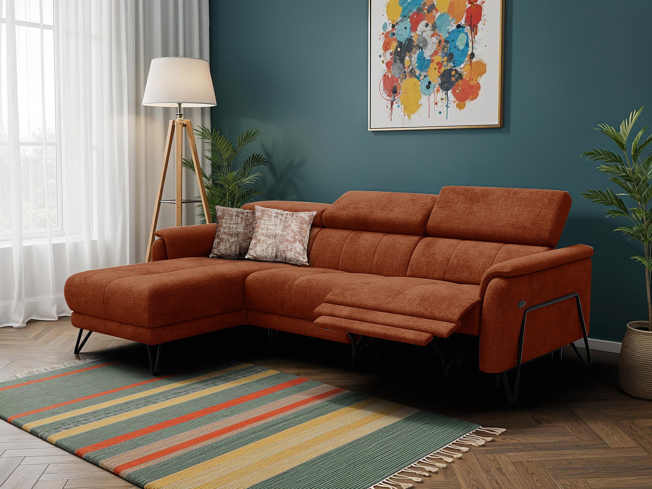 Canapé d'angle 4 places RODEN avec Relax, tissu orange foncé