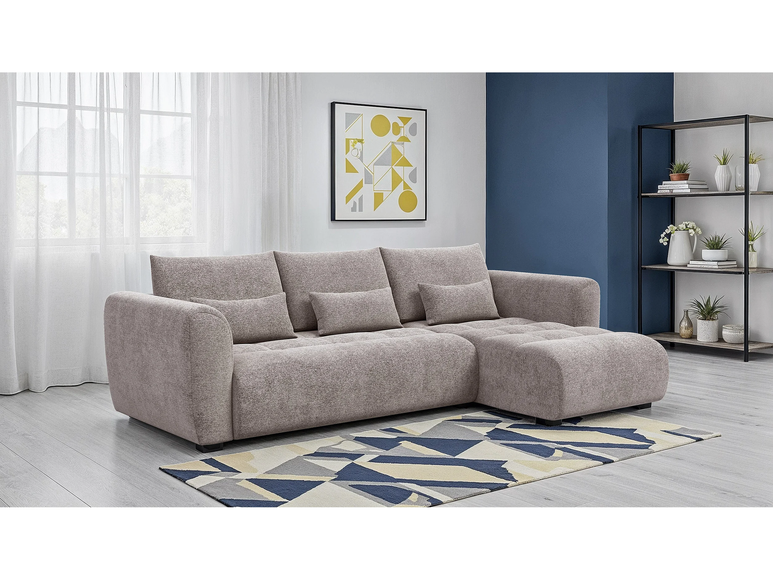Canapé d'angle 4 places SORENO, tissu beige