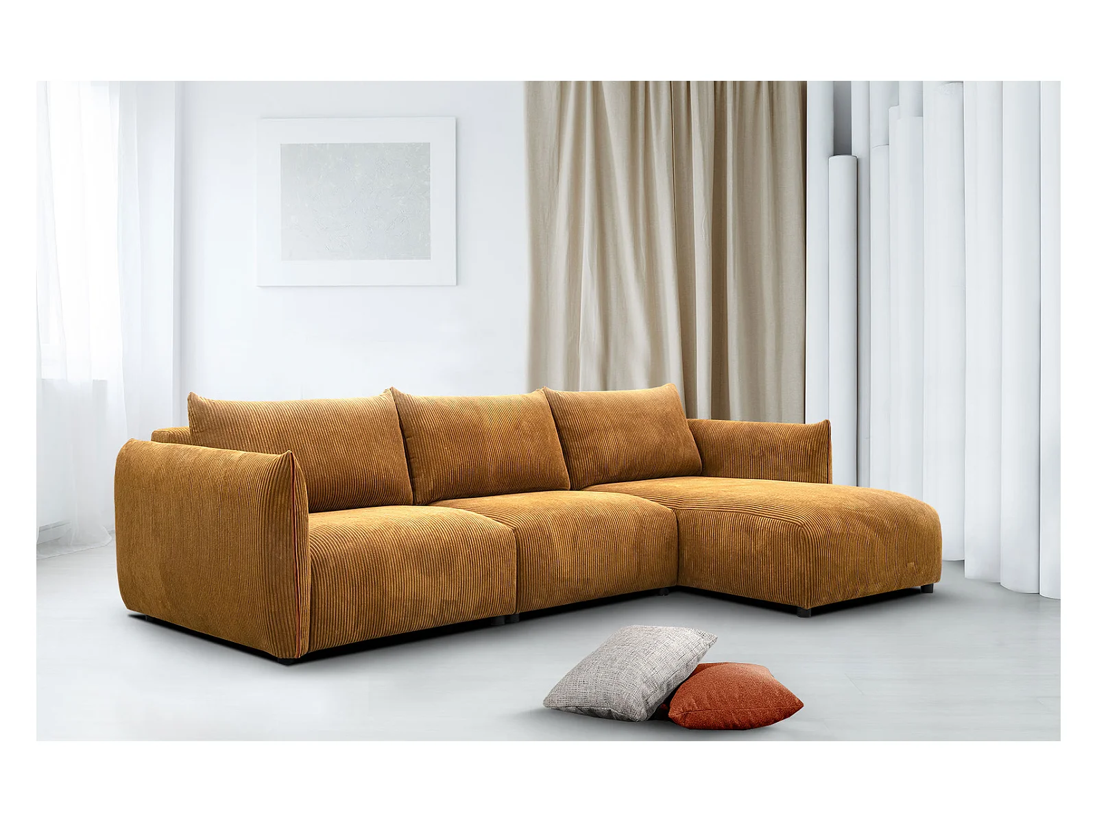 Canapé d'angle 4 places tissu safran - TAUER