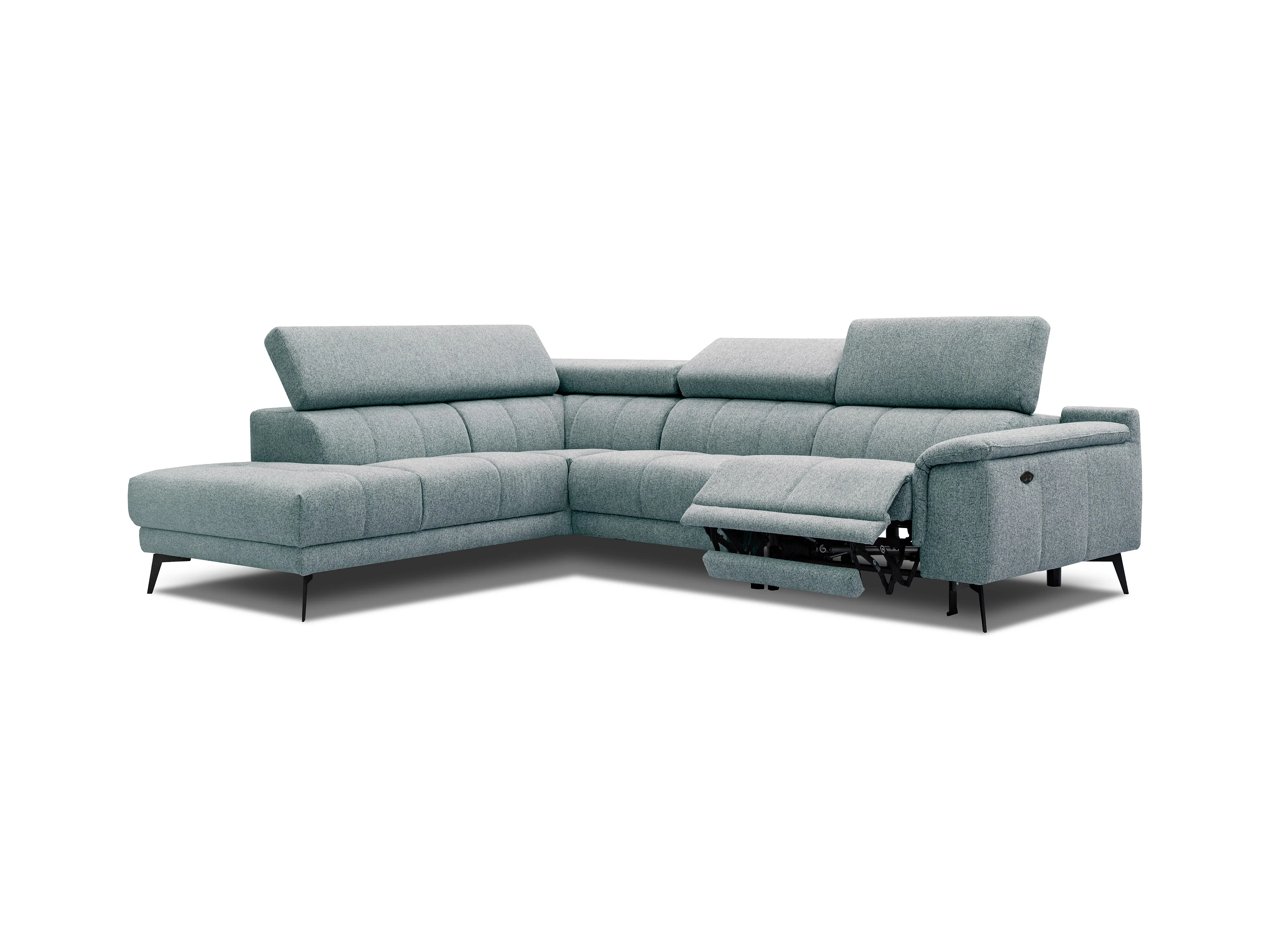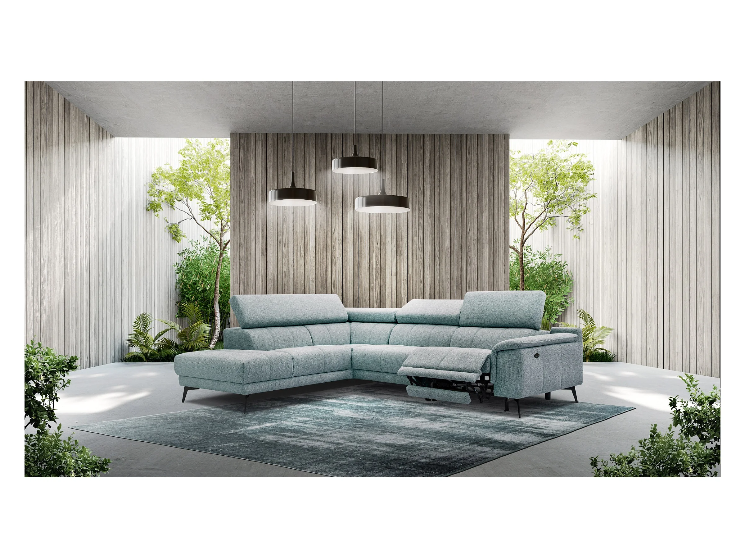 Canapé d'angle 5 places avec un relax électrique tissu turquoise - FIERO
