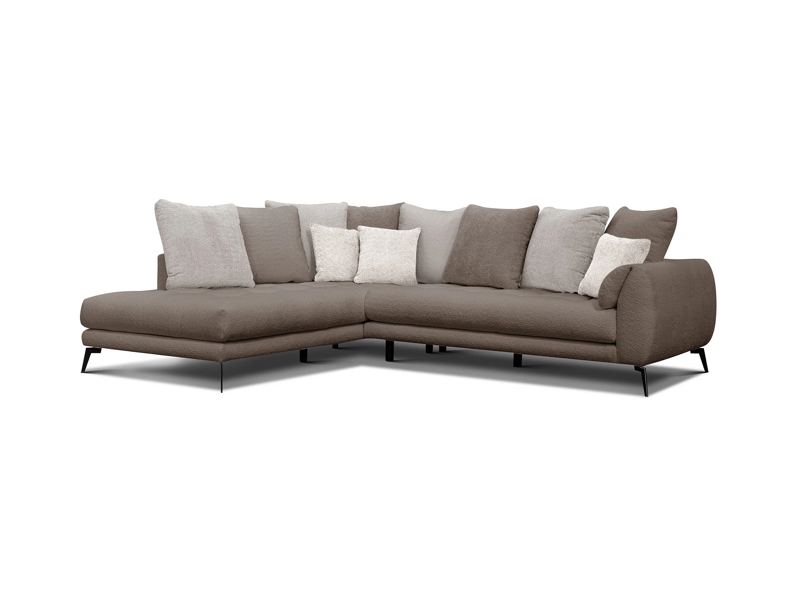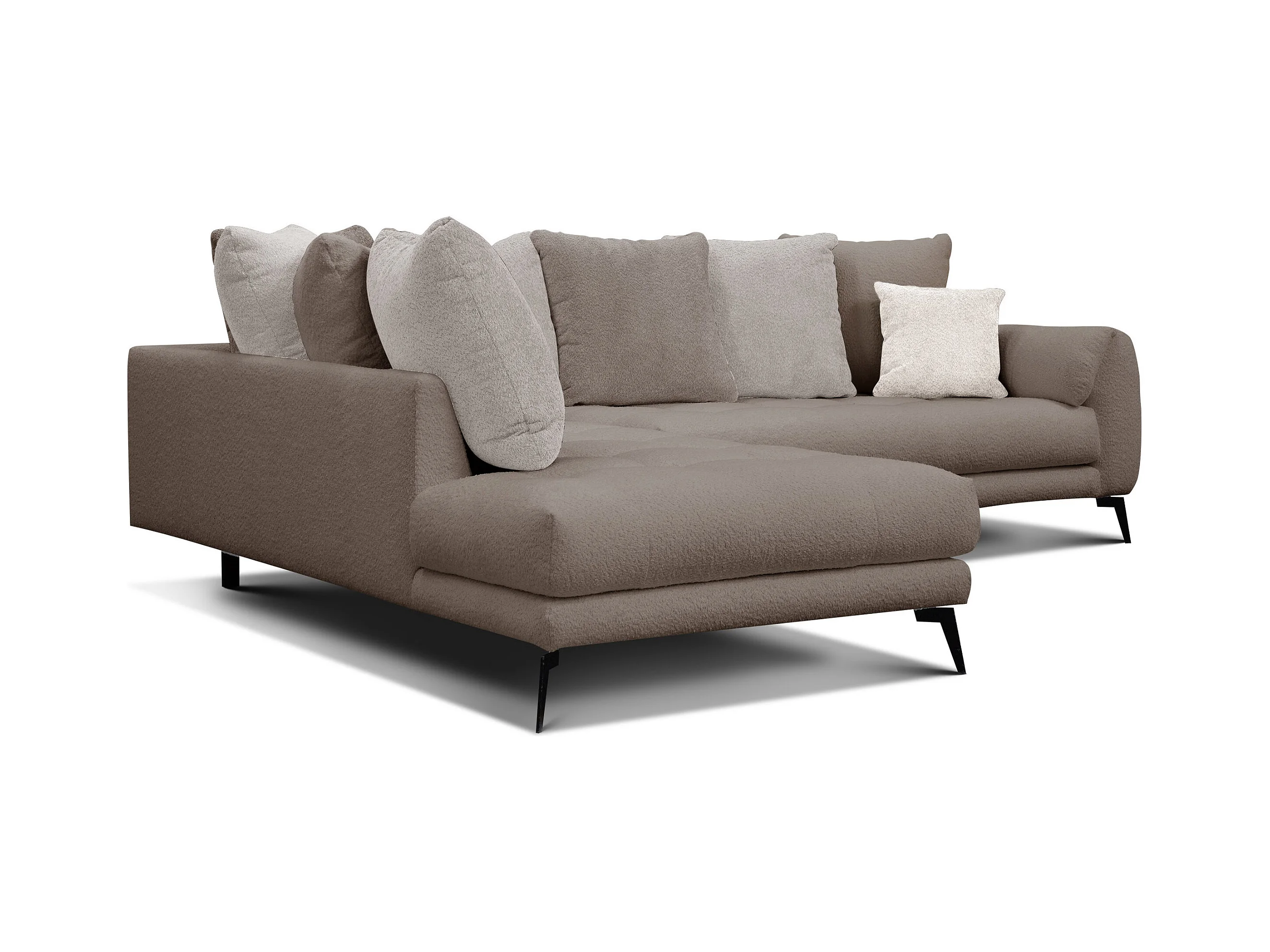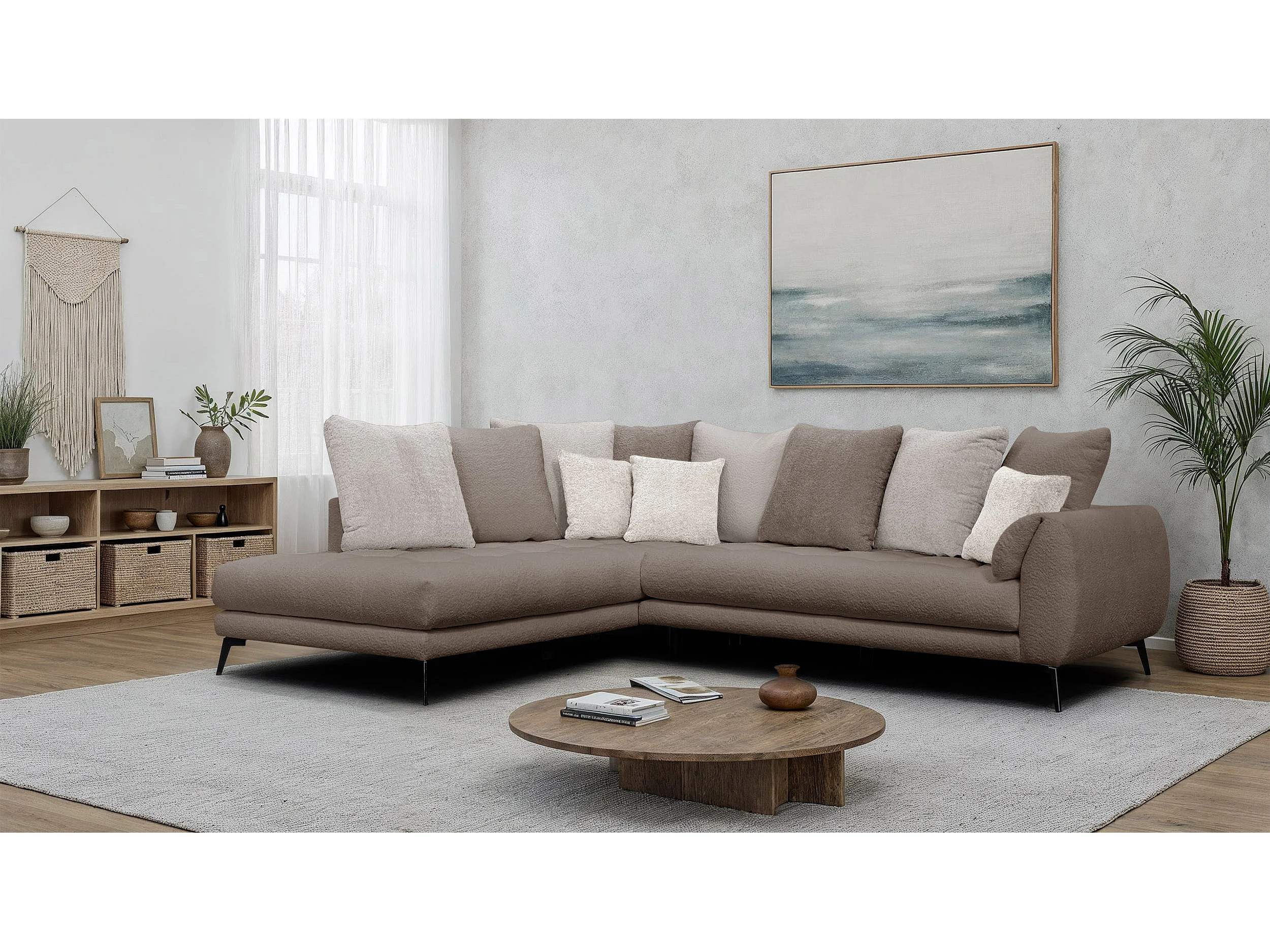 Canapé d'angle 5 places CALME, tissu beige et écru