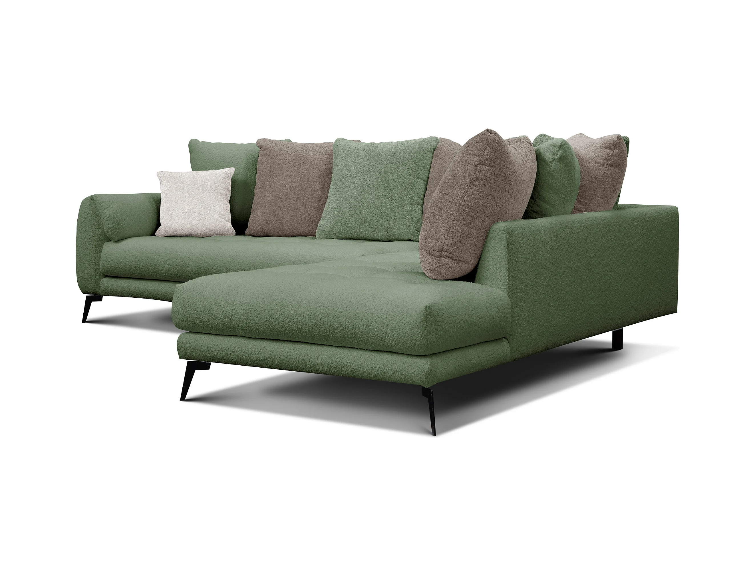 Canapé d'angle 5 places CALME, tissu olive et beige