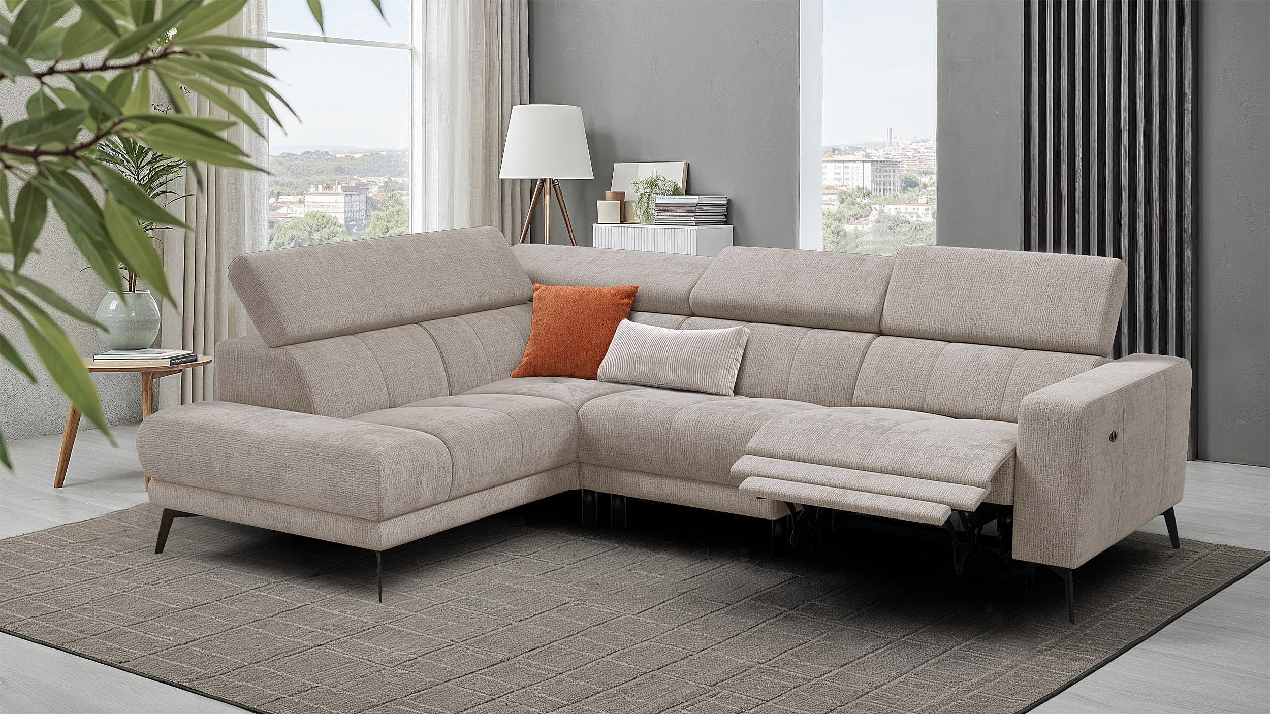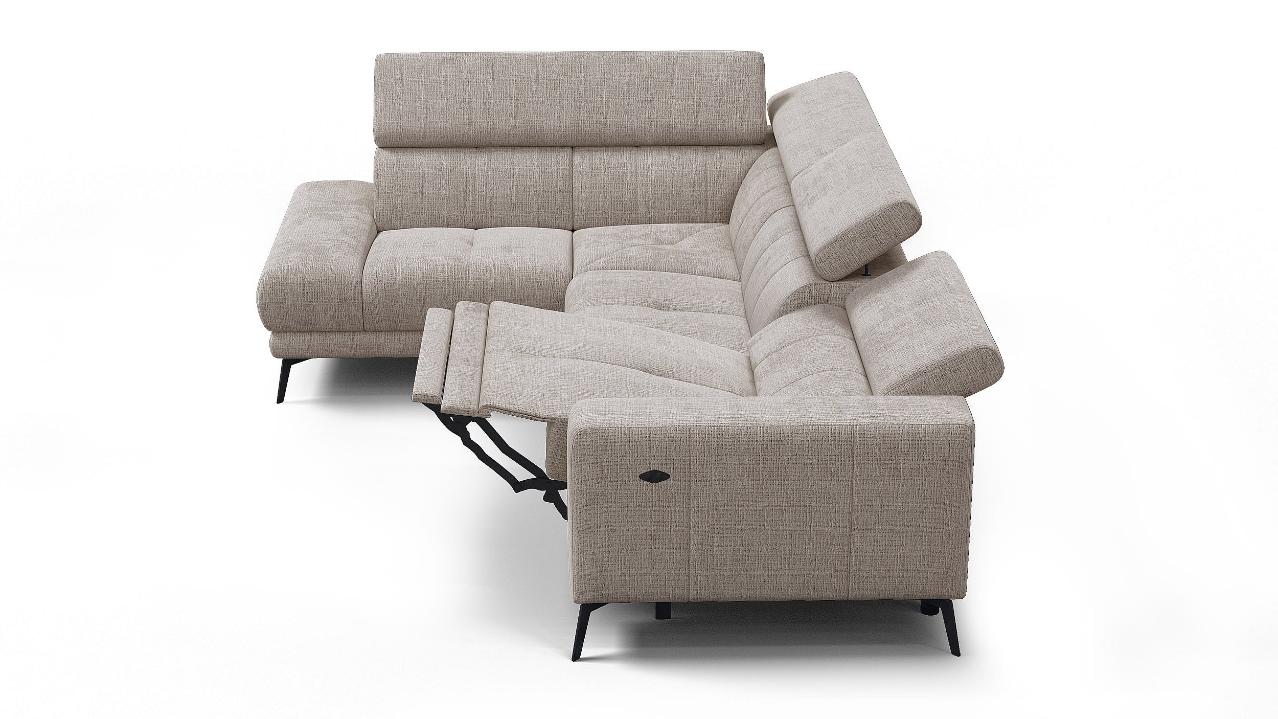 Canapé d'angle 5 places MORELLO avec 1 x Relax Zero Gravity, tissu beige