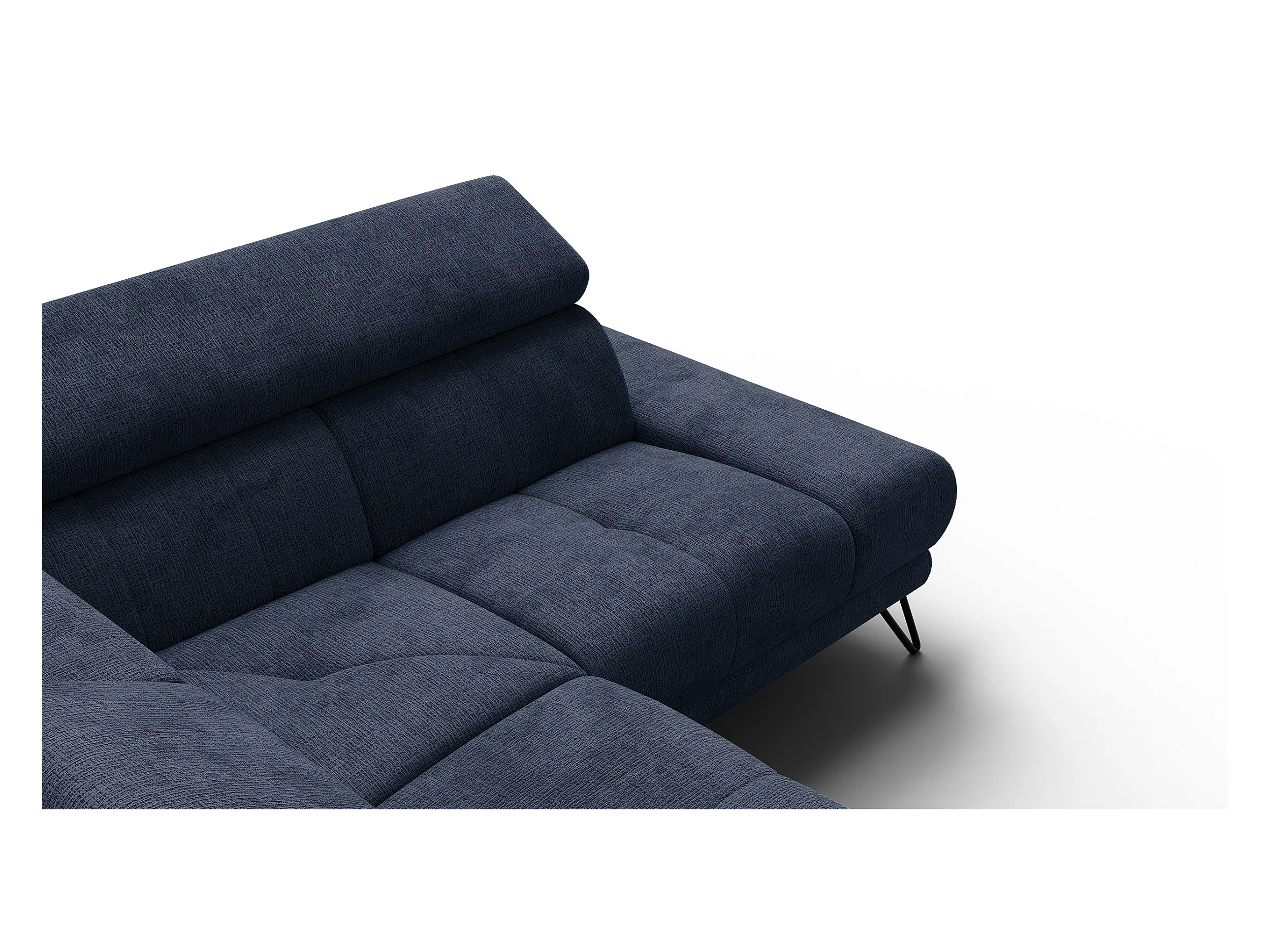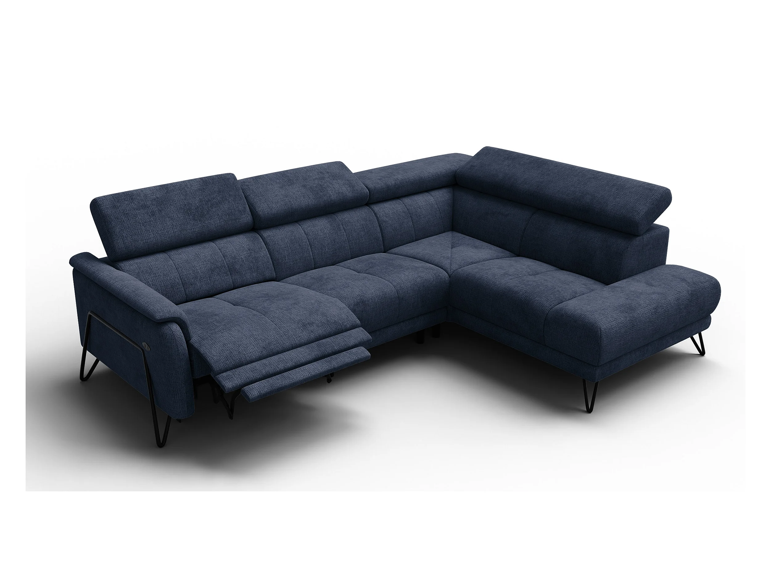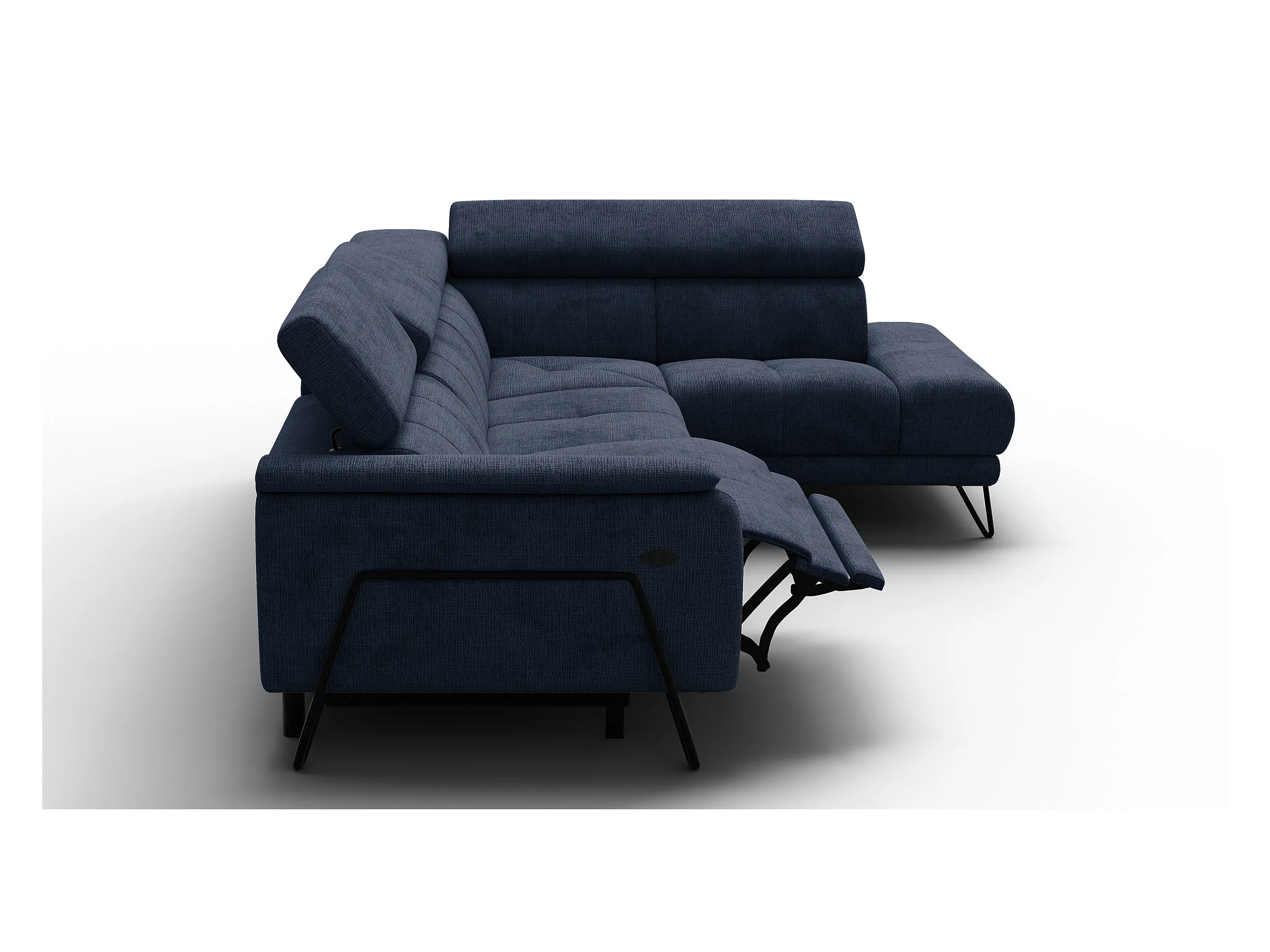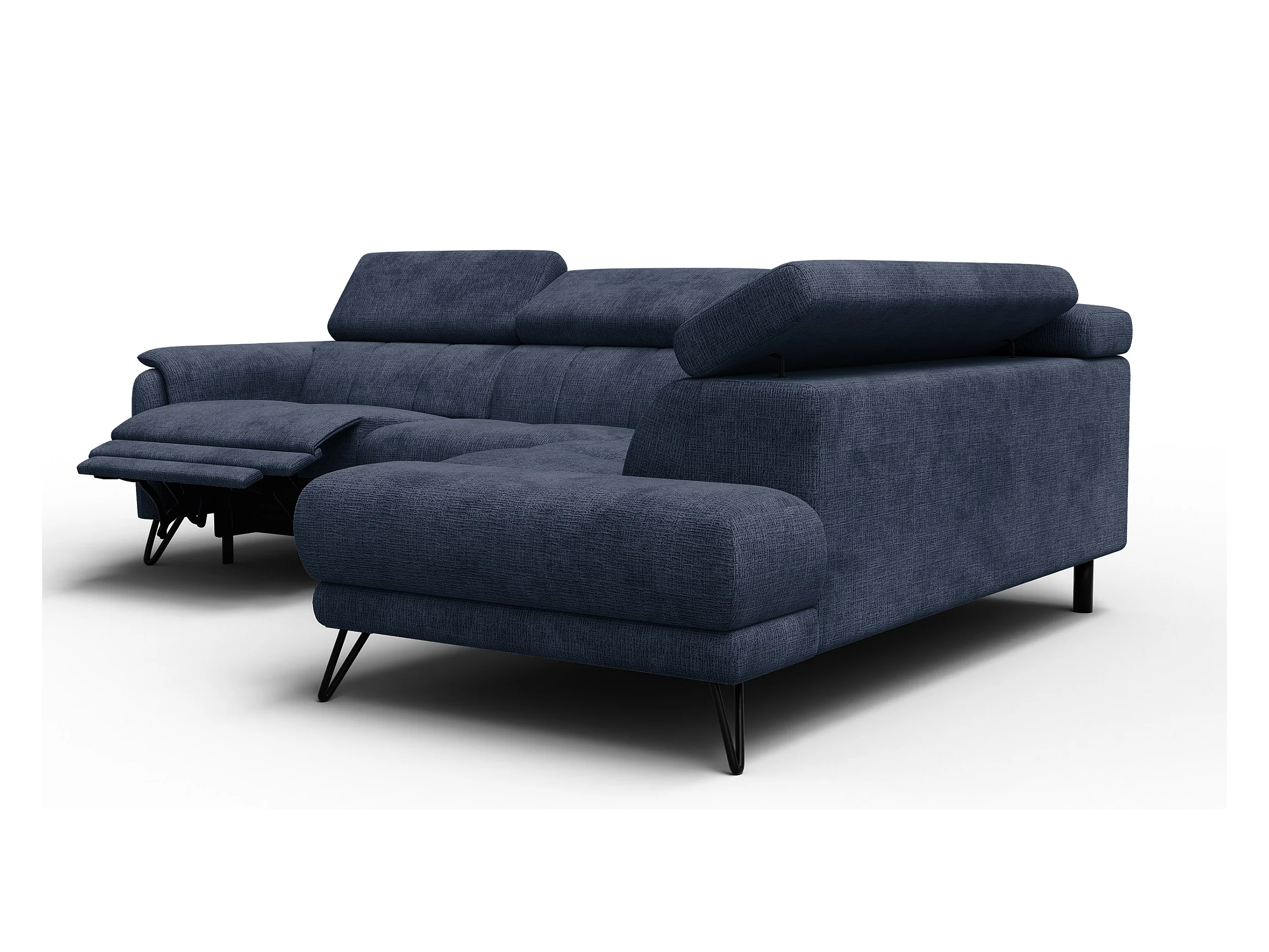 Canapé d'angle 5 places RODEN avec Relax, tissu bleu marine