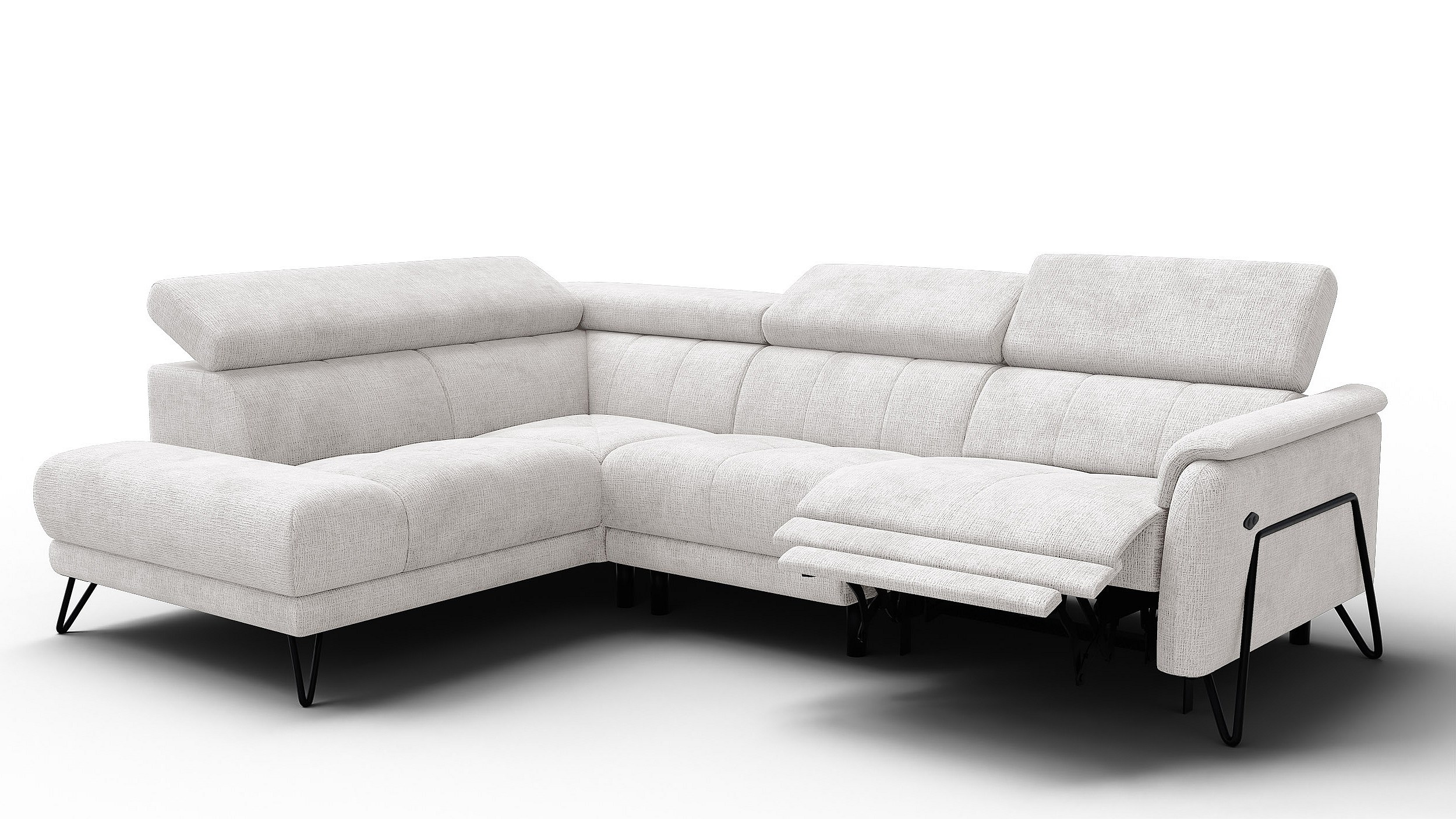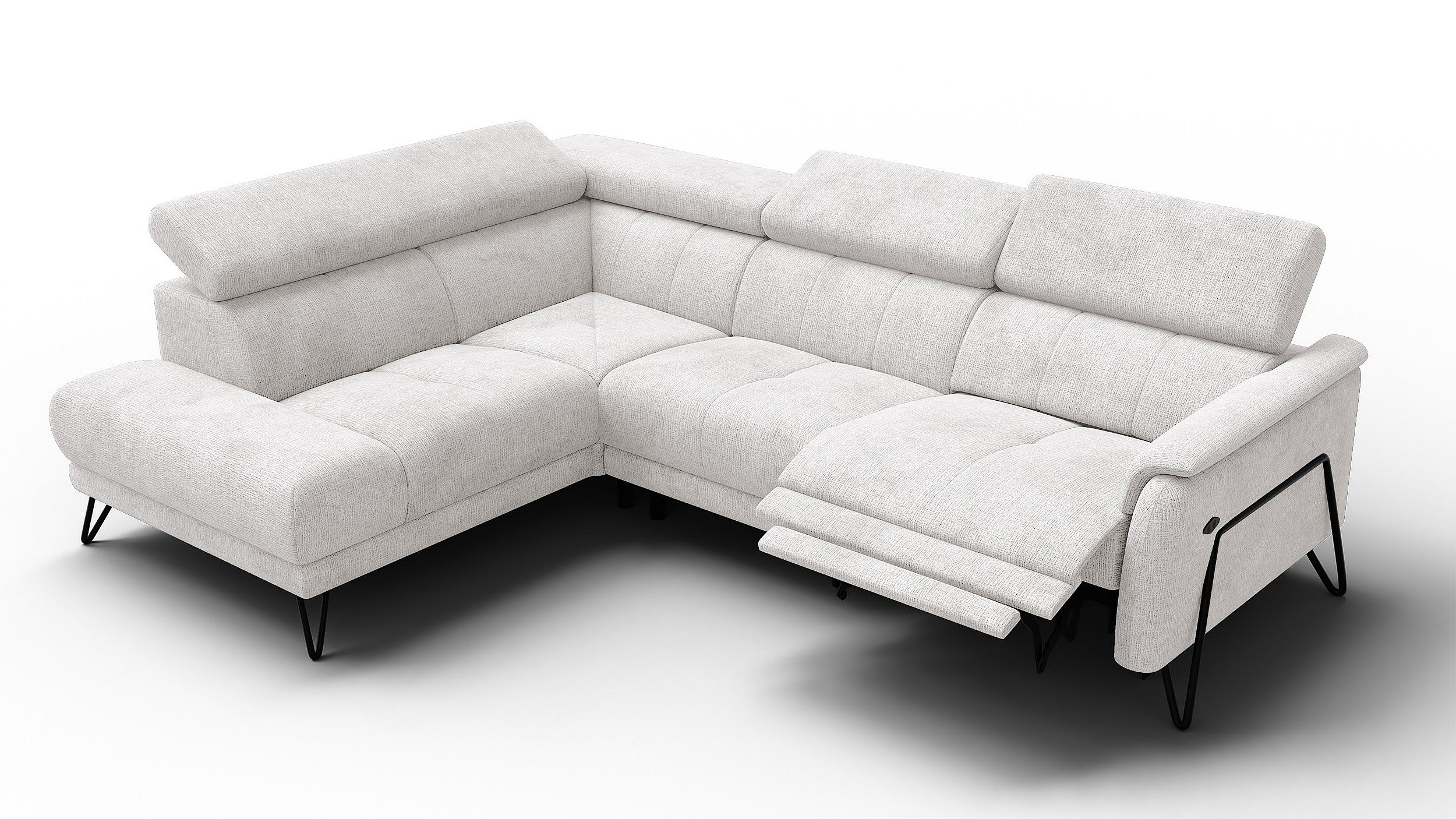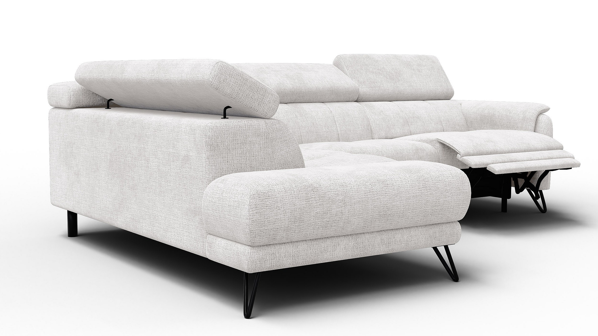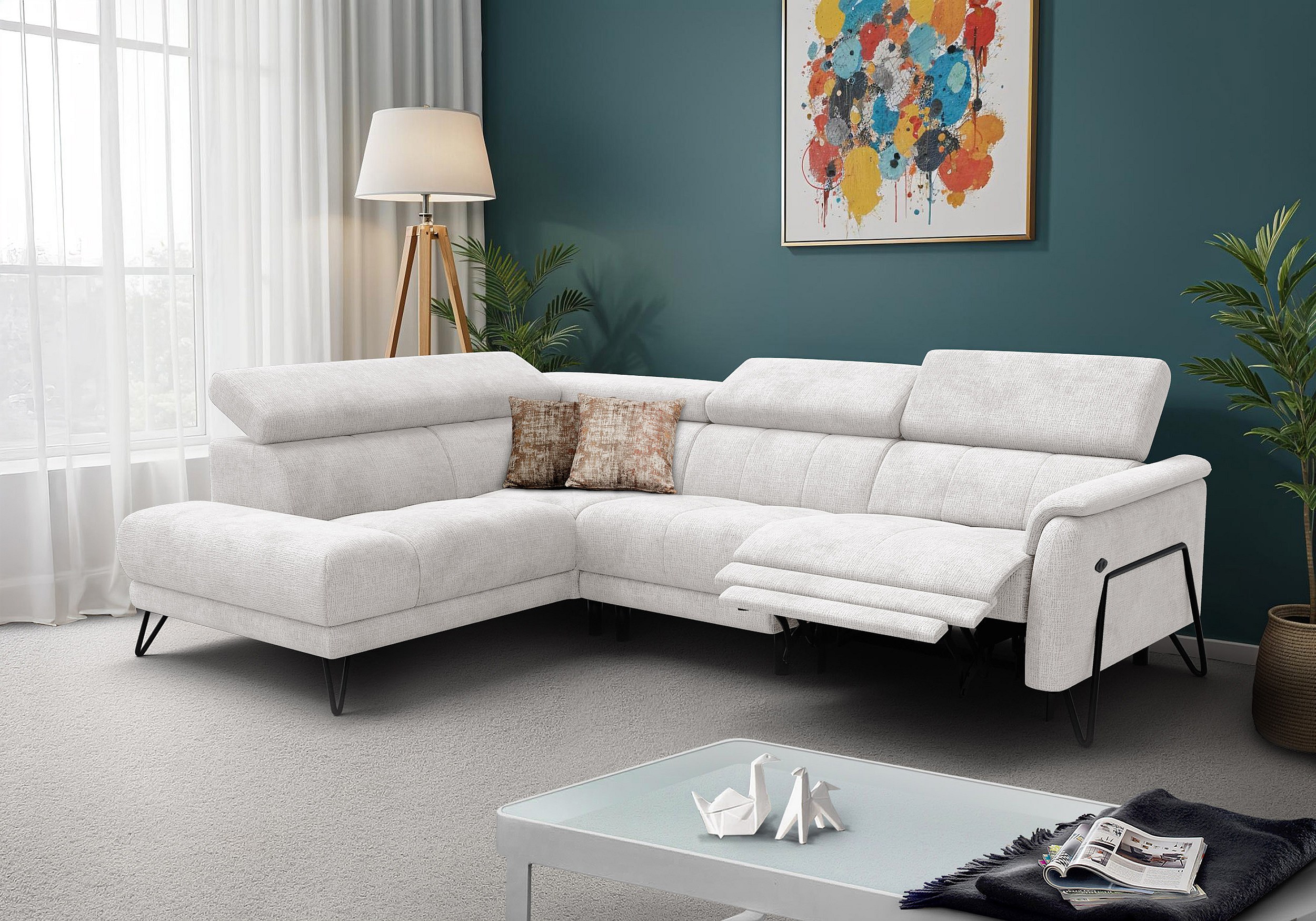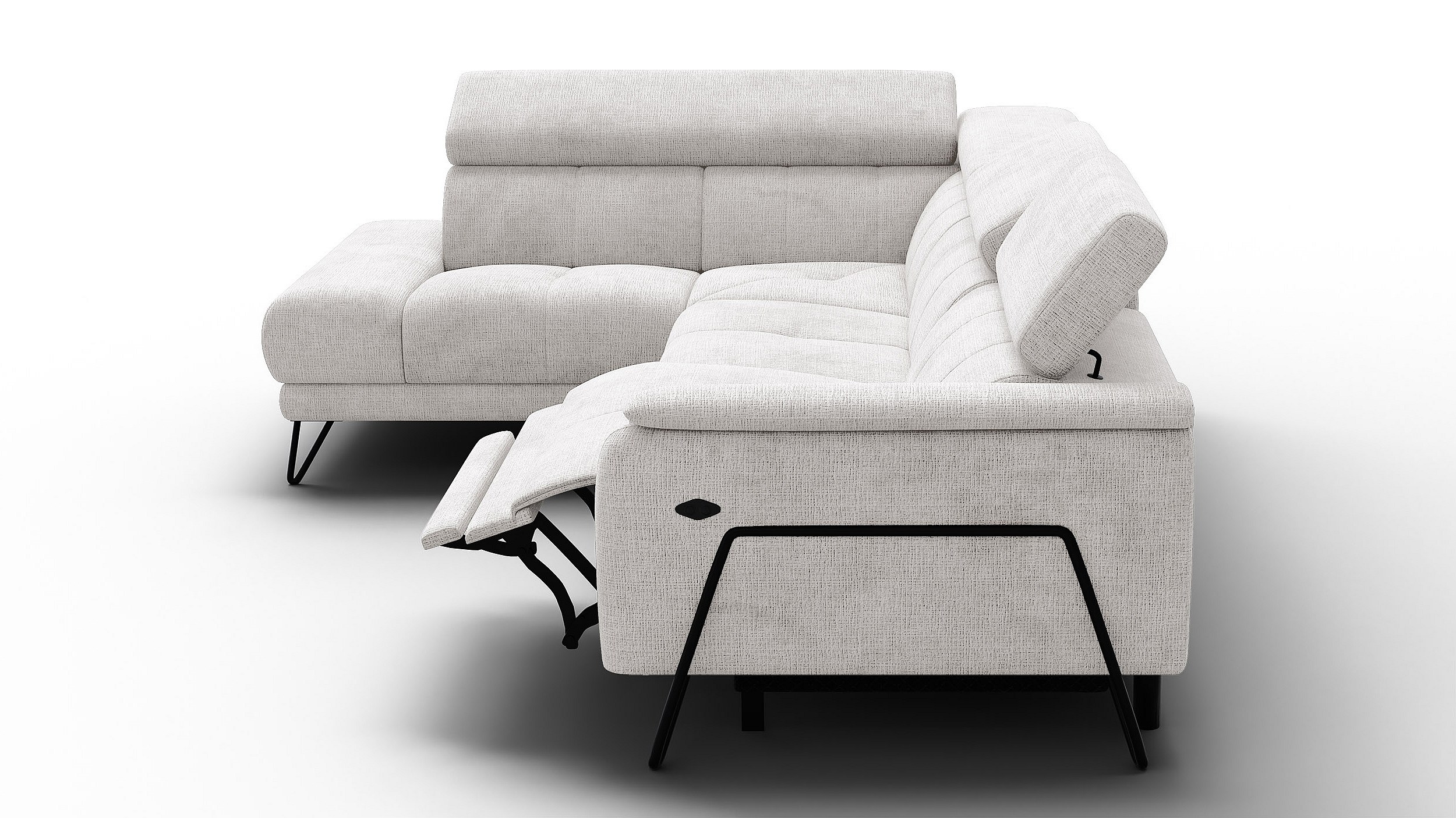 Canapé d'angle 5 places RODEN avec Relax, tissu crème