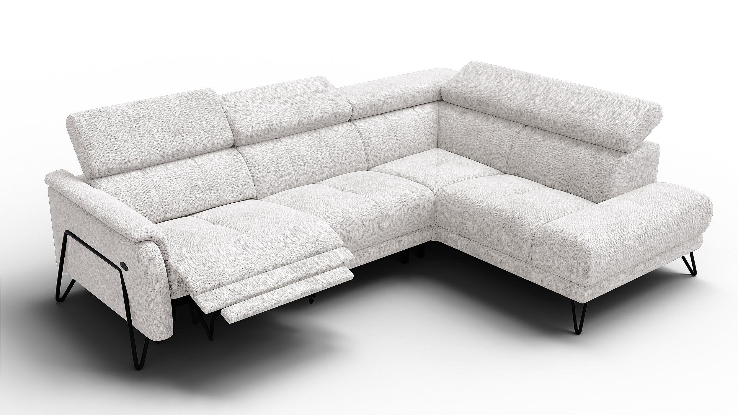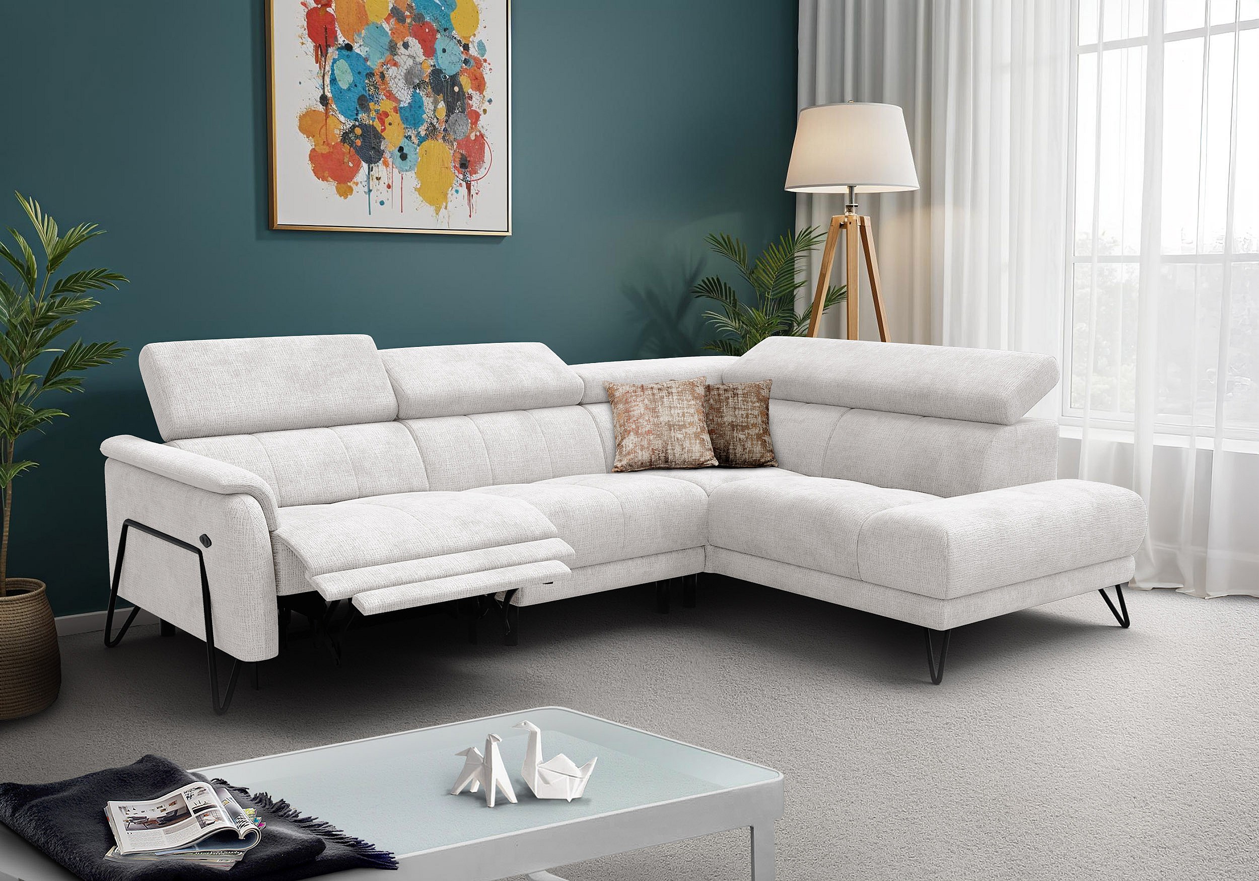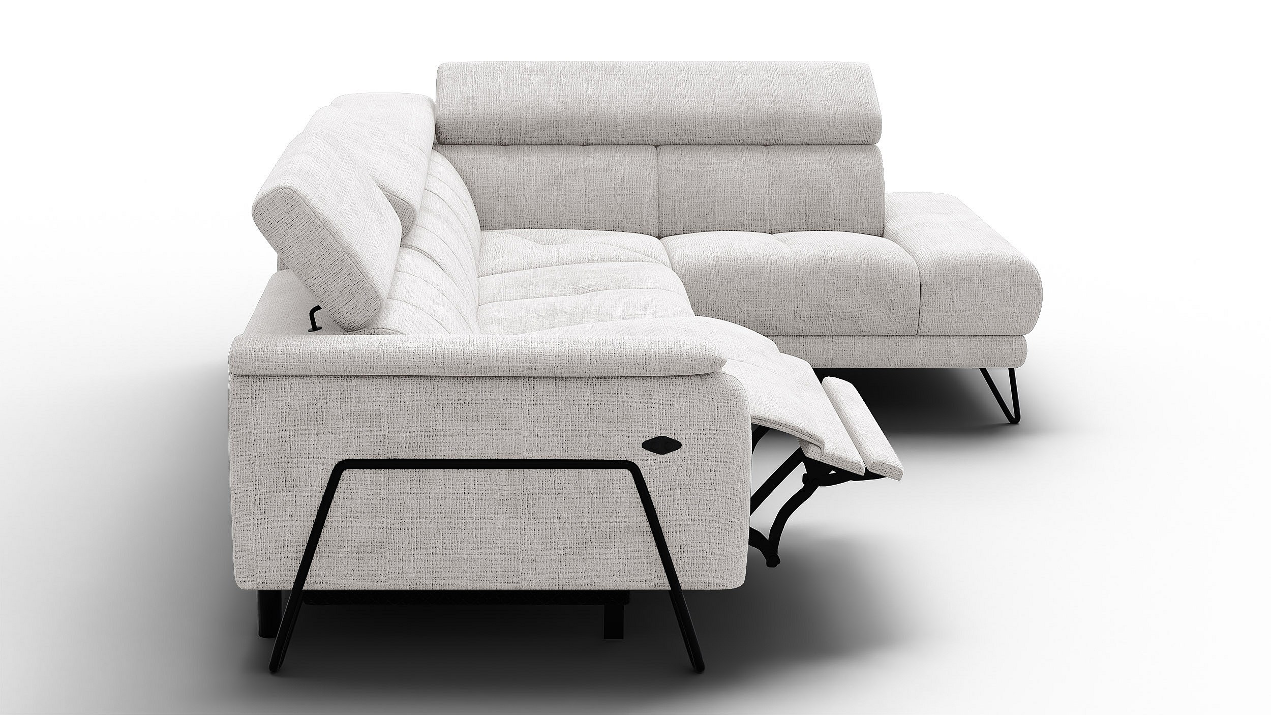 Canapé d'angle 5 places RODEN avec Relax, tissu crème