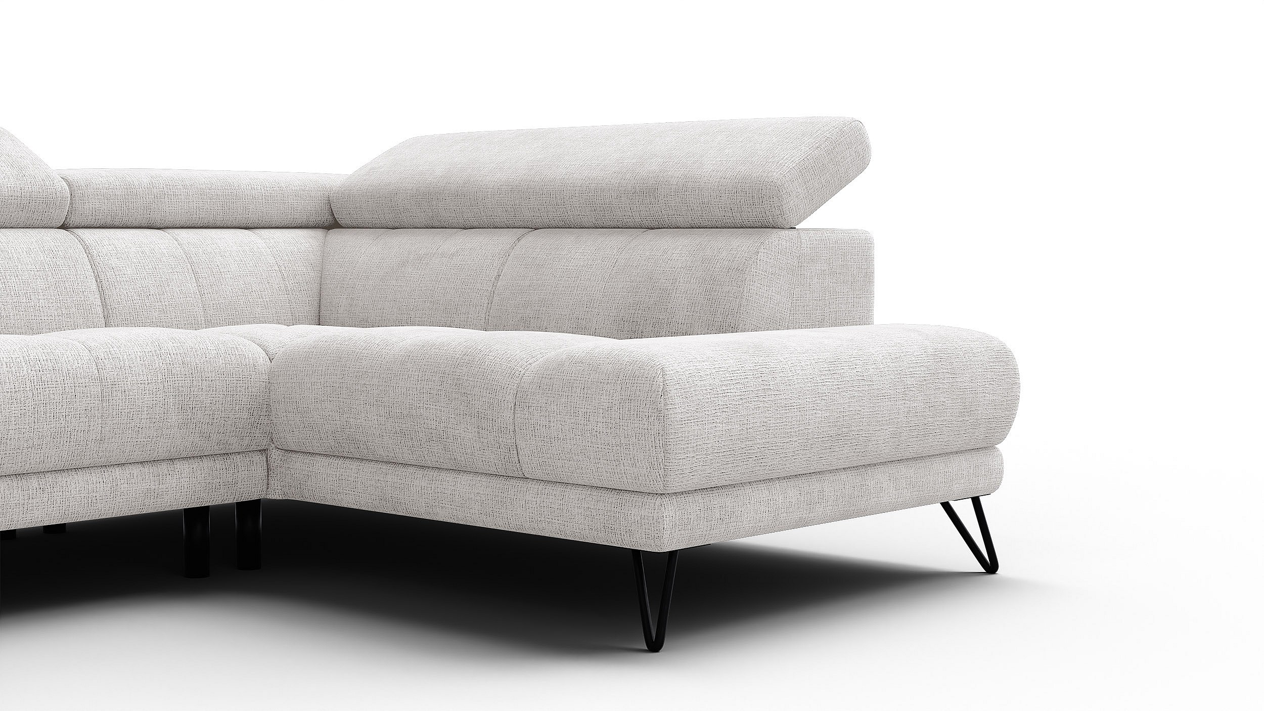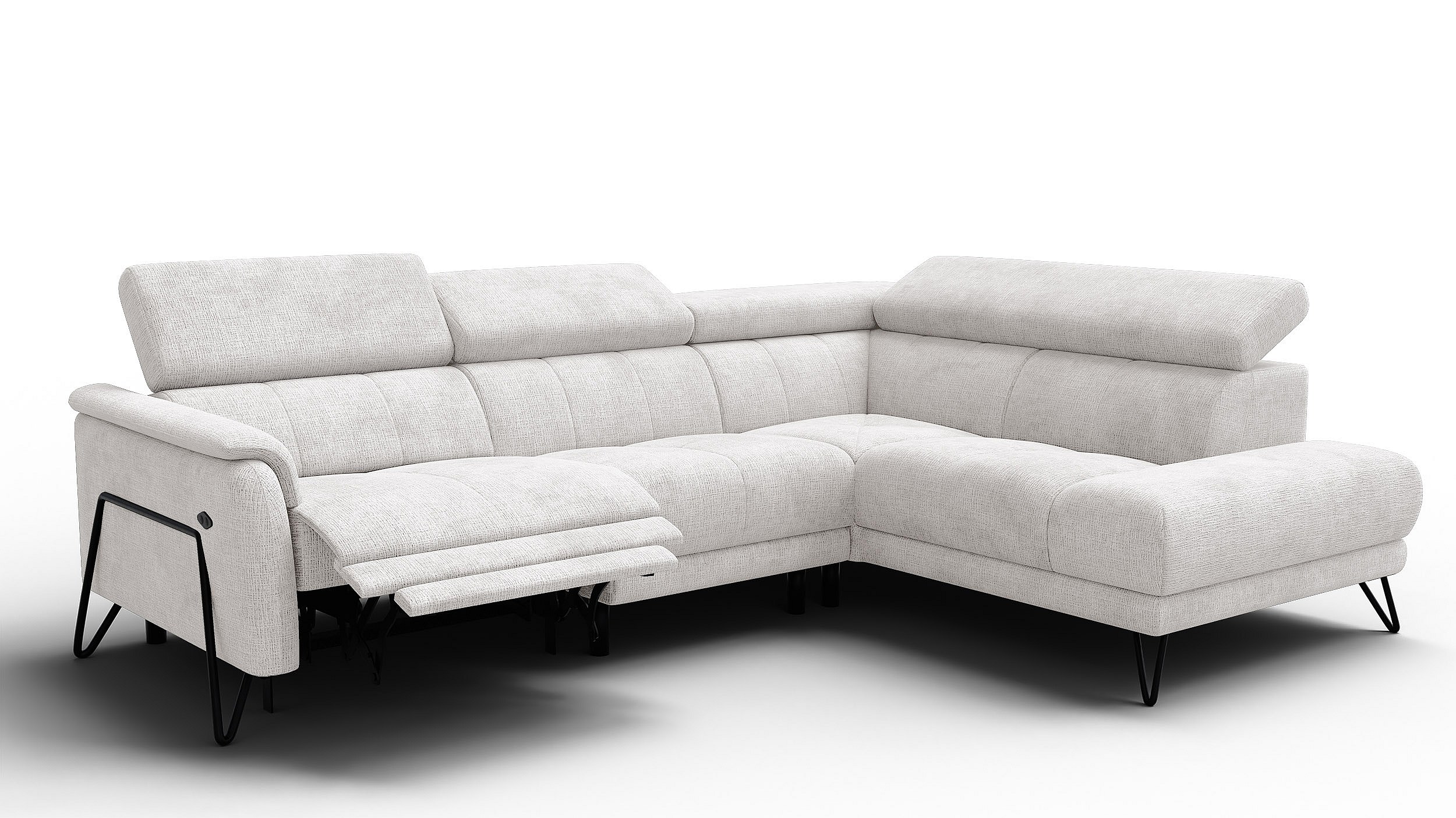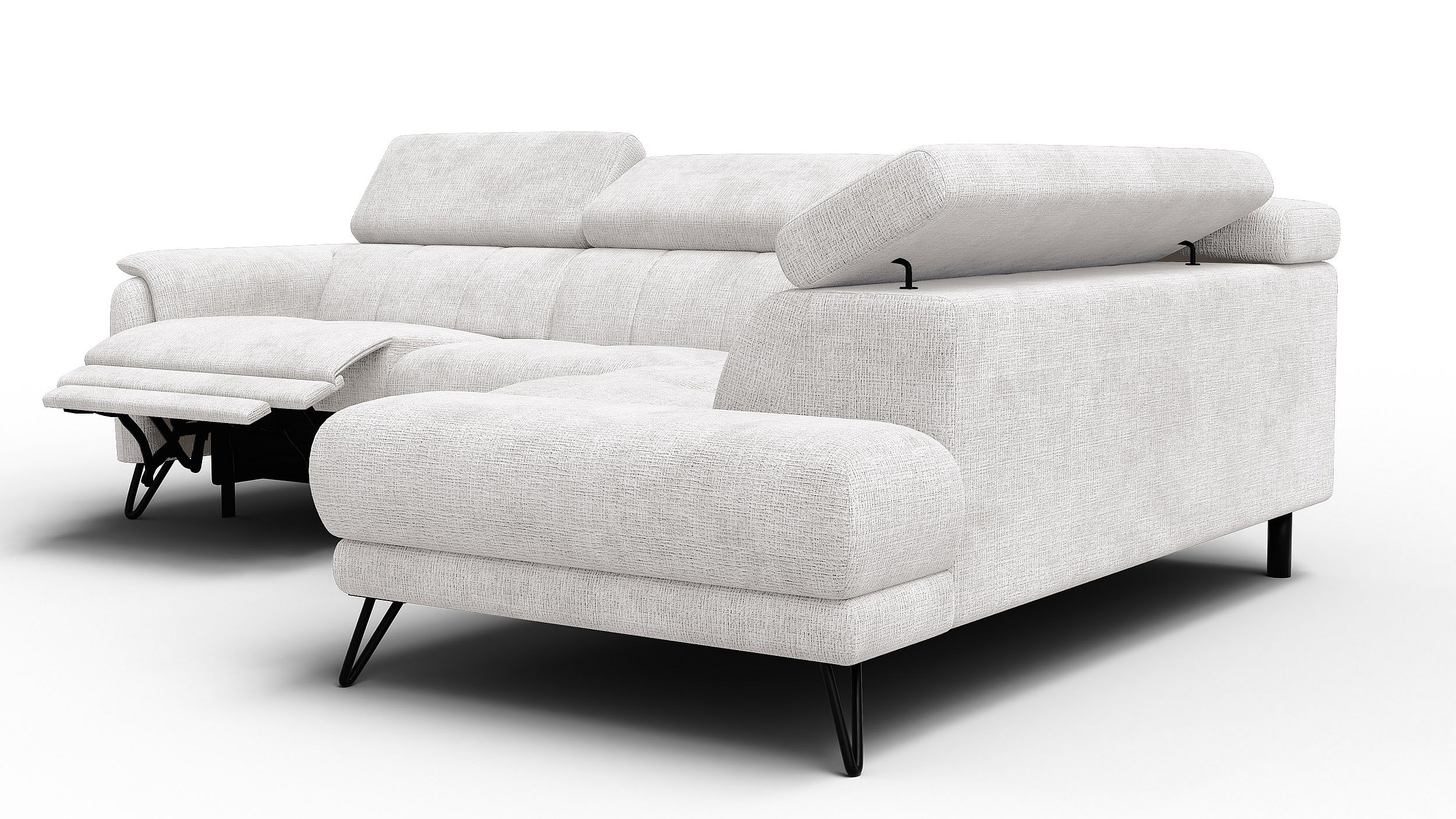 Canapé d'angle 5 places RODEN avec Relax, tissu crème
