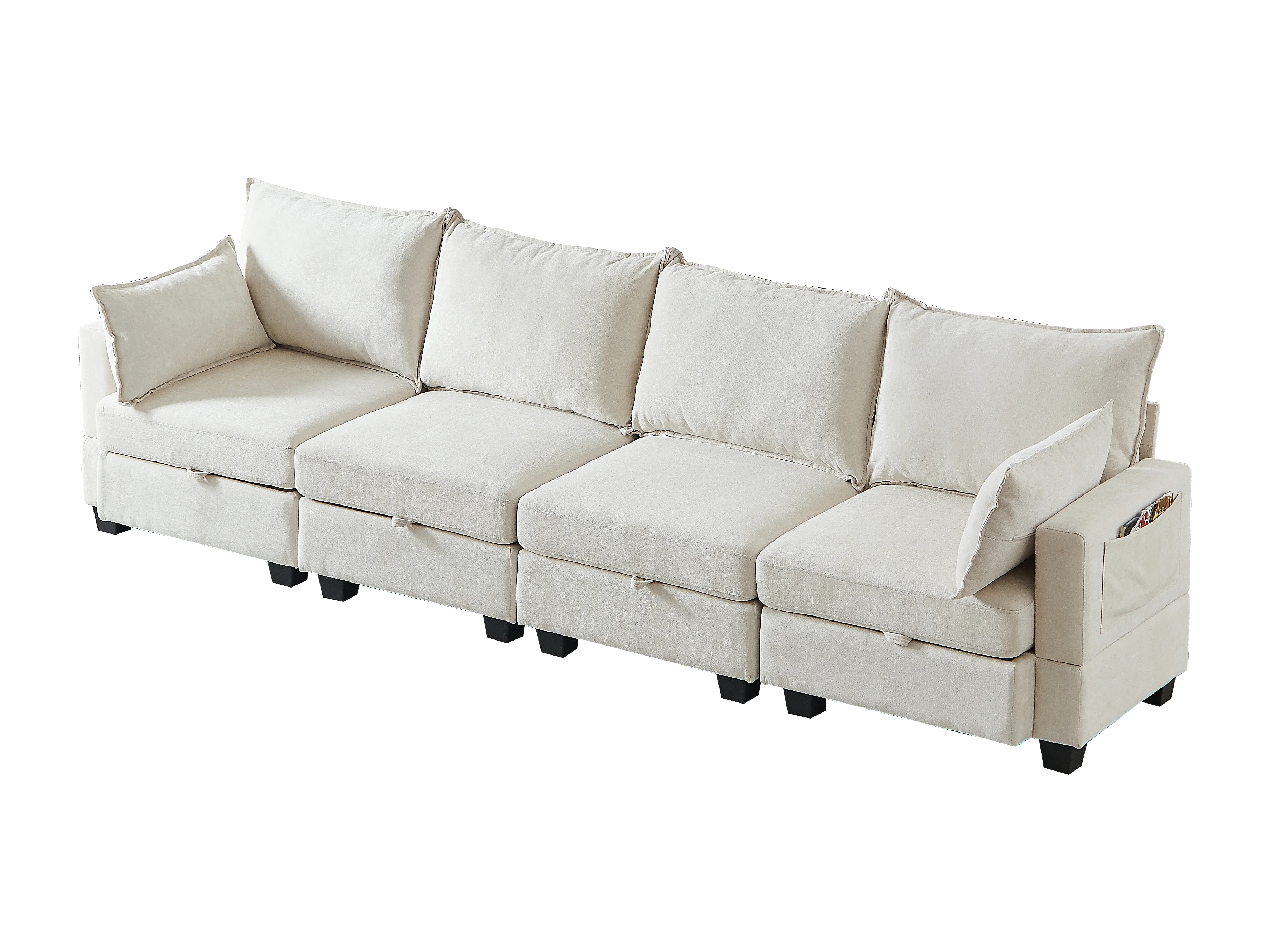 Canapé d’angle 6 places modulable avec 6 coffres de rangements - Tissu chenille beige
