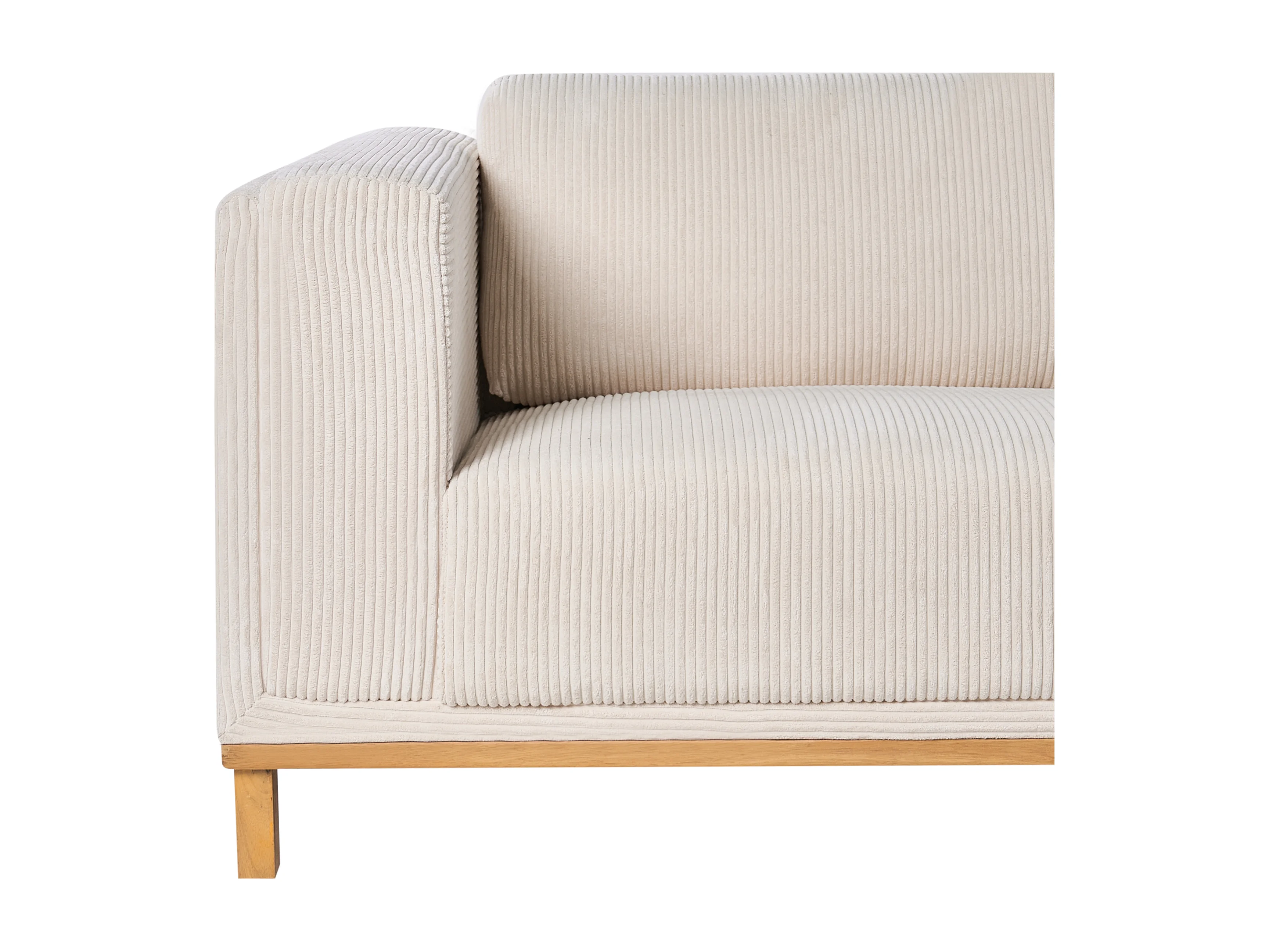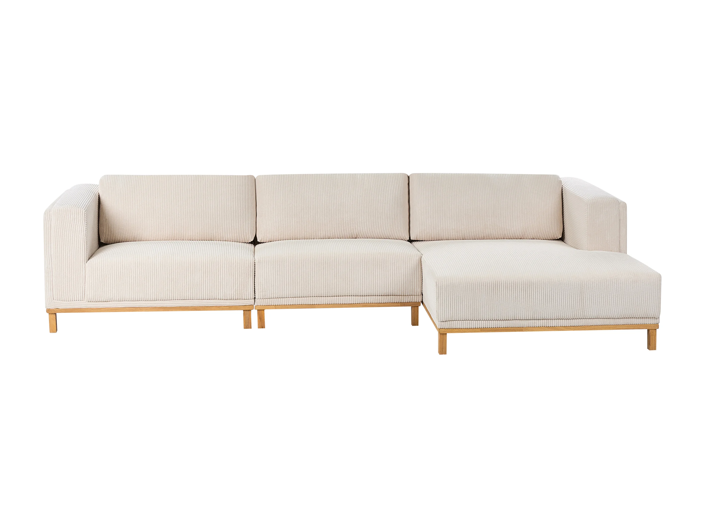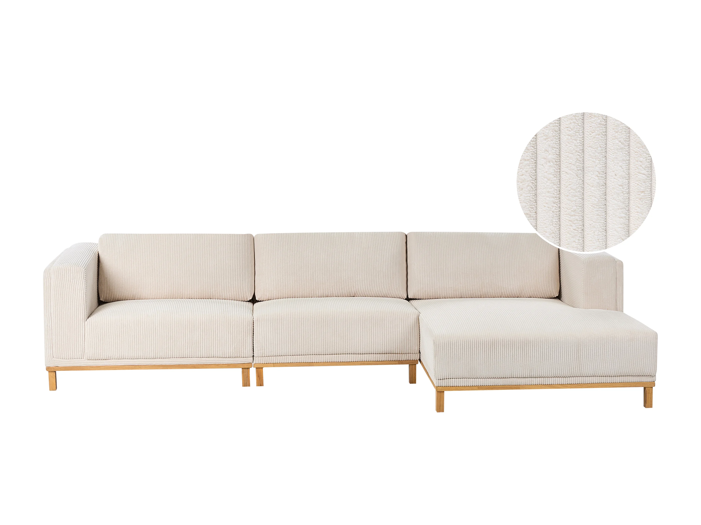 Canapé d'Angle à Gauche 5 Places Moderne en Velours Côtelé avec Accoudoirs Pieds en Bois Beige Clair Veng