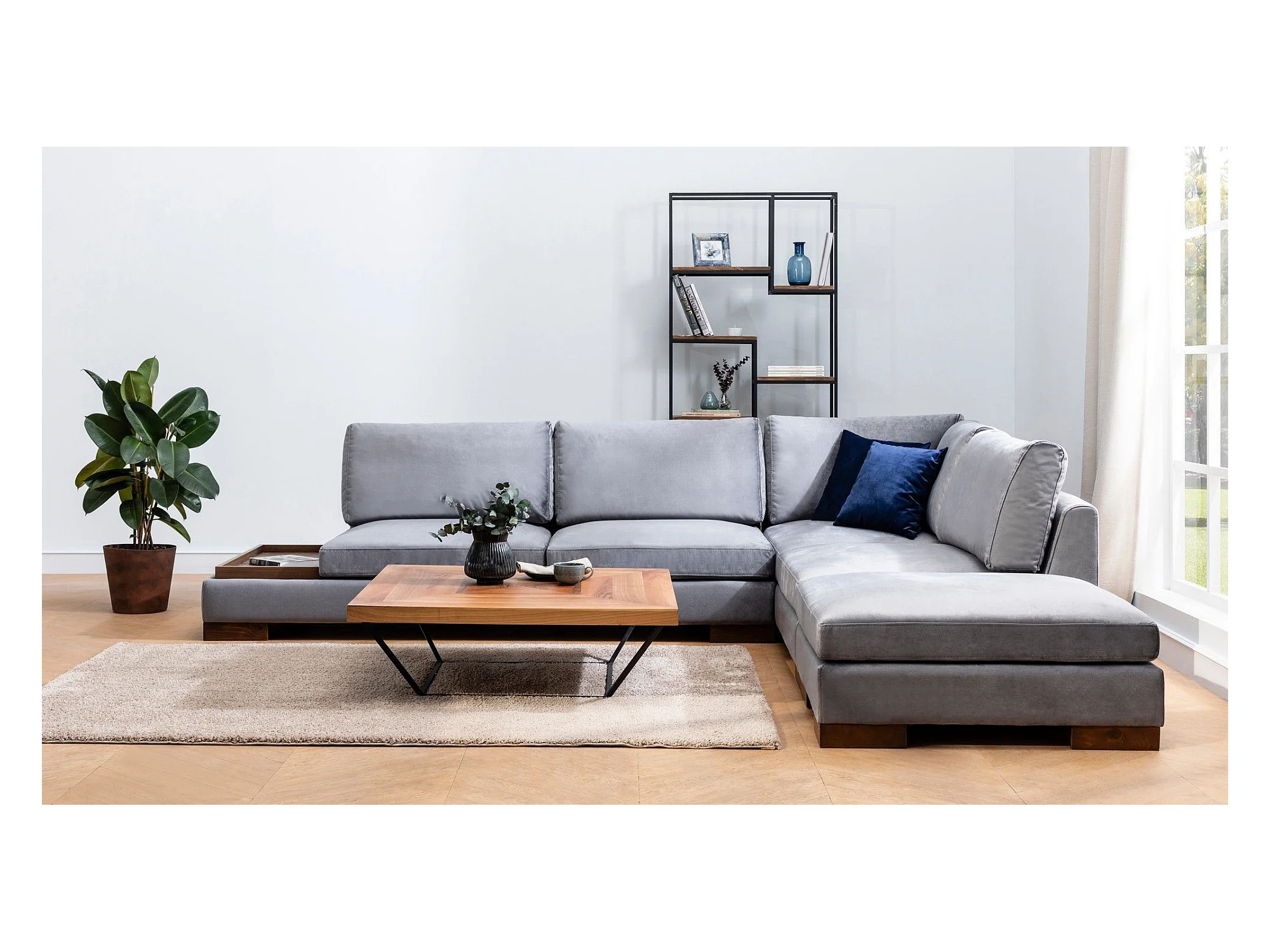 Canapé d'angle à droite avec pouf Perissa Velours Gris foncé