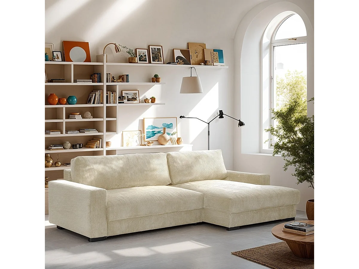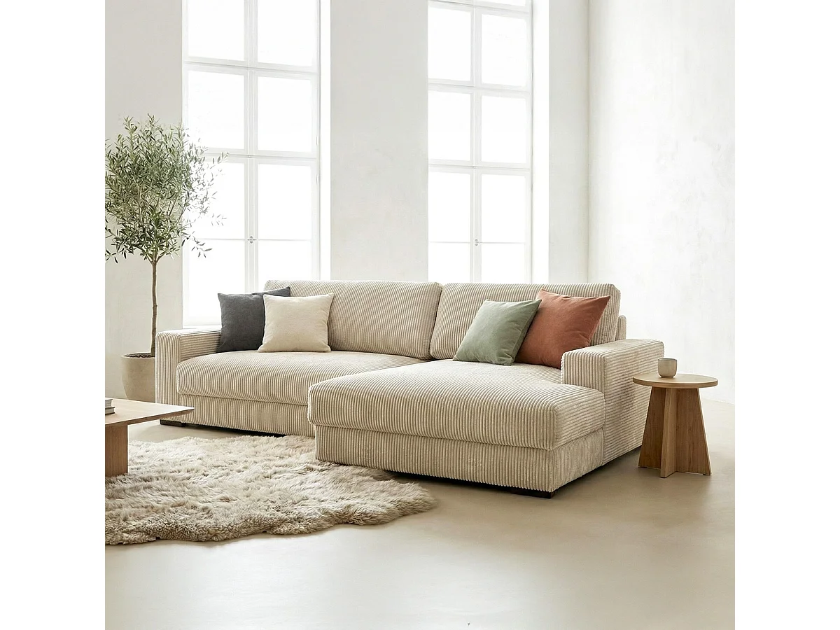 Canapé d'angle à droite convertible 3 places avec coffre en velours côtelé beige - Arty