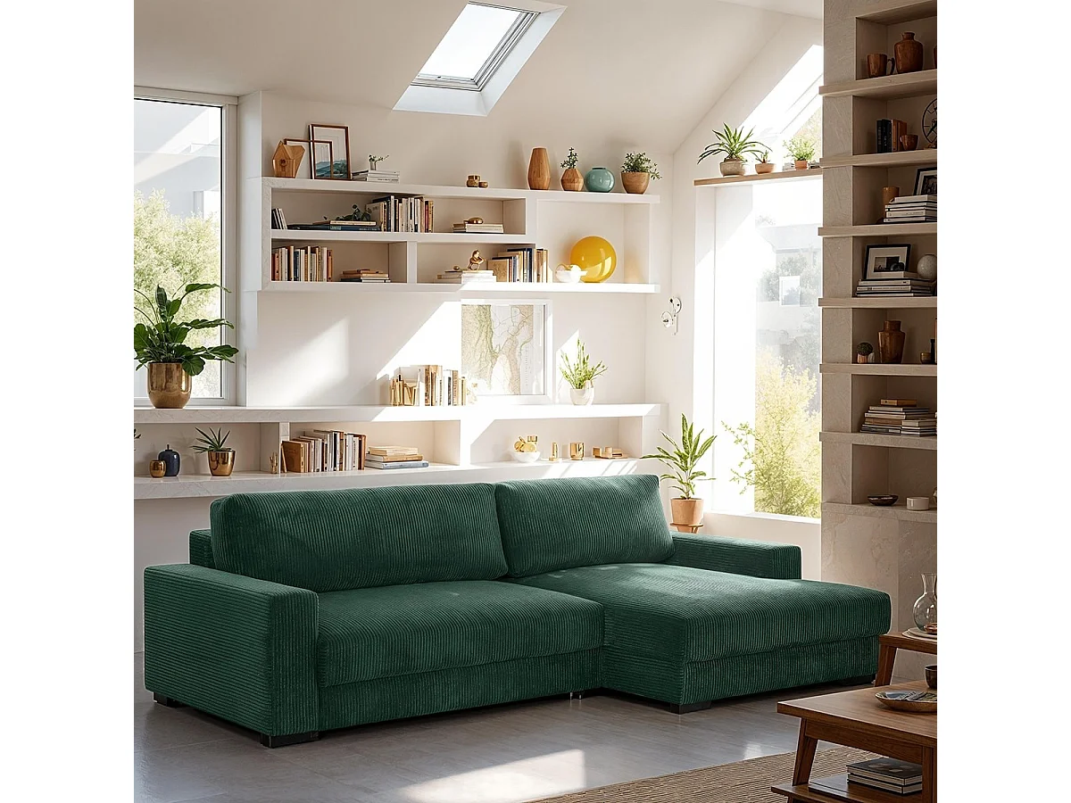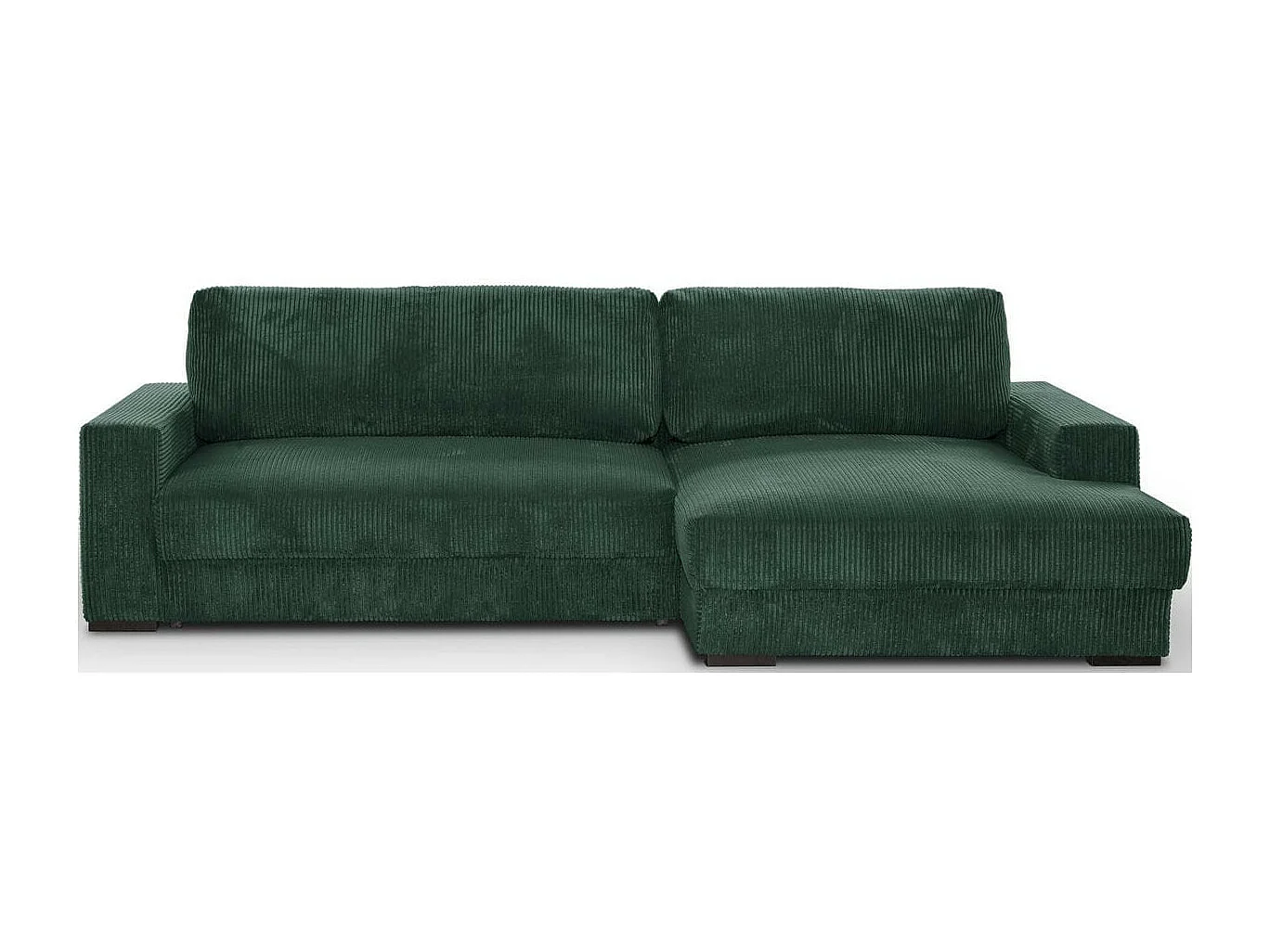 Canapé d'angle à droite convertible 3 places avec coffre en velours côtelé vert foncé - Arty