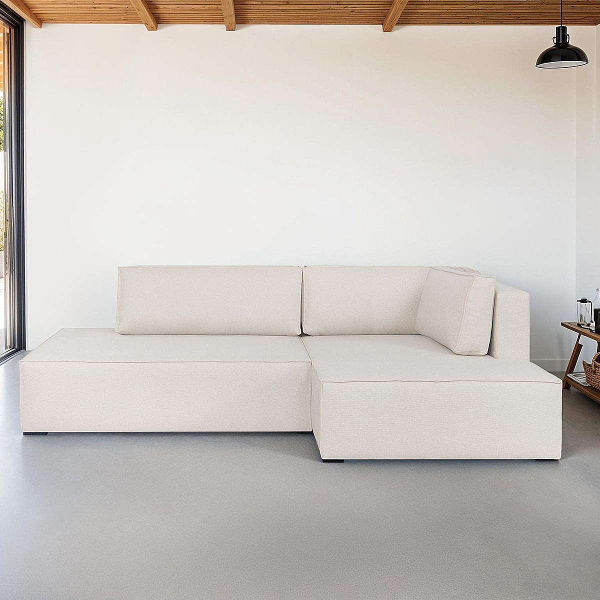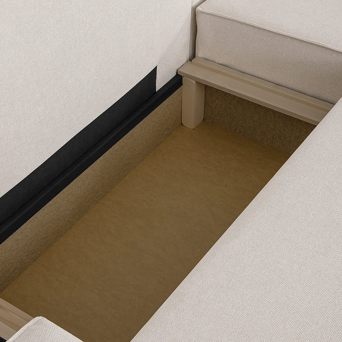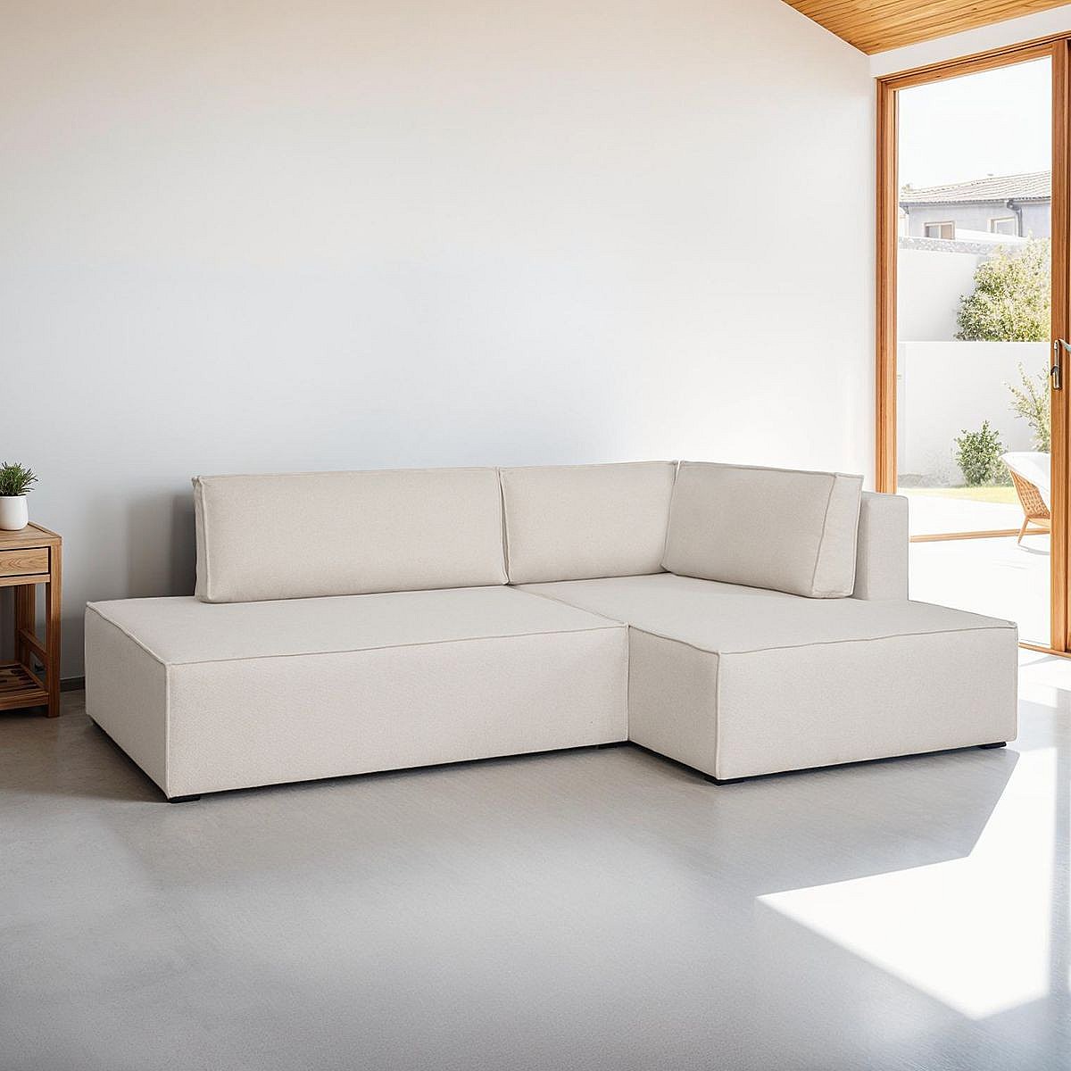 Canapé d'angle à droite convertible 3 places avec coffre en tissu beige - Barani