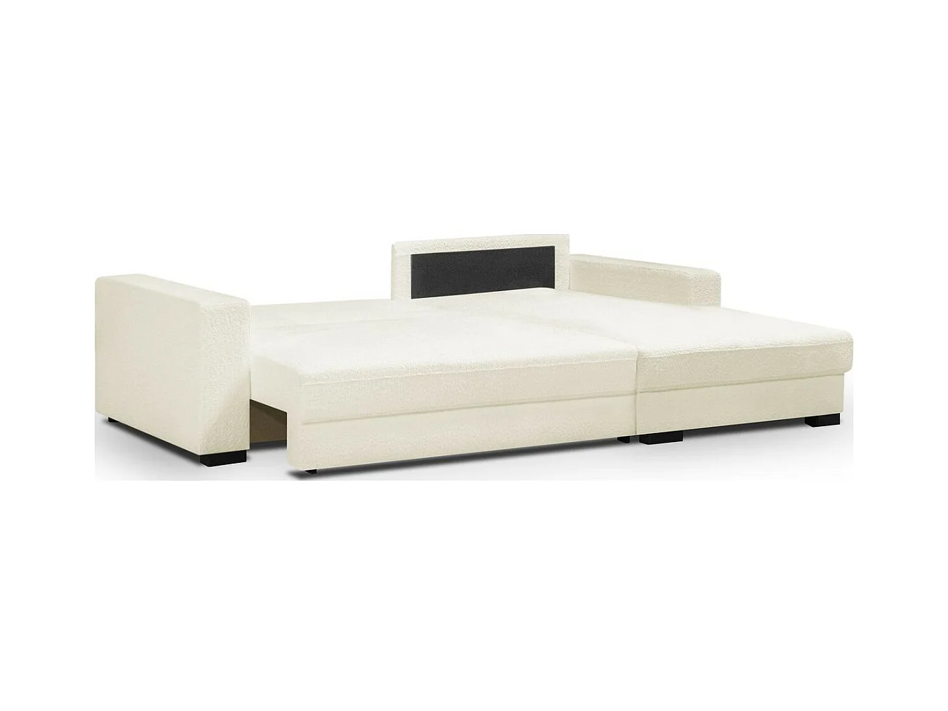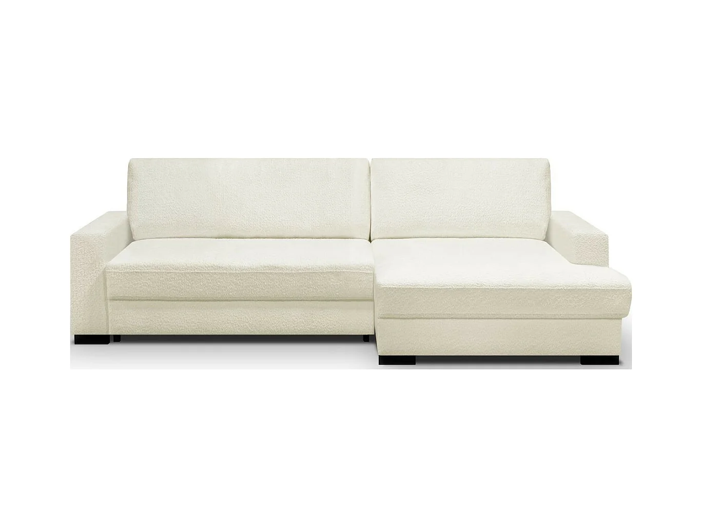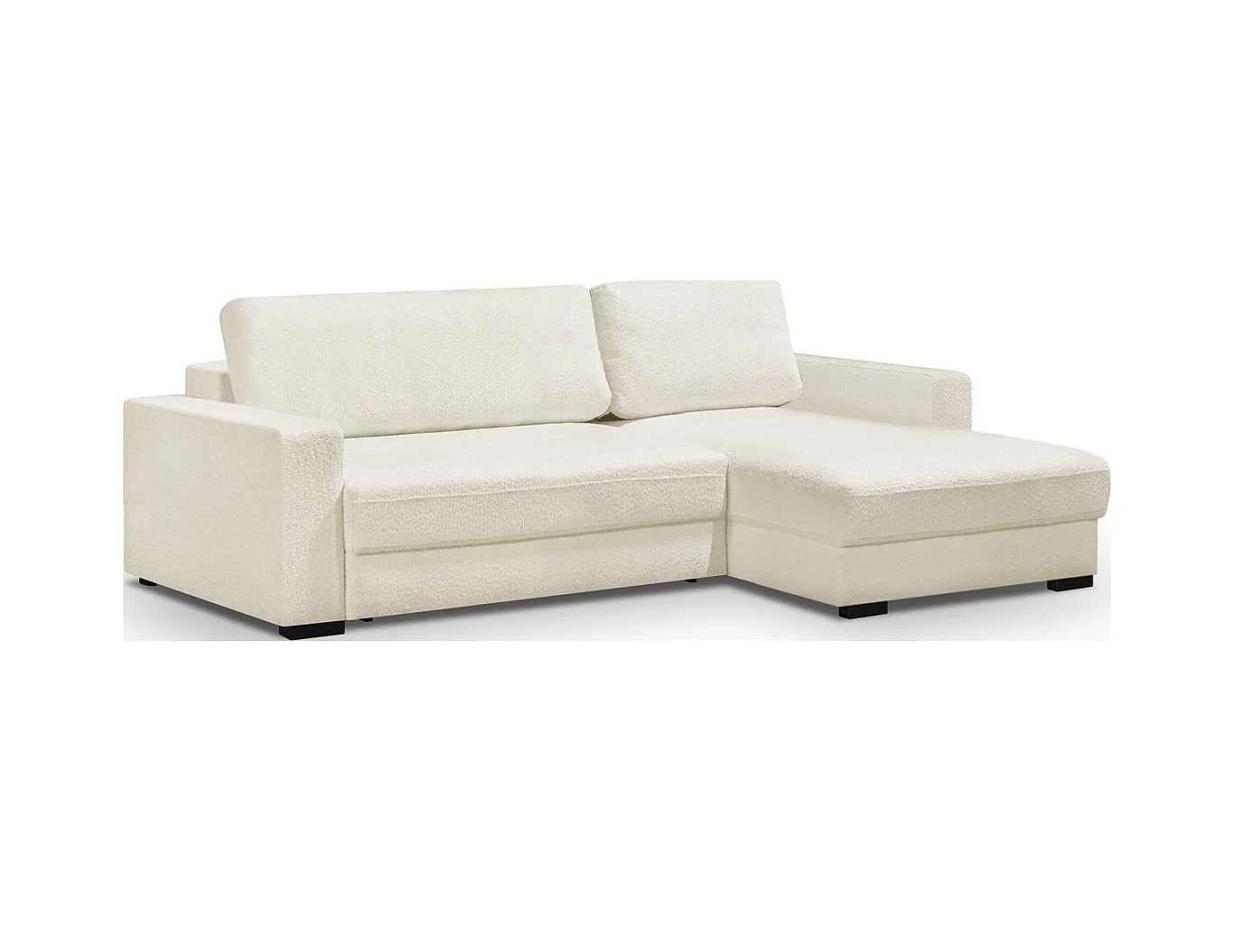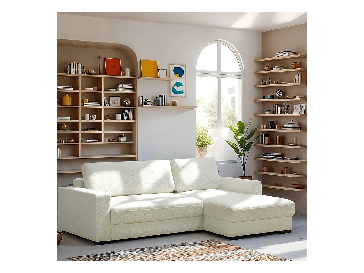 Canapé d'angle à droite convertible 3 places avec coffre en tissu bouclé écru - Arty