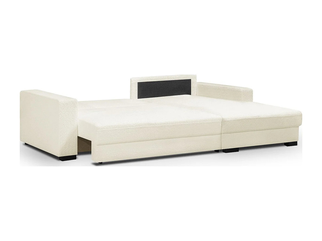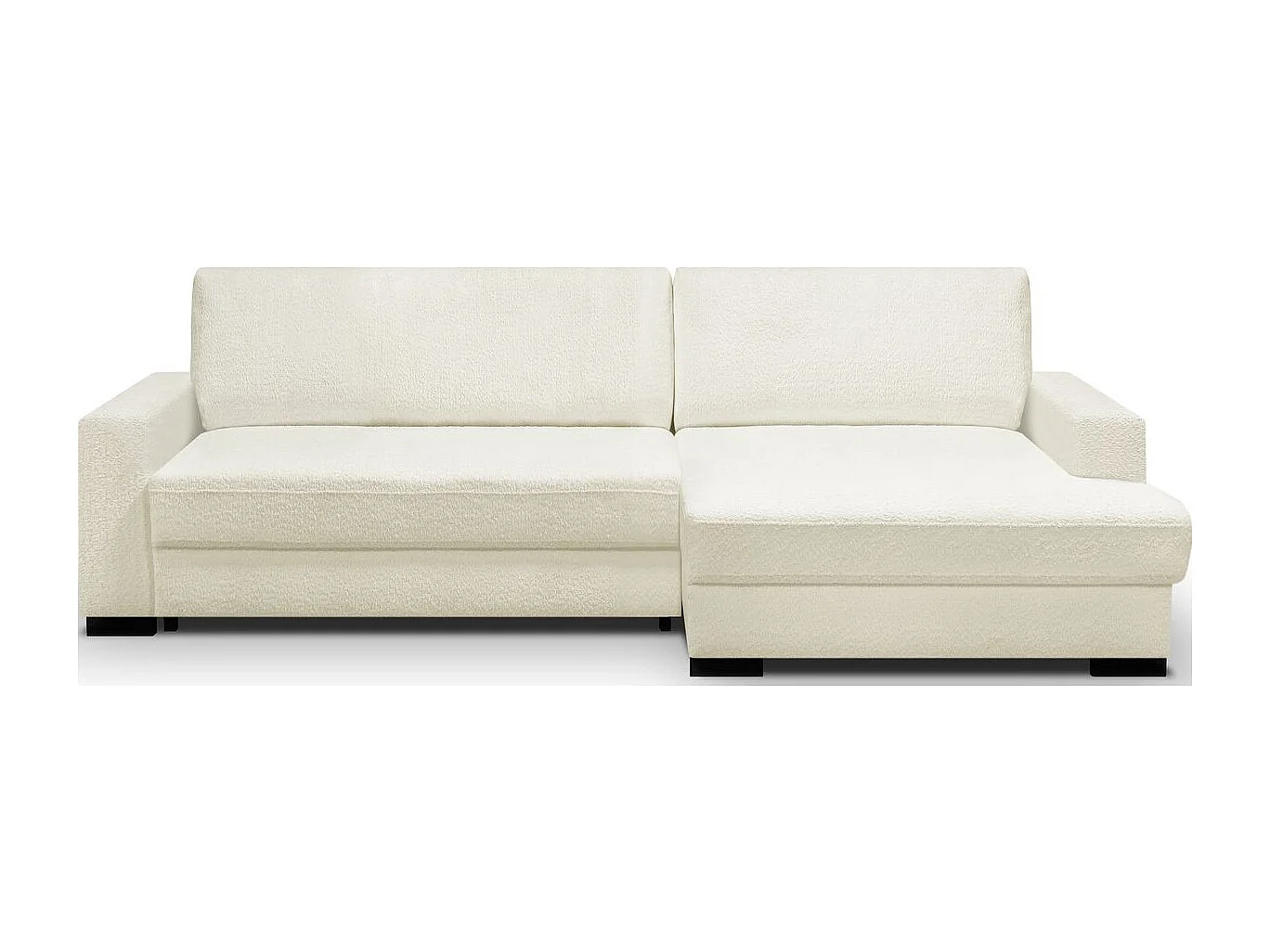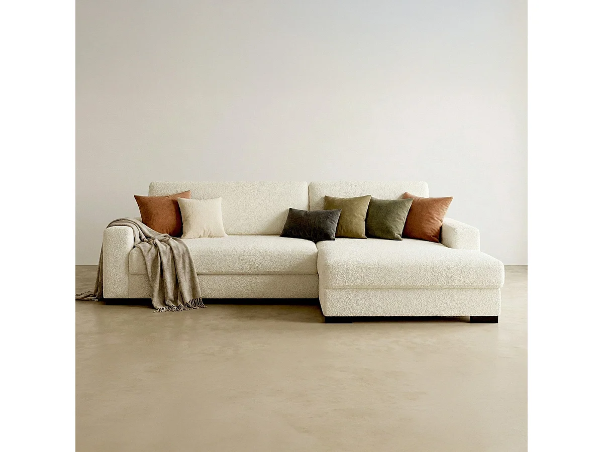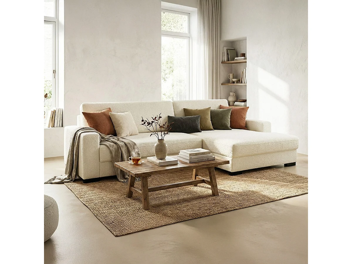 Canapé d'angle à droite convertible 3 places avec coffre en tissu bouclé écru - Arty