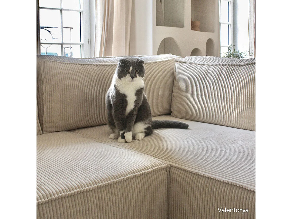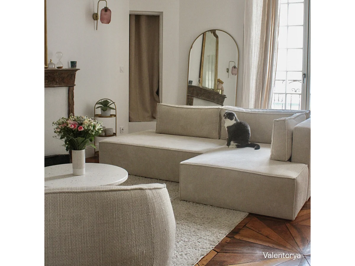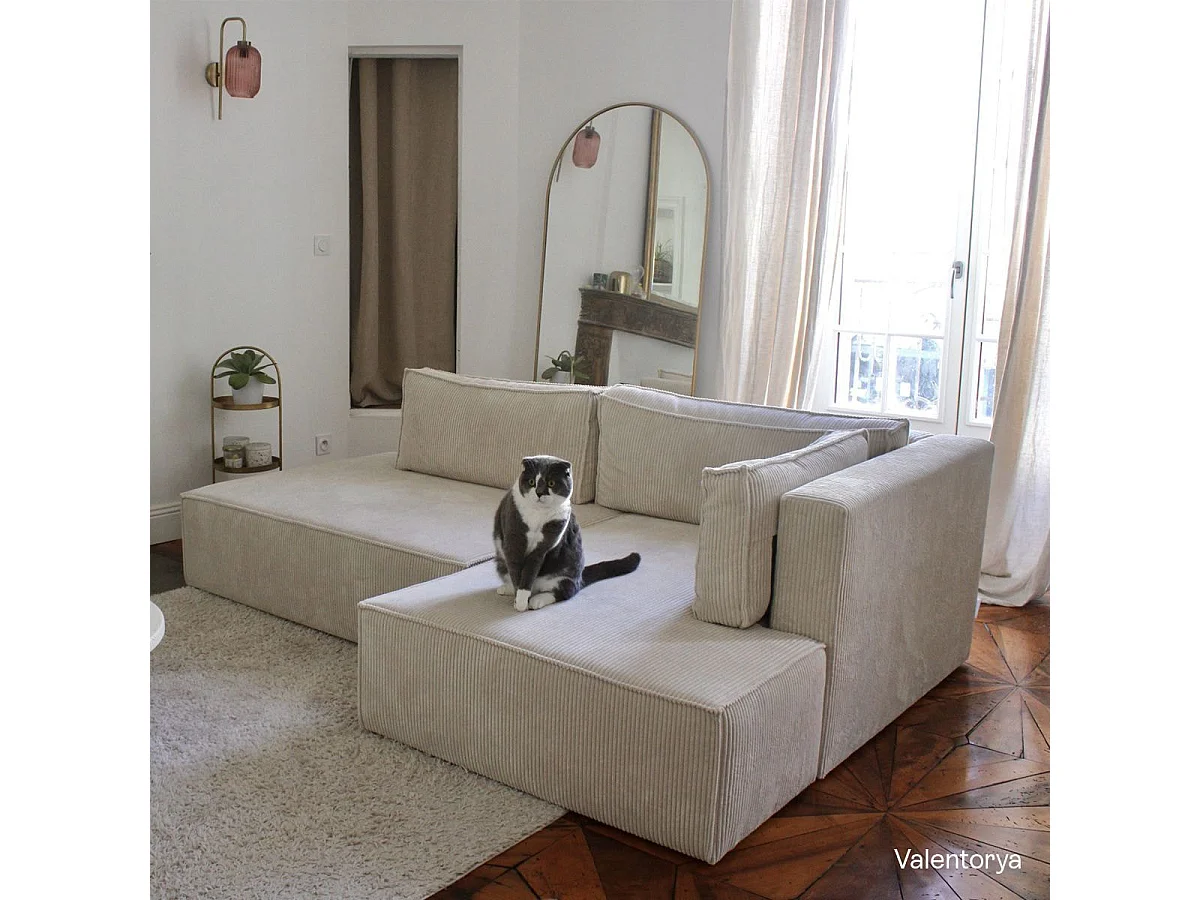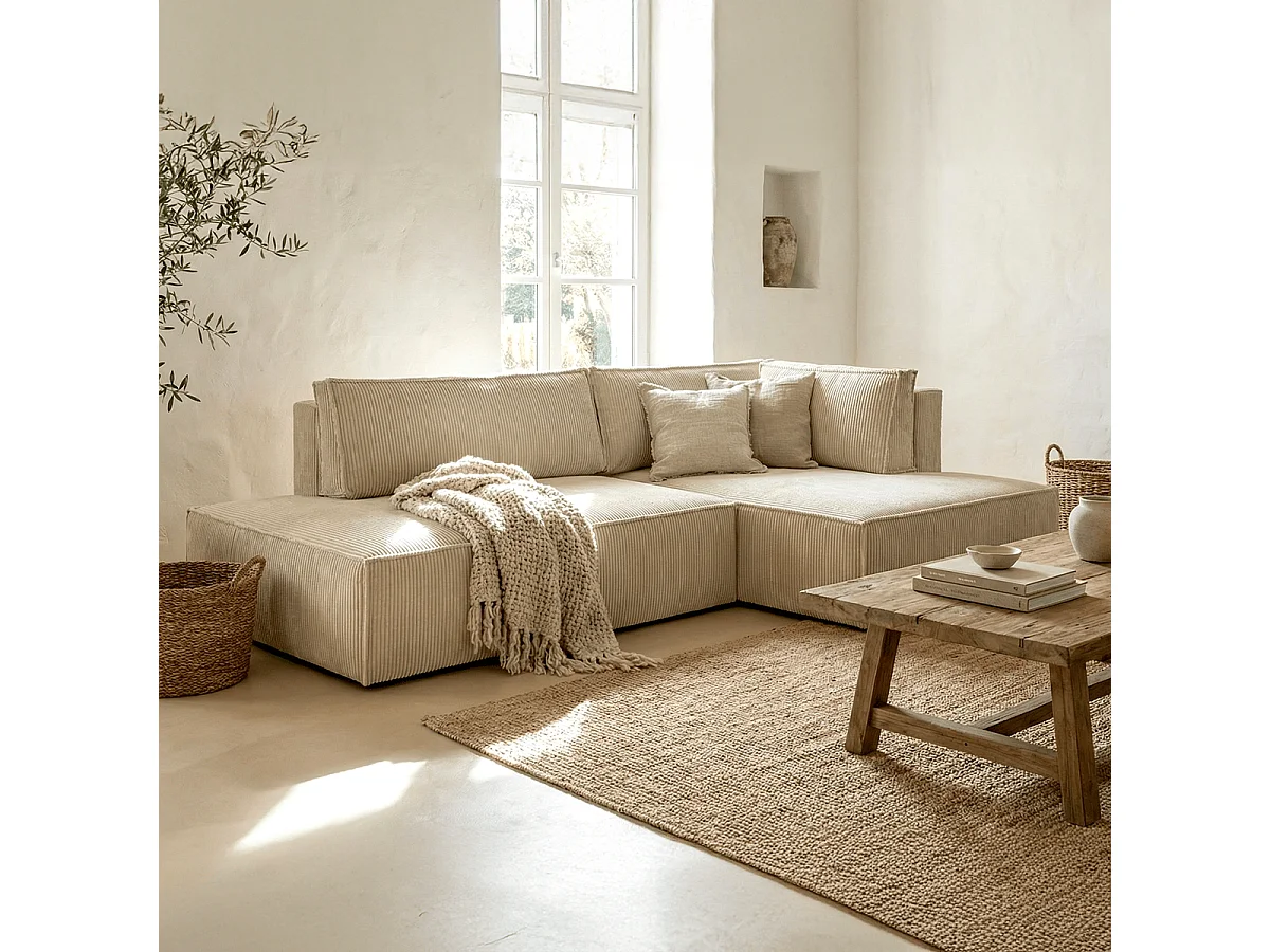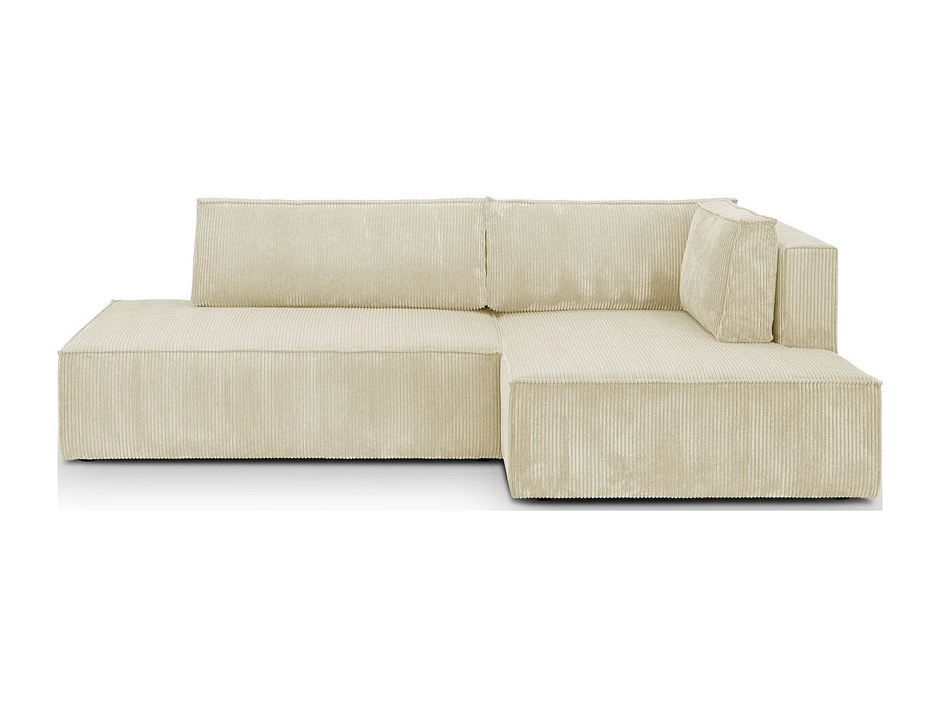 Canapé d'angle à droite convertible 3 places avec coffre en velours côtelé beige - Barani