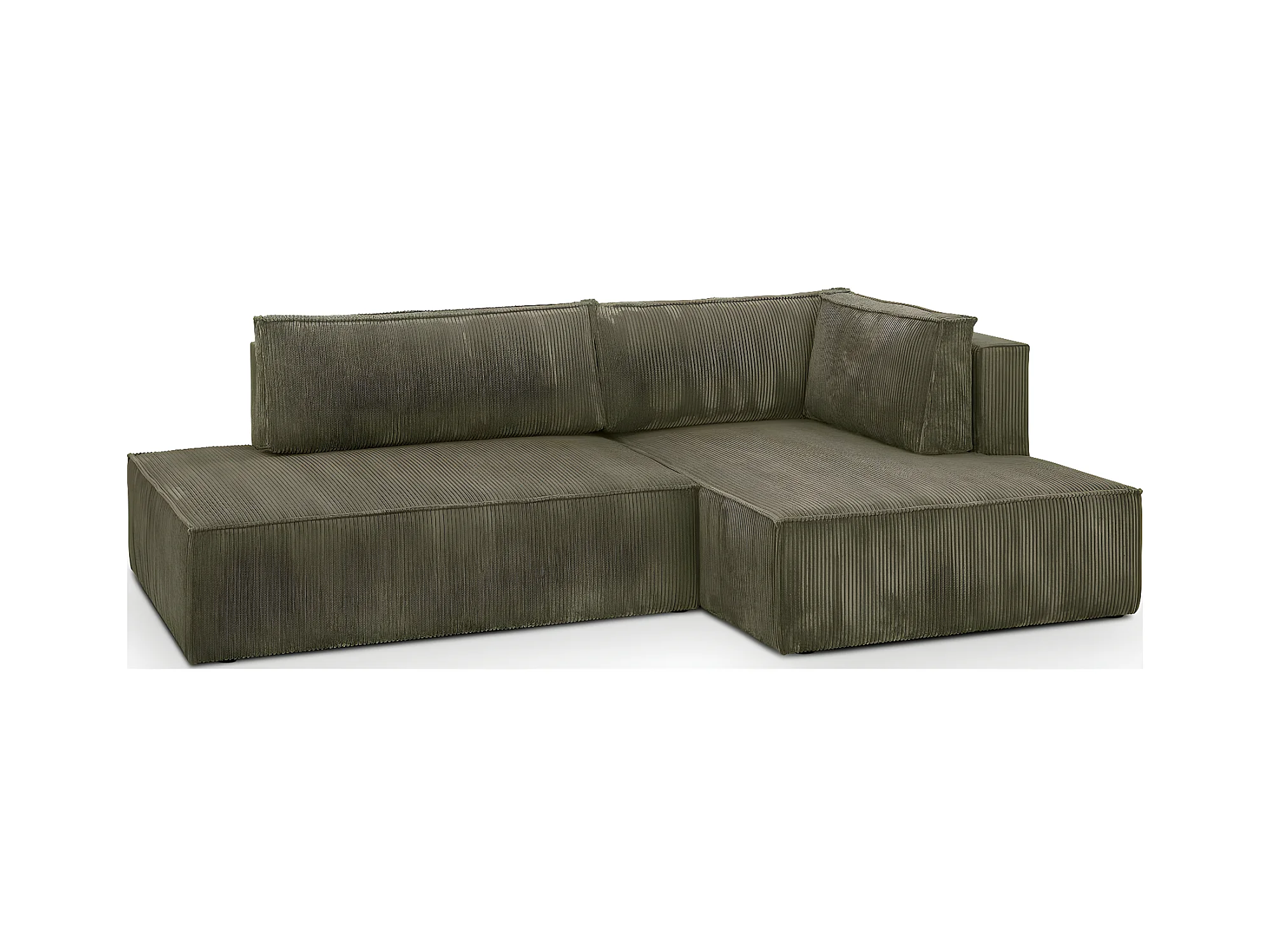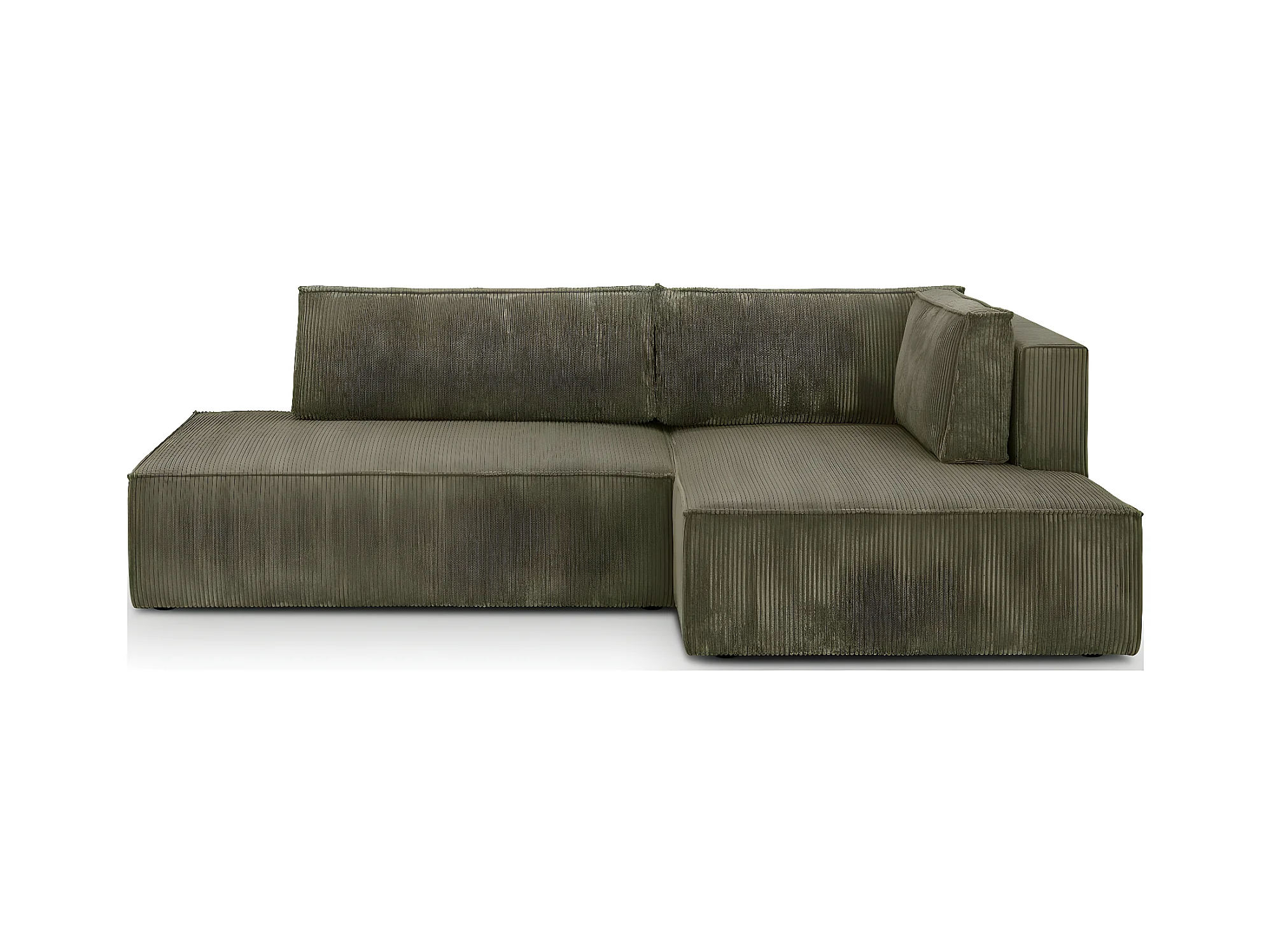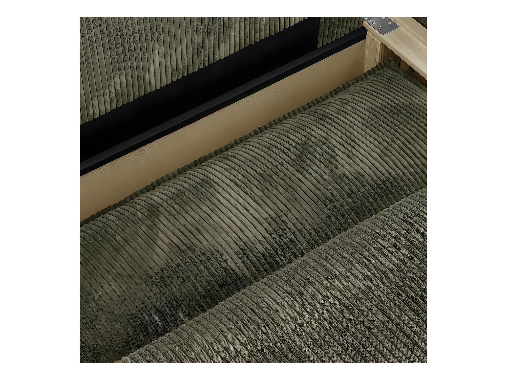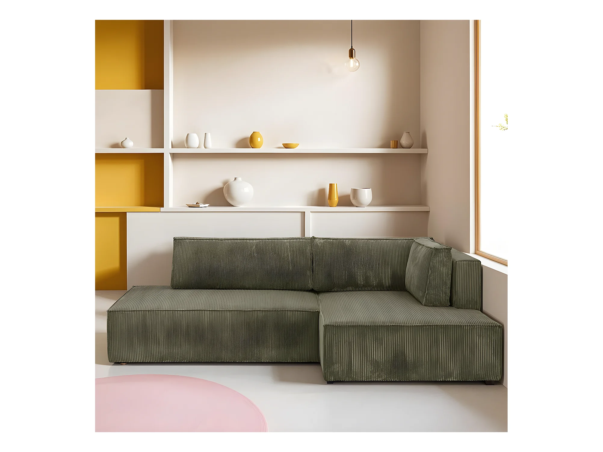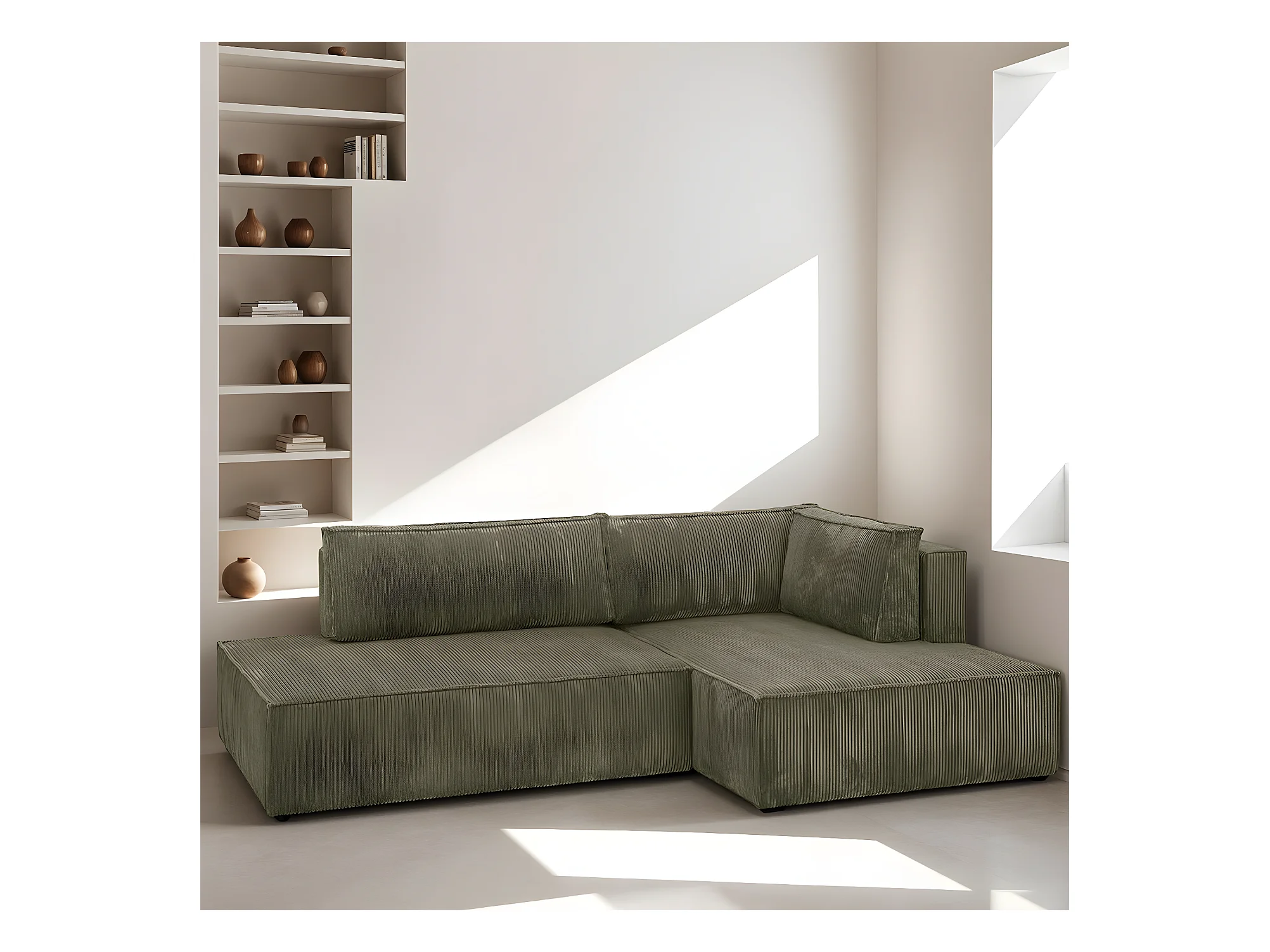 Canapé d'angle à droite convertible 3 places avec coffre en velours côtelé vert kaki - Barani