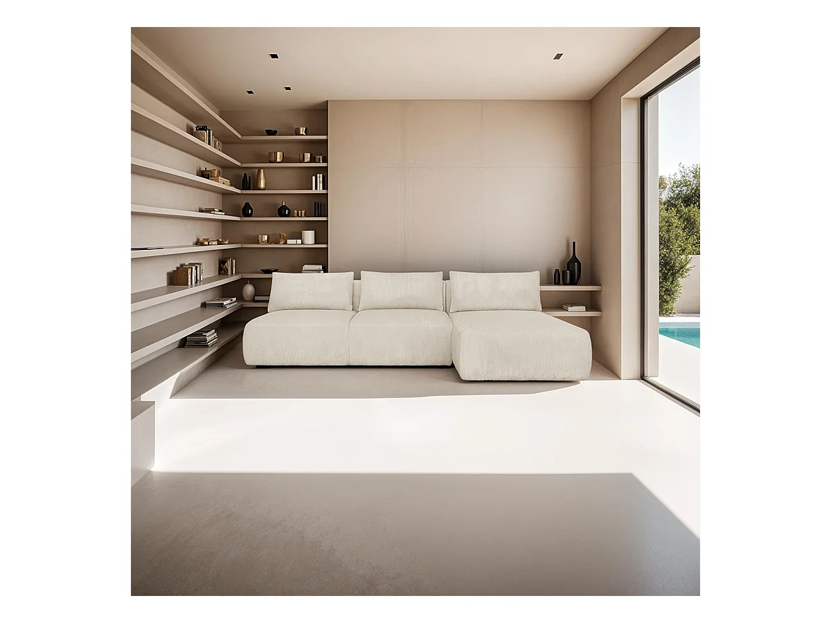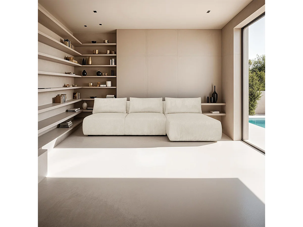 Canapé d'angle à droite convertible 4 places avec coffre de rangement en velours côtelé beige - Jasper