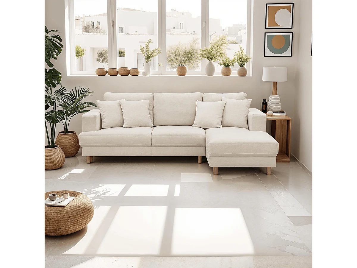 Canapé d'angle à droite convertible 4 places en tissu chenille beige - Marceau