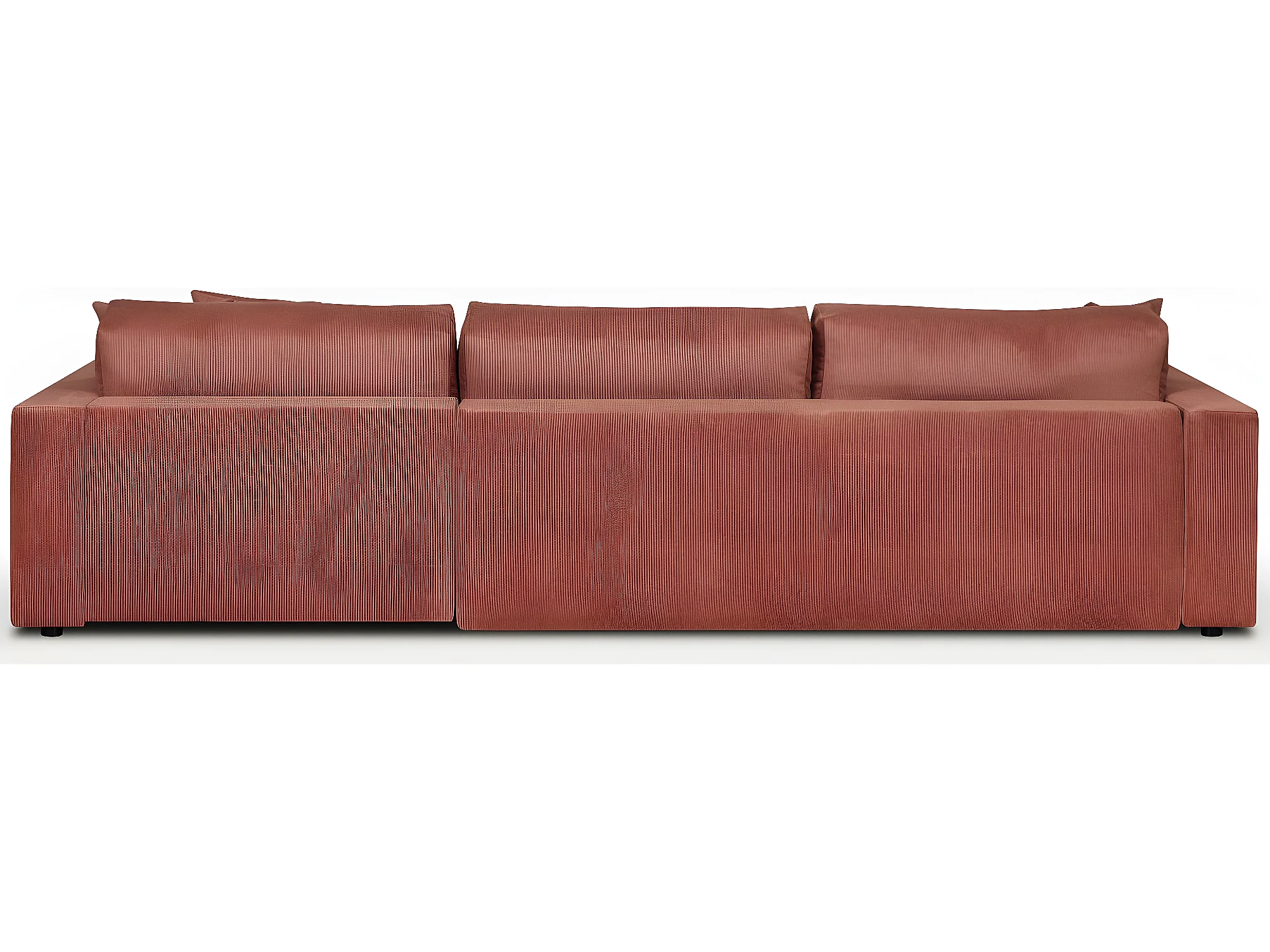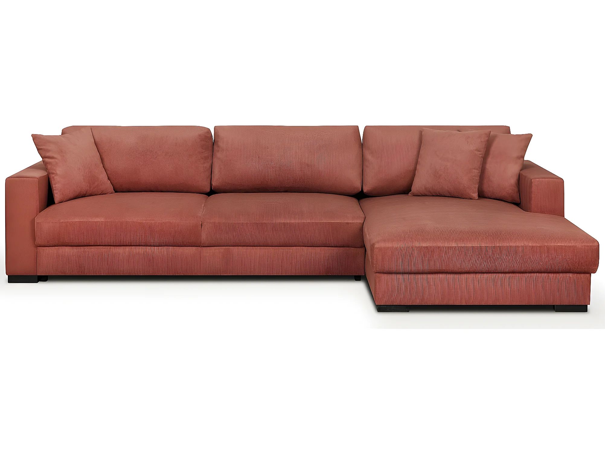 Canapé d'angle à droite convertible 5 places en velours côtelé terracotta avec coffre de rangement - Robin