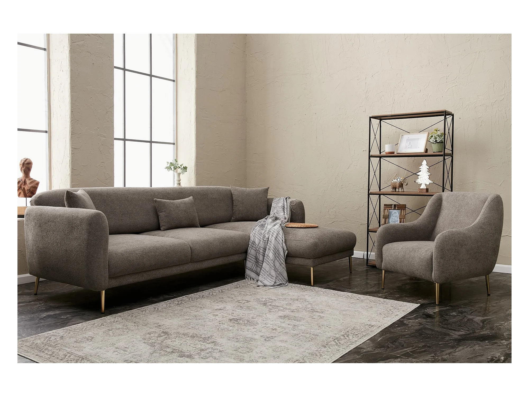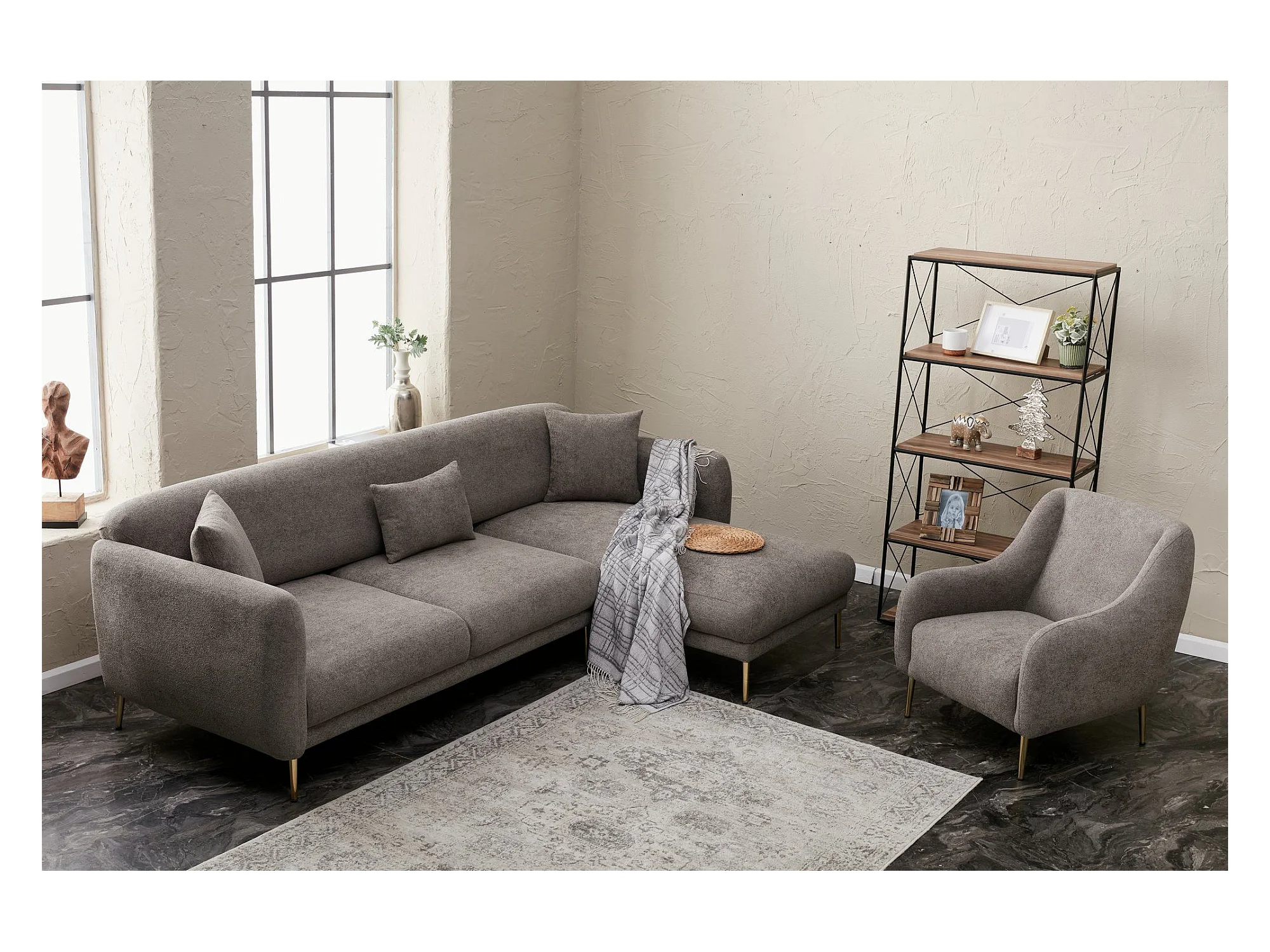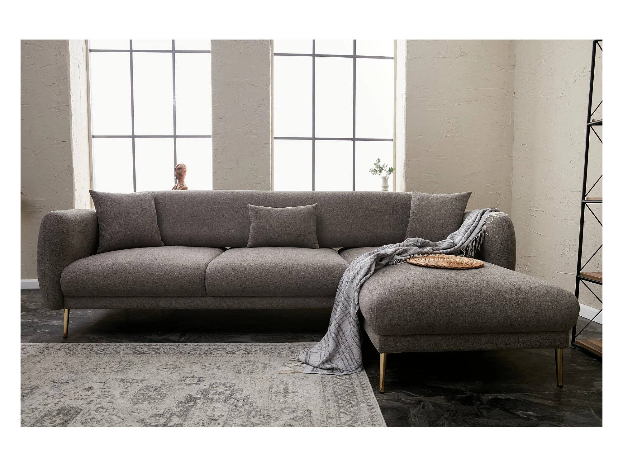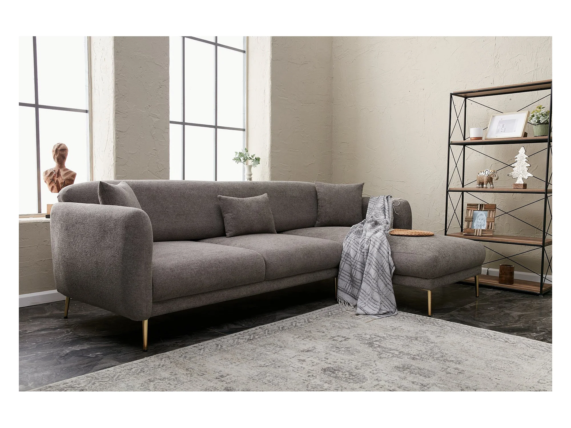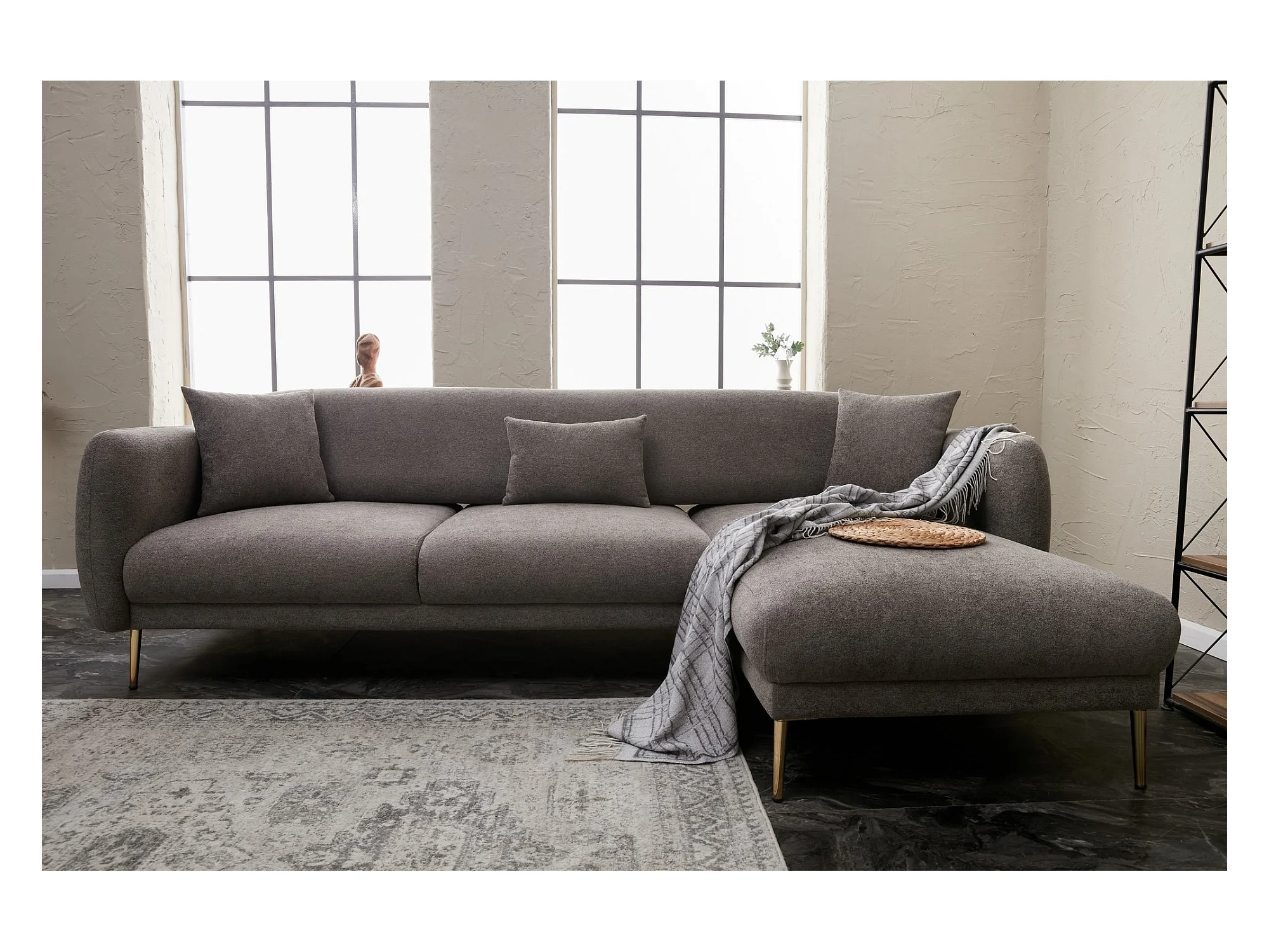 Canapé d'angle à droite convertible pied doré Juanita Tissu Gris