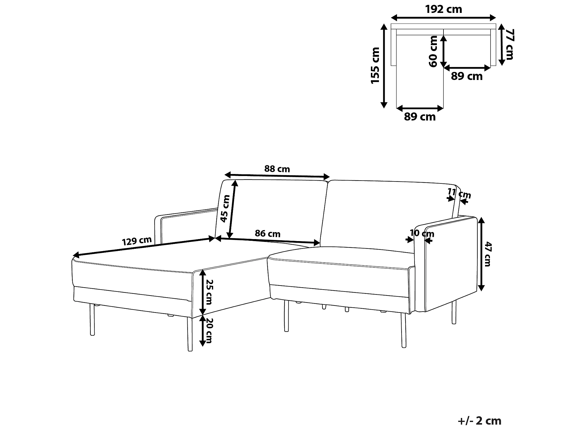 Canapé d\'Angle Moderne Côté Droit Canapé 2 Places avec Pieds en Métal Dossier Rembourré en Tissu Rose Breda