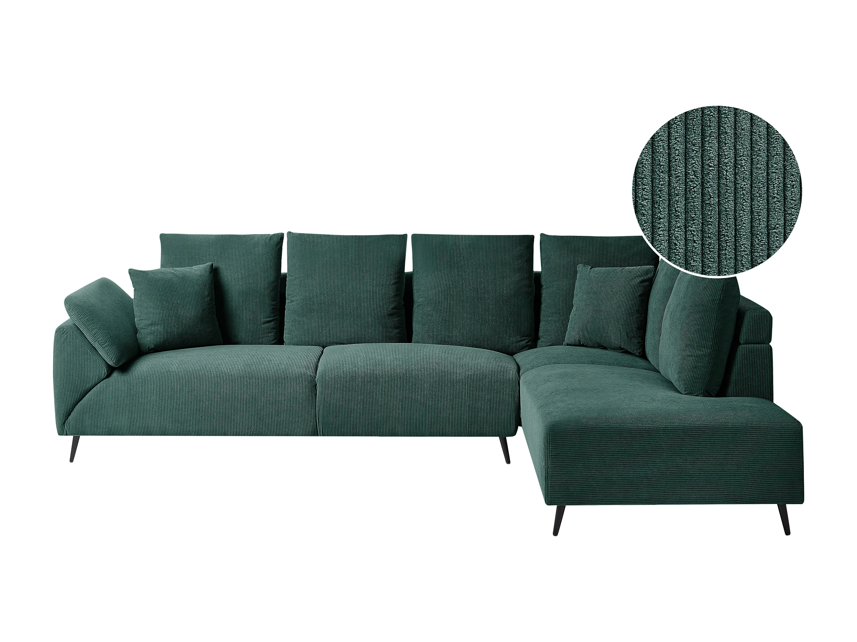 Canapé d'Angle à Gauche Moderne en Velours Côtelé Pieds en Métal Vert Lunner