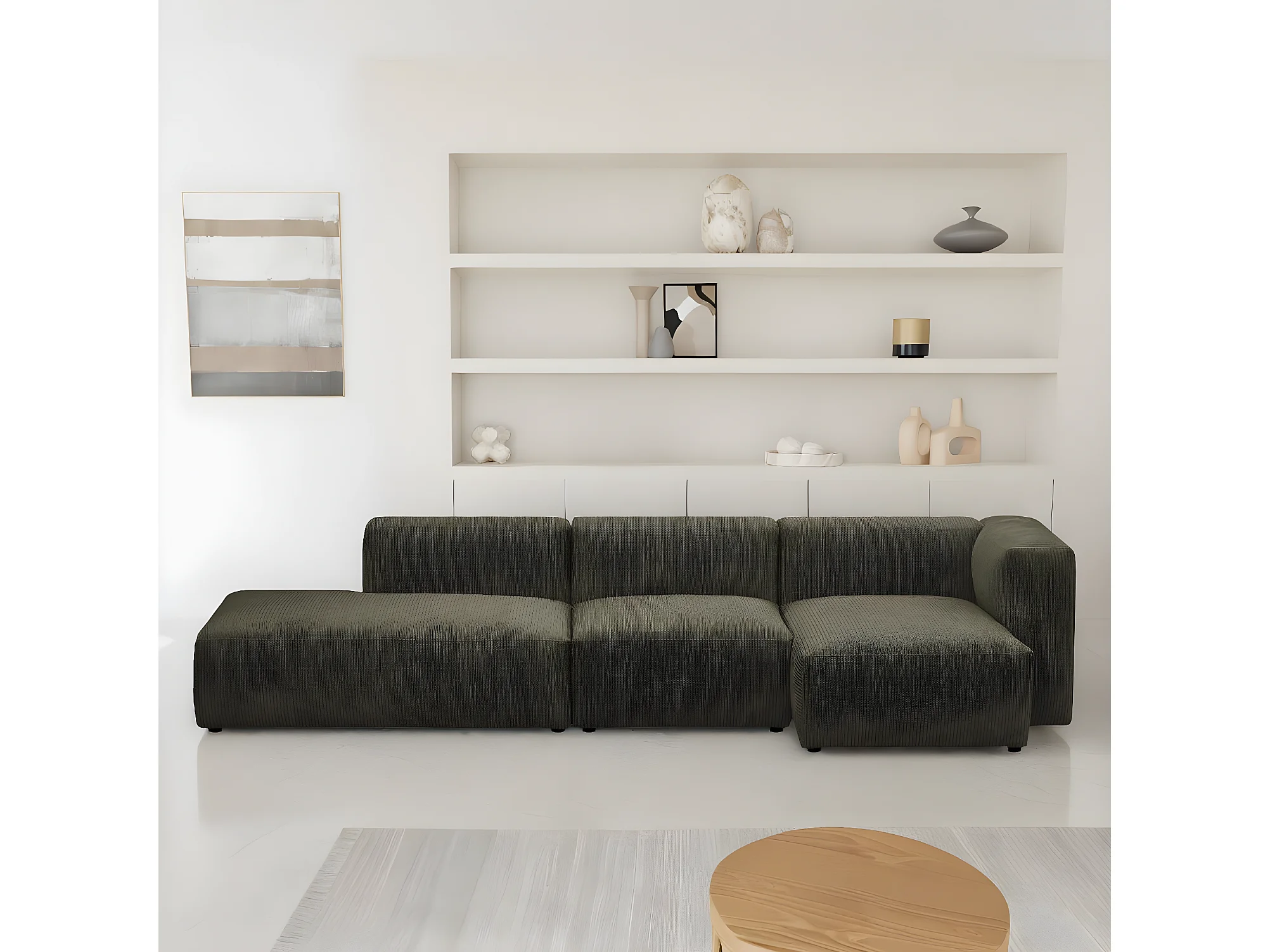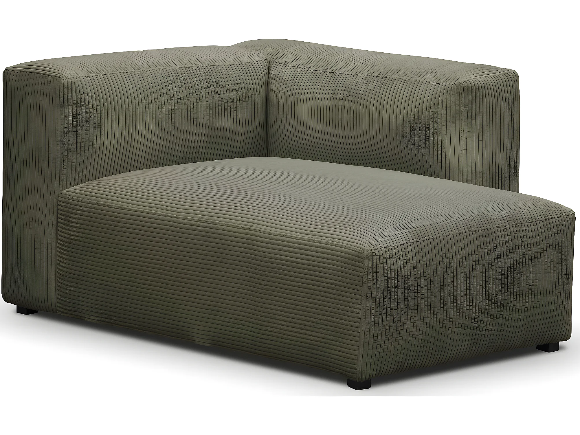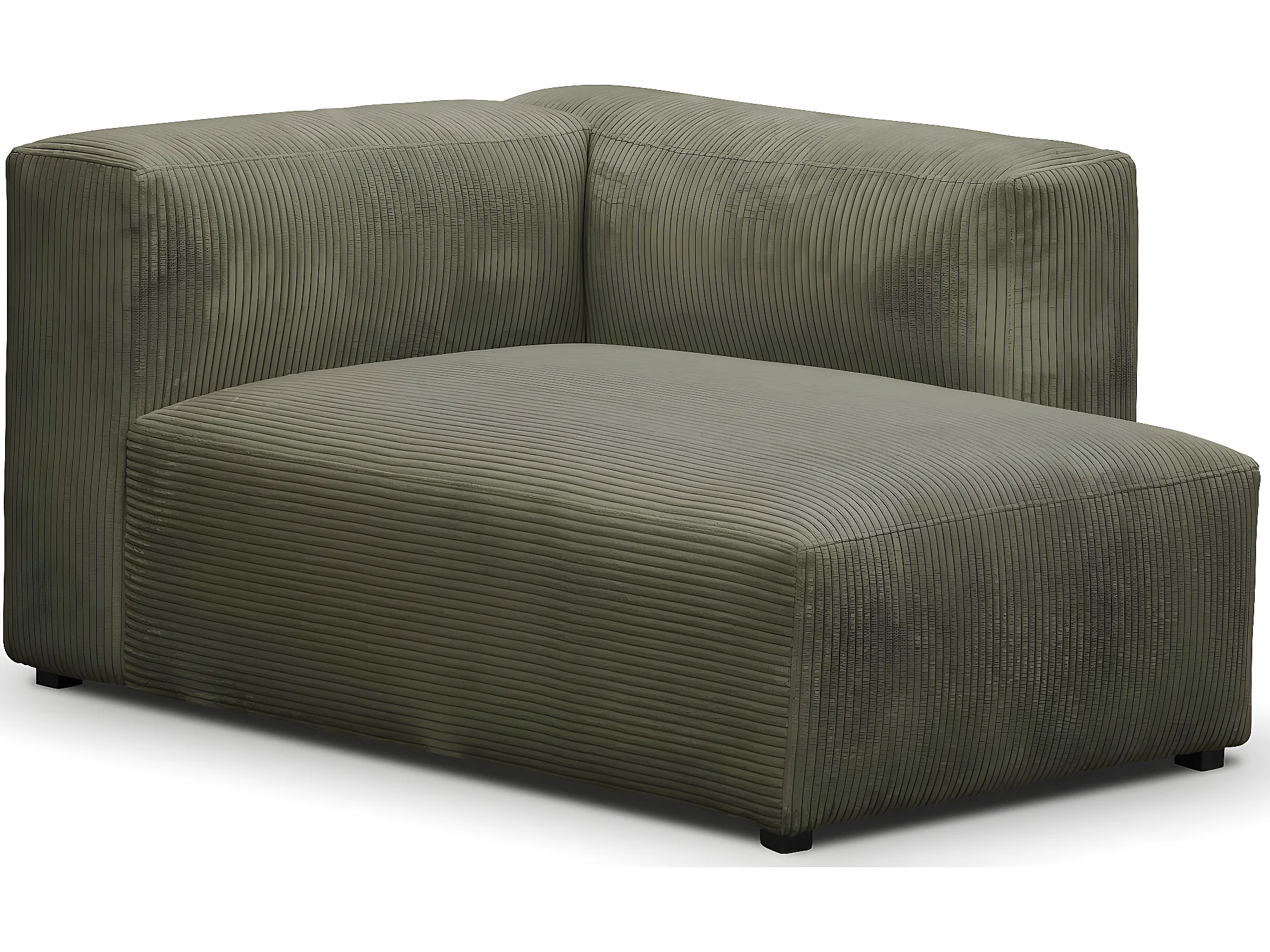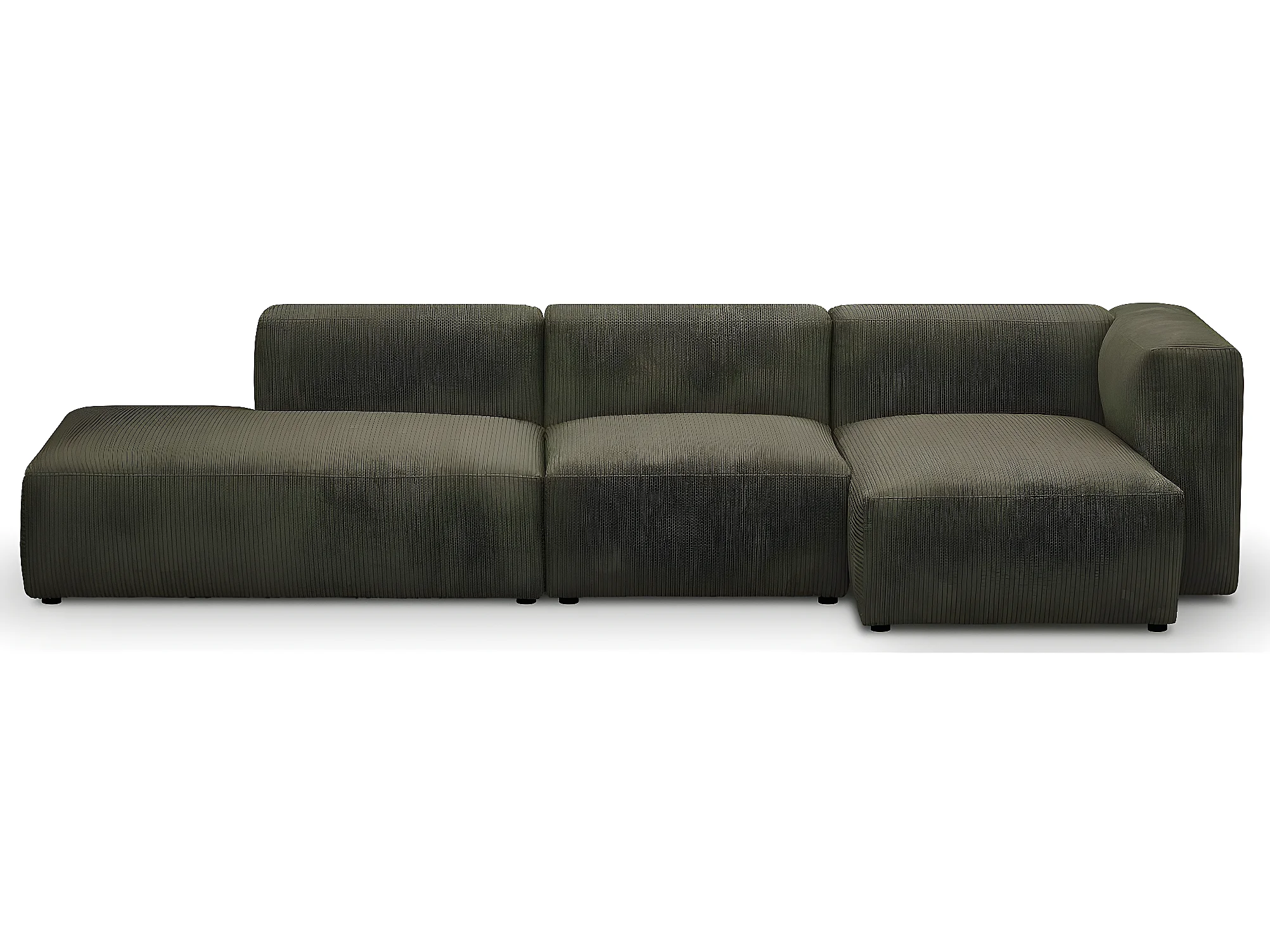 Canapé d'angle à droite modulable avec méridienne 5 places en velours côtelé vert kaki - Modulo