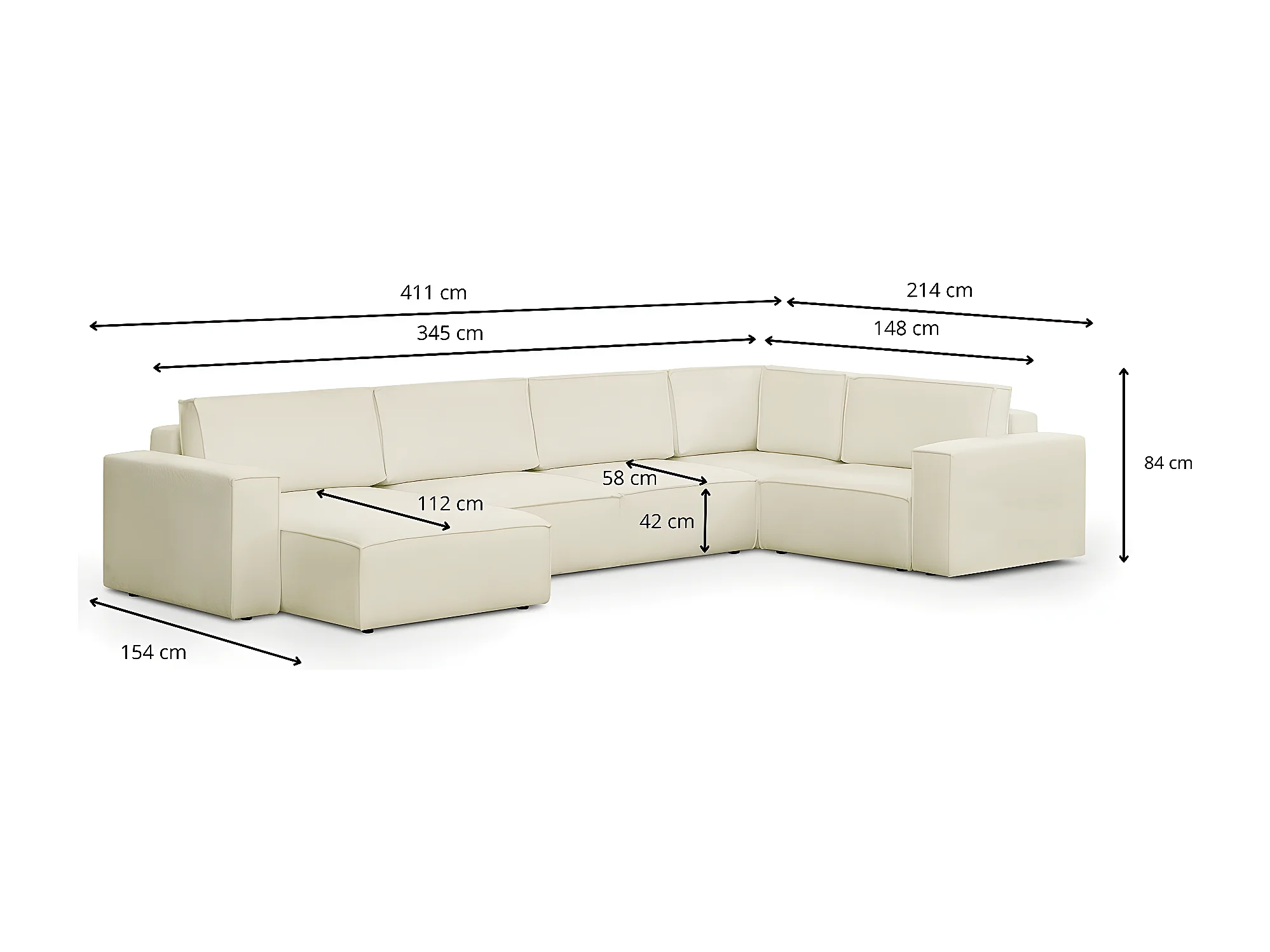 Canapé d'angle à droite panoramique convertible modulable 8 places en tissu bouclé écru - Harper Mod