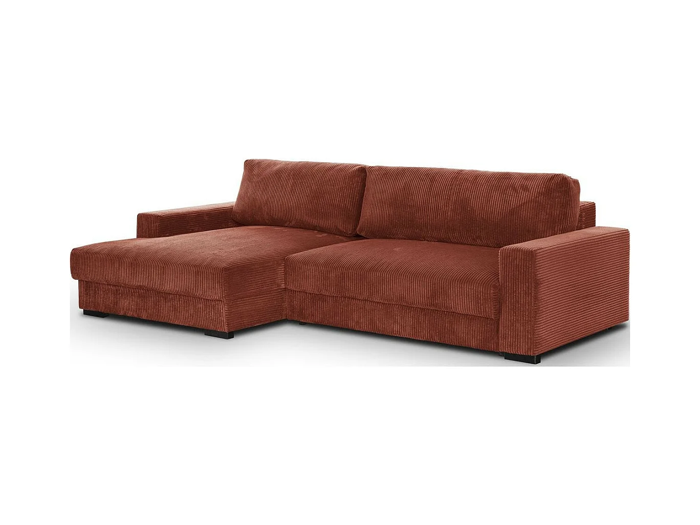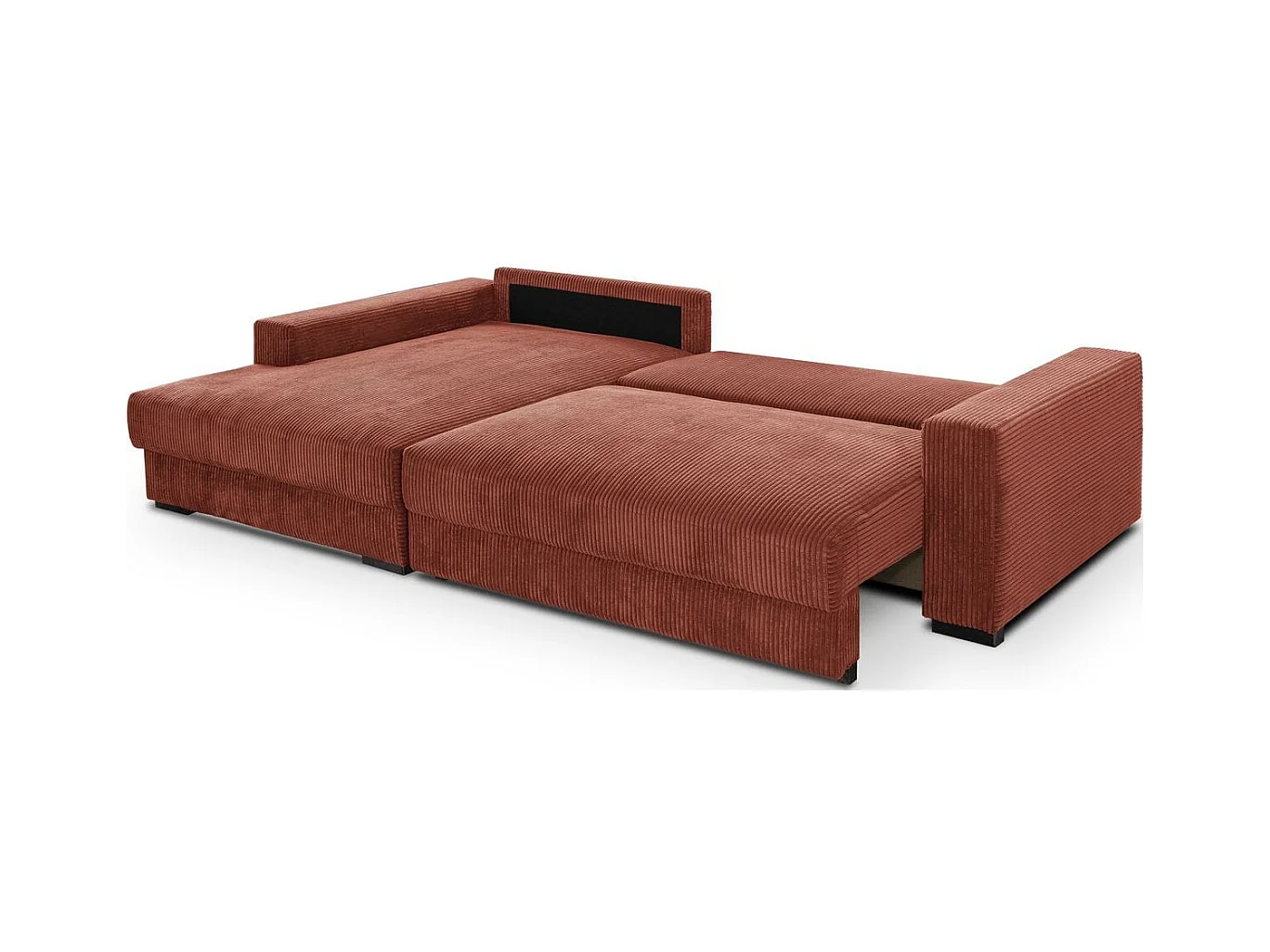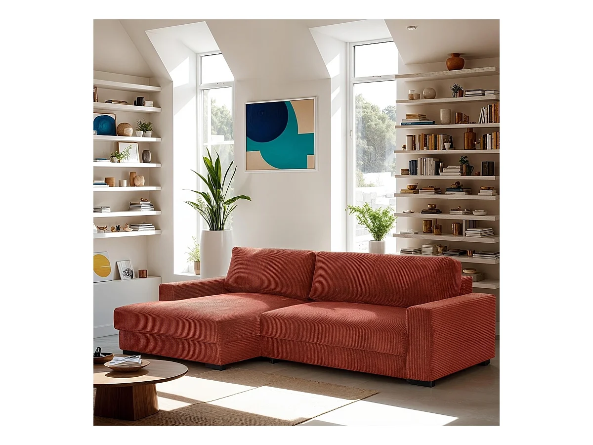 Canapé d'angle à gauche convertible 3 places avec coffre en velours côtelé rouille - Arty