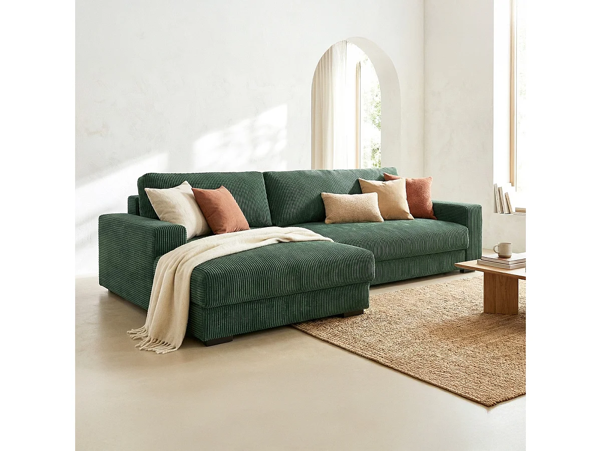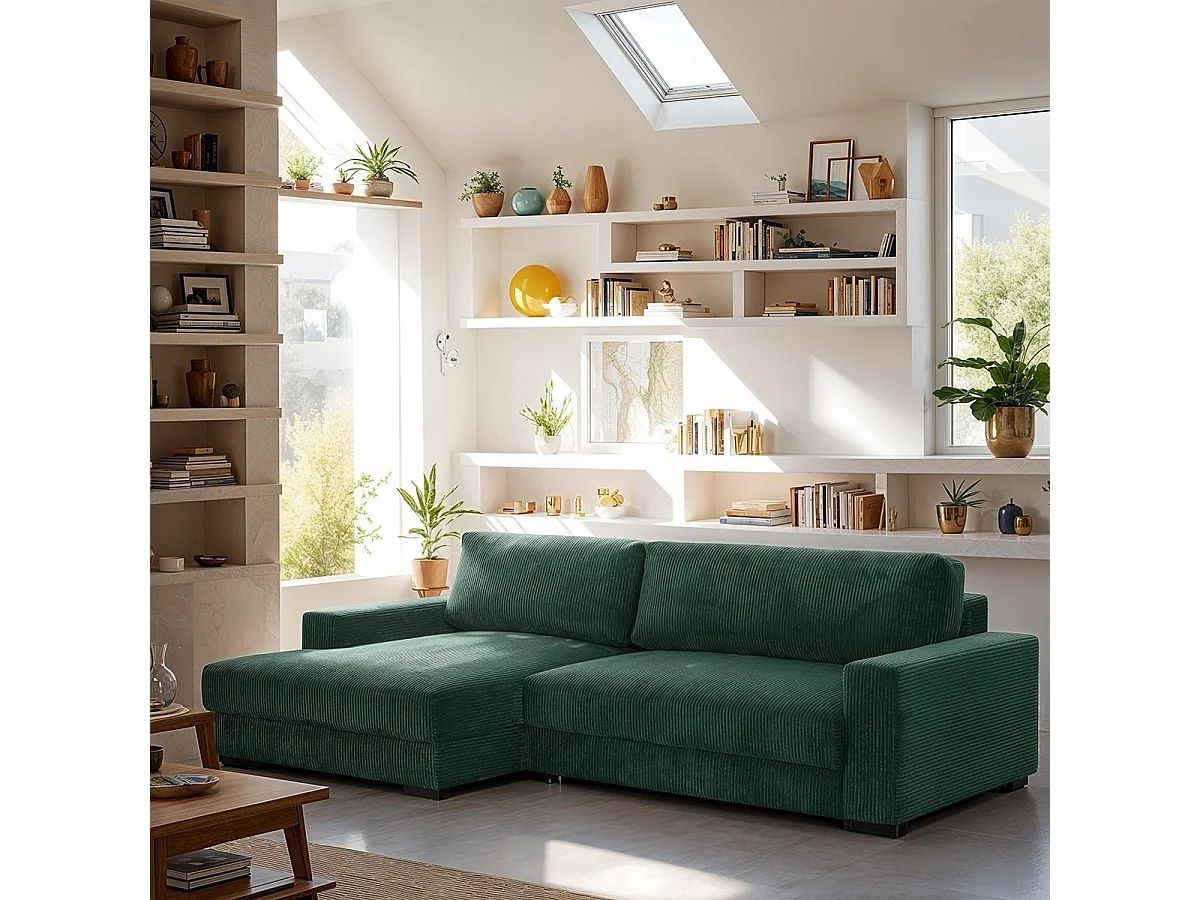 Canapé d'angle à gauche convertible 3 places avec coffre en velours côtelé vert foncé - Arty