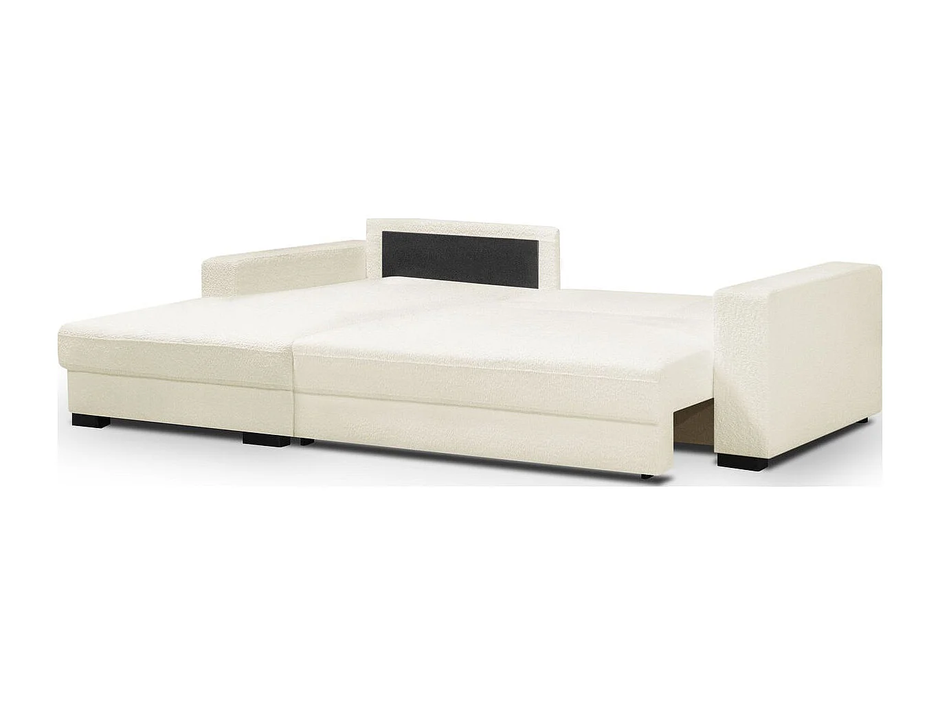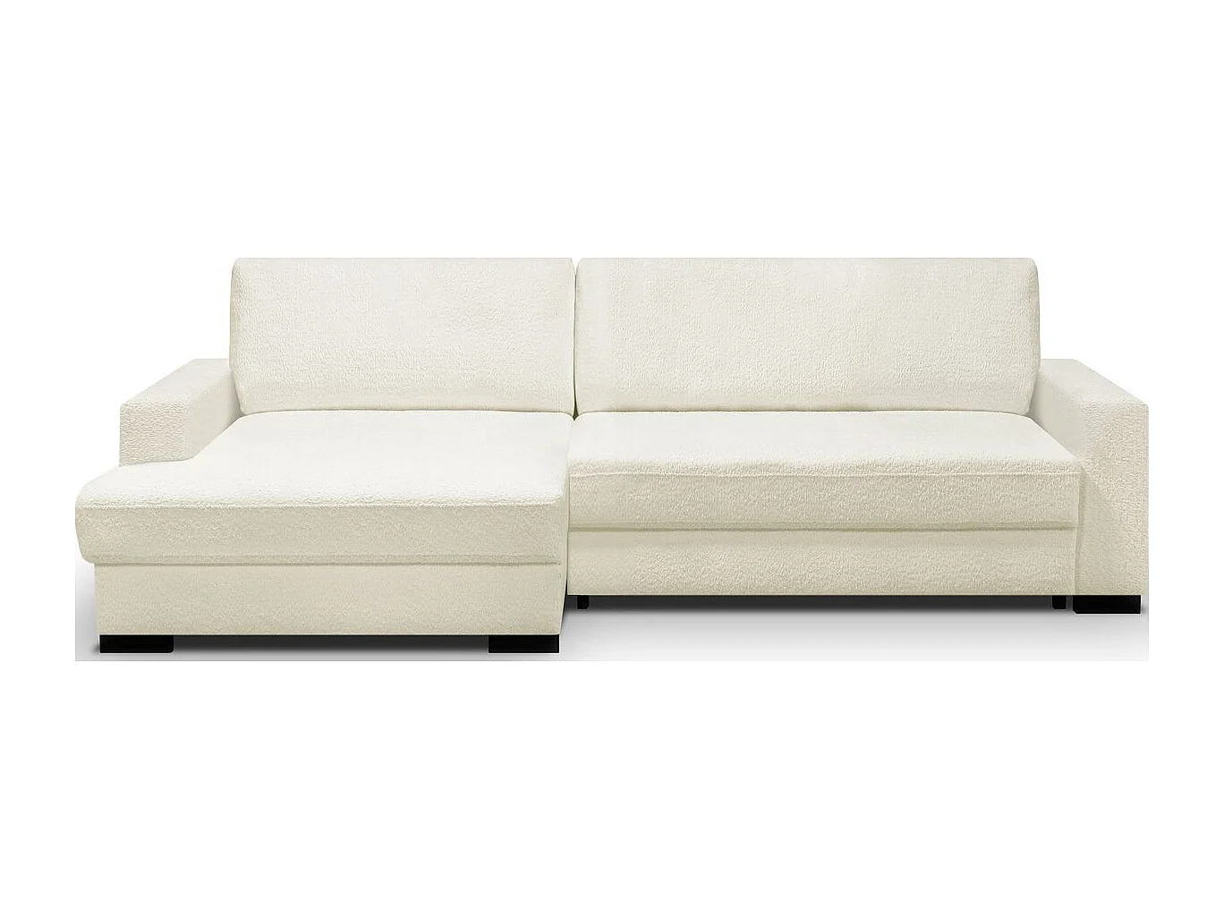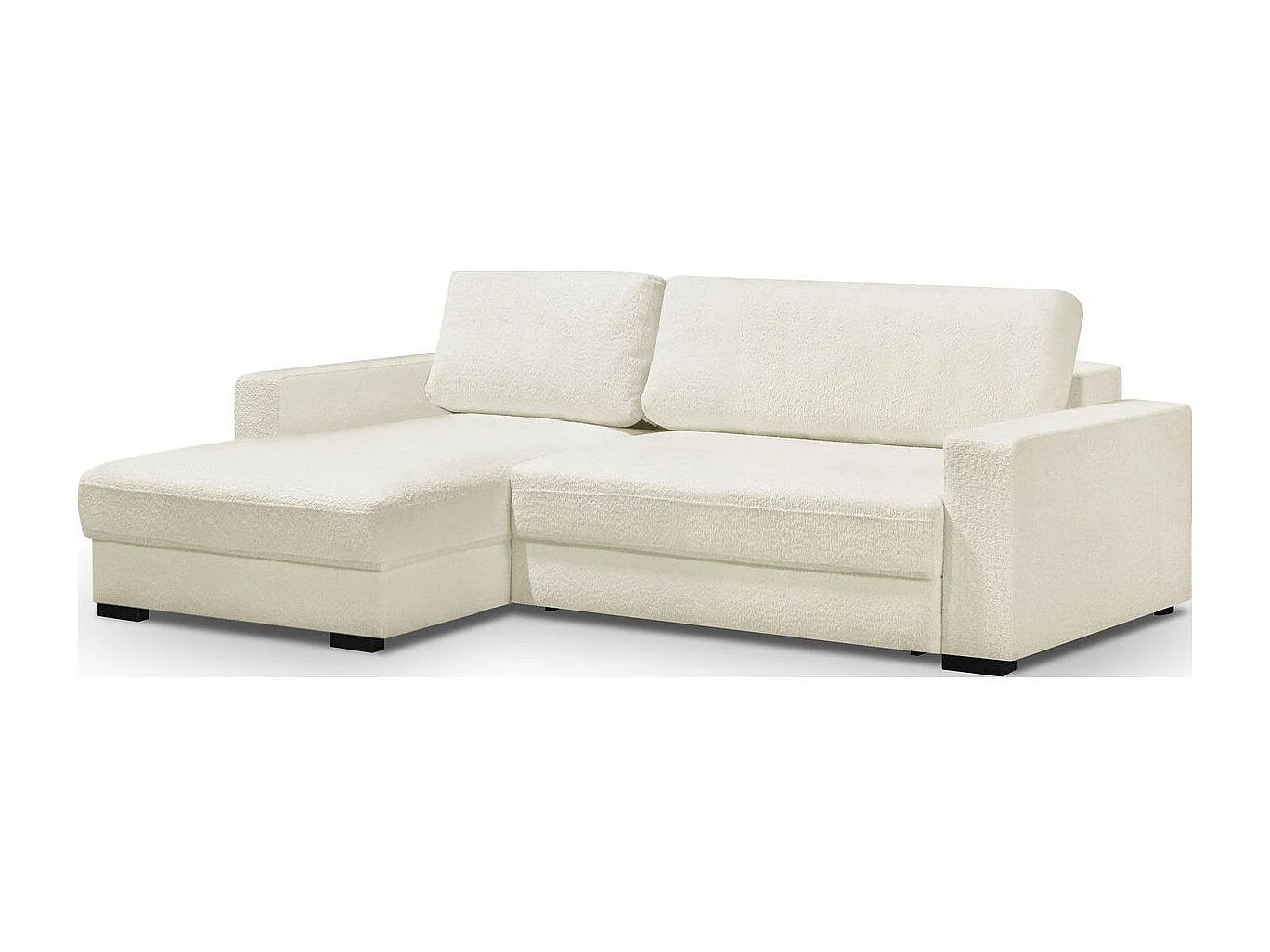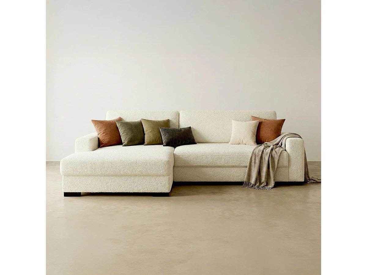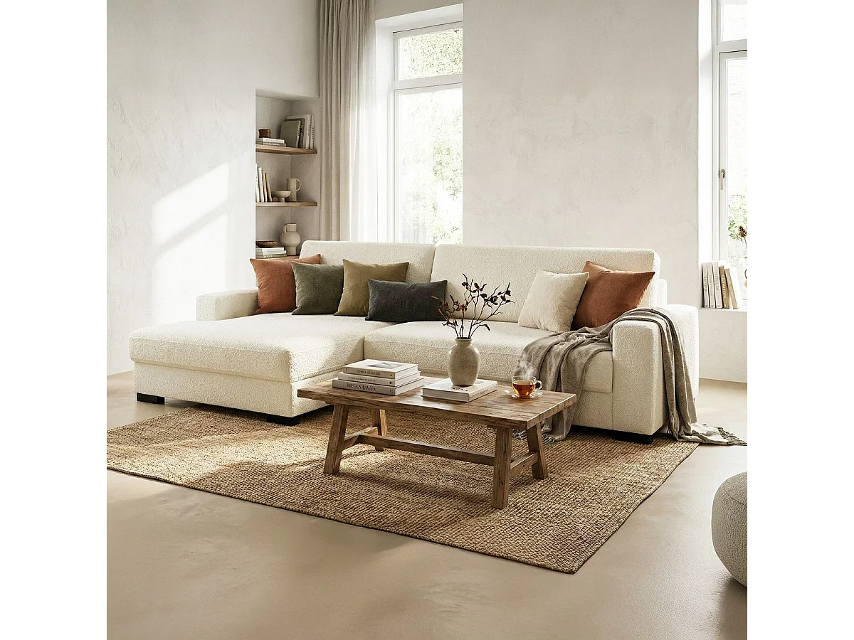 Canapé d'angle à gauche convertible 3 places avec coffre en tissu bouclé écru - Arty