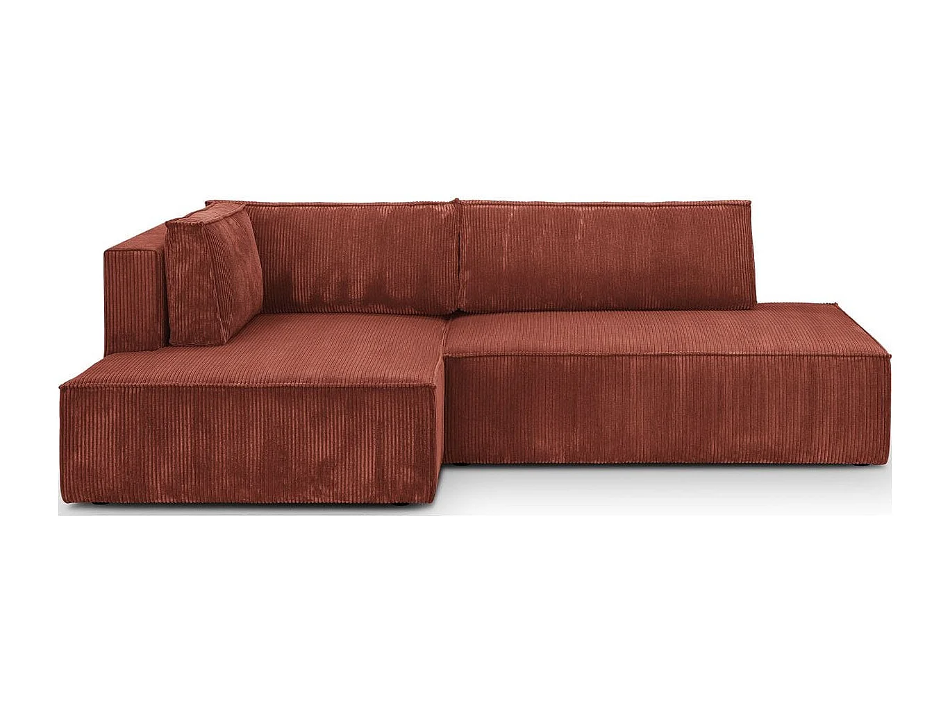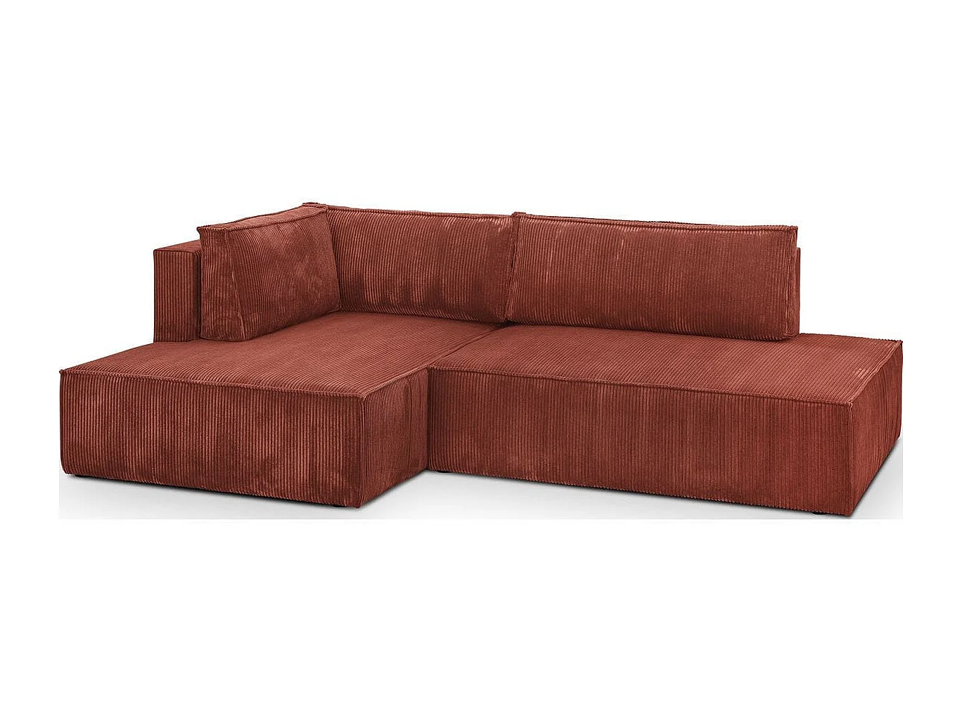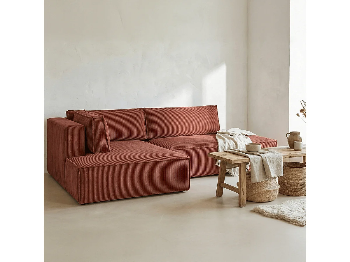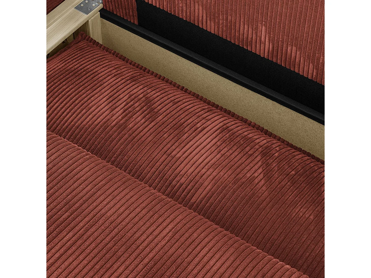 Canapé d'angle à gauche convertible 3 places avec coffre en velours côtelé rouille - Barani