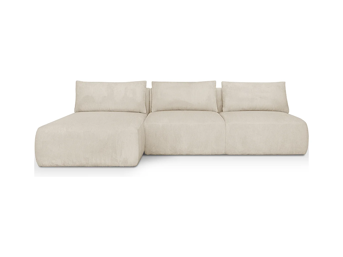 Canapé d'angle à gauche convertible 4 places avec coffre de rangement en velours côtelé beige - Jasper
