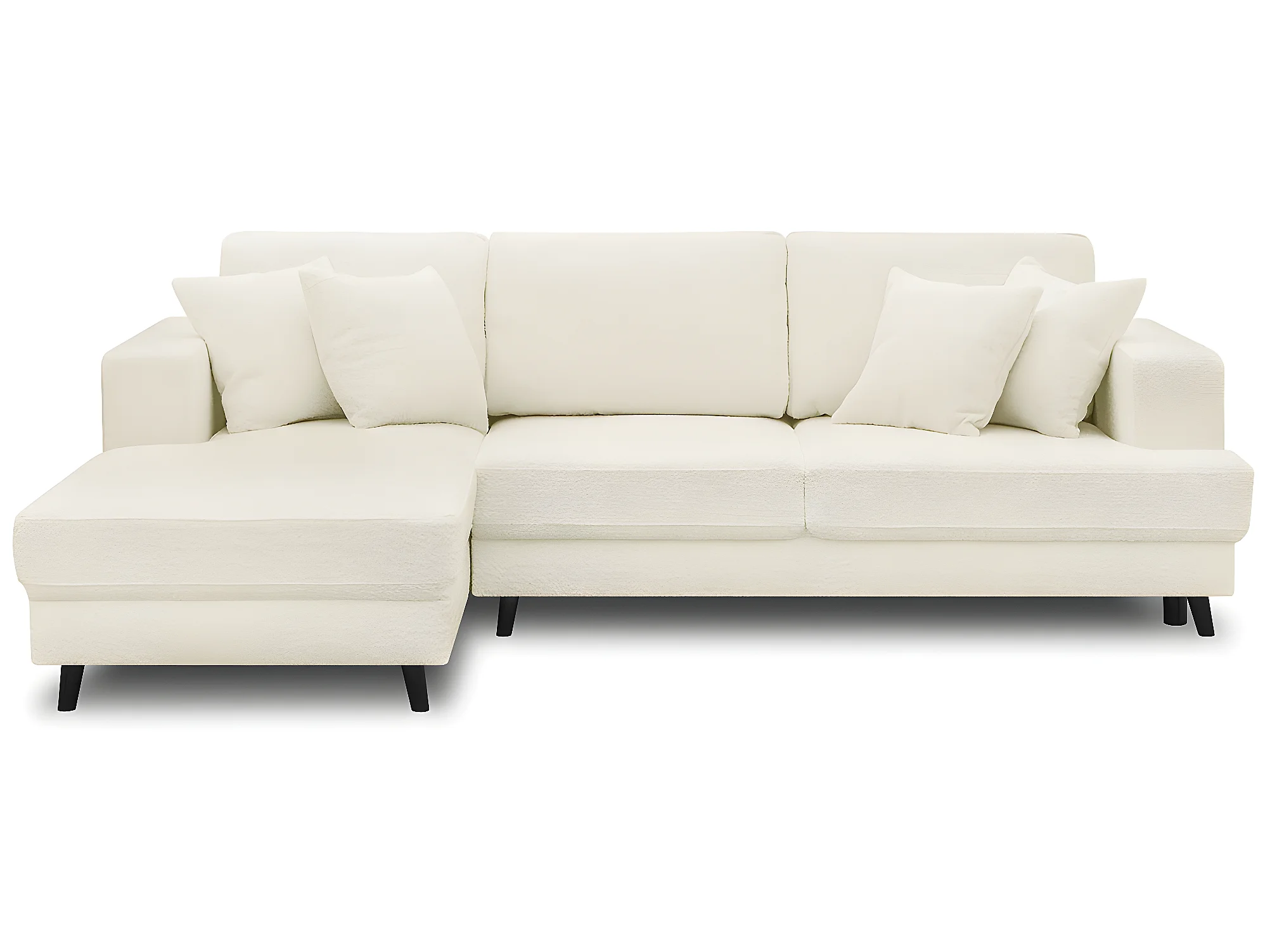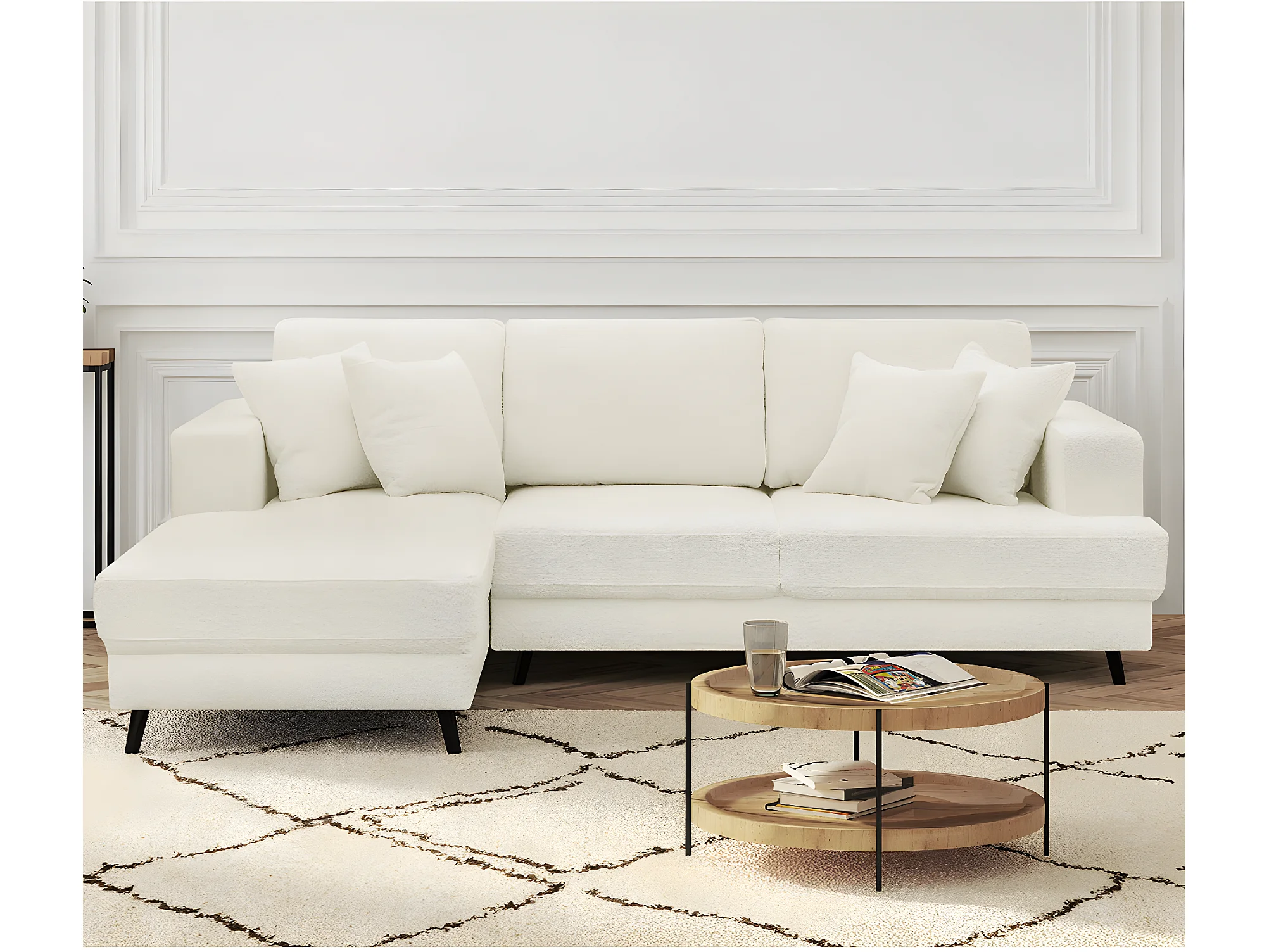 Canapé d'angle à gauche convertible 4 places en tissu bouclette écru - Marceau